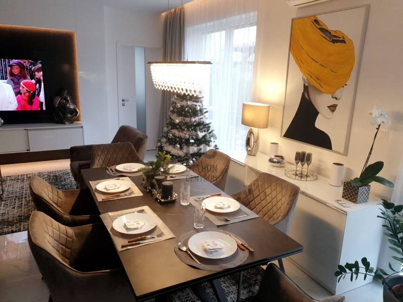 ÁLOMHÁZ A MODERN KOR SZERELMESEINEK!Stílus, elegancia, prémium minőség mindenhol!Álmaik házát keresik? EZ AZ! Megtalálták! Csak Önök és a személyes tárgyaik hiányoznak ebből az impozáns Otthonból!Debrecen- Pallag Barackvirág Lakóparkjában kínáljuk megvételre akár teljes bútorzattal, (melyek prémium kategóriás olasz, német, belga bútorok) ezt a 948m2-es telekre megépült EXKLUZÍV nappali+4 hálószobás, 3 fürdőszobás, duplagarázsos, nagy teraszos önálló családi házat.Az épület porotherm 30-as téglából épült melynek az oldalfalán 15 cm ,a beton födémen 25 cm hőszigetelés van, a 3 rétegű nyílászárók motoros alumínium redőnnyel lettek szerelve. Rendkívül tágas amerikai konyhás nappali-étkező, prémium kategóriás beépített konyhai gépekkel lett felszerelve, ahonnan közvetlen kijárás van a tágas teraszra.Az egyedileg tervezett kertben különleges örökzöld dísznövények kaptak helyet, melyek állandó szépségét az öntöző berendezés biztosítja. Sorolhatnám még az extrákat, pl.- beépített házimozi, 2 személyes infraszauna (wellis), látványkandalló- de inkább jöjjön el, és tapasztalja meg személyesen leendő otthonában a luxust.Amennyiben Ön is hasonló elvárásokat támaszt új otthonával szemben, akkor ezt a házat figyelmébe ajánlom! |