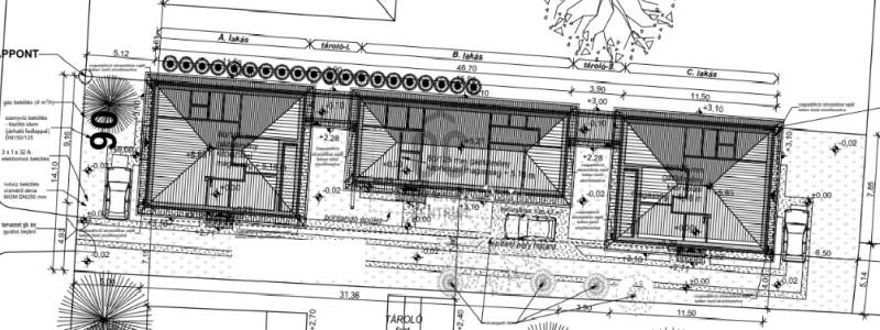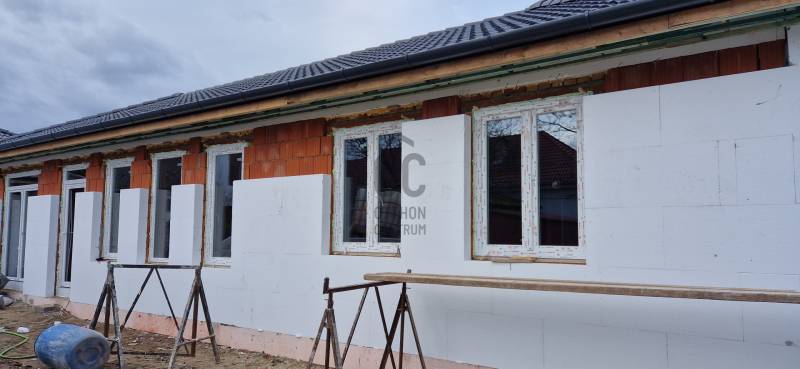 Bocskaikert központjában 2026. II. negyedévi átadással eladó egy nettó 84 m2-es, földszintes, nappali-amerikai konyha - étkező + 3 külön nyíló szobás ház, saját kis kertrésszel, gépkocsibeállóval, az alábbi paraméterekkel:-Nappali-amerikai konyha + 3 külön nyíló szoba-Földszintes kialakítás-Porotherm 30 falazóblokkból + 15 cm hőszigetelés-Gázcirkó fűtés, igény szerint padlófűtés-Betoncserép fedés-Fedett terasz, épített tároló-Saját kertrész, gépkocsibeállási lehetőséggel-Második gépkocsinak van hely az épület előtt-Klíma, 3 rétegű, hőszigetelt műanyag nyílászárók, minimális rezsi-Társasház alapító okirattal, önálló helyrajzi számra kerülő lakások, CSOK+ alkalmasak-A lakóegységek csak a tárolóknál csatlakoznak, ebből fakadóan a lakások teljesen különálló épületek, külön tetőszerkezettel-Az átgondolt tervezésnek köszönhetően dupla komfortos ingatlanok épülnek, a szülői hálóból külön zuhanyzó és WC nyílik a közös fürdőszoba mellett. A különálló 2. WC mellett még egy háztartási helyiség is helyet kapott.-A tárolónak vasbeton alap készül, egybe lesz öntve az épülettel, igényesen kerül kivitelezésre-A középső lakásban a szülői hálóban master bedroom kerül kialakításra, gardrób és fürdő épül, a konyhából pedig egy kamra és háztartási helyiség is nyílik.Minden helyi célpont kényelmes sétatávolságra található, Debrecen központja még a reggeli csúcsban is 13 perc alatt elérhető.Az építkezés elkezdődött, 2026. nyarán költözhető, hitel, CSOK+ igényelhető.Részletes műszaki tartalommal, megtekintési időponttal kapcsolatban várjuk hívását a hét minden napján! |