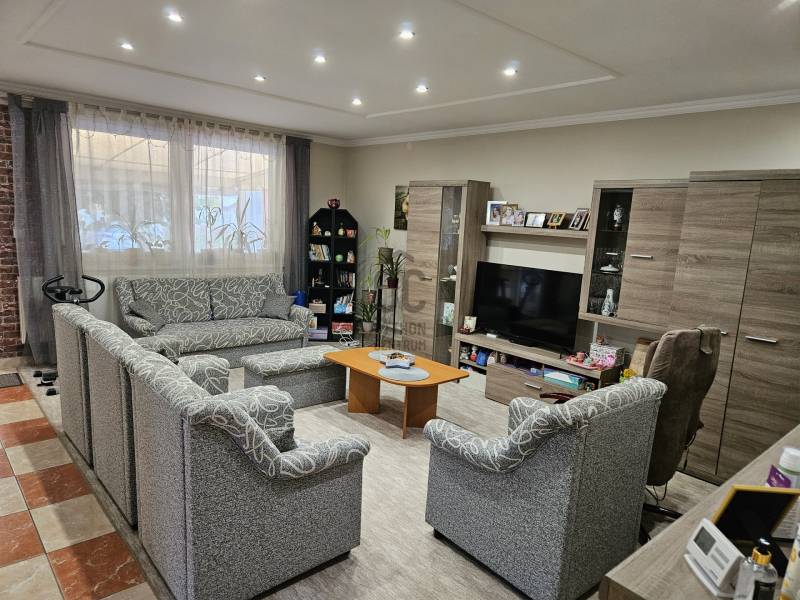 Debrecen Józsán eladó egy 1992-ben épült ház, az ingatlan szilikát téglából épült /1990 után nincs sugárzás a téglából ha valaki ettől félne/nappali-étkező-konyha + 5 szobás, eltolt szintes, részben felújított, 180 m2 nettó alapterületű, önálló családi ház, a hozzá tartozó engedéllyel tervrajzokkal rendelkező, 83 m2-es különálló műhellyel együtt, az alábbi paraméterekkel:- A ház néhány évvel ezelőtt teljes körű villamoshálózati felújításon és fűtéskorszerűsítésen esett keresztül, melyek keretében az összes villamosvezetéket kicserélték, új biztosítókat és megszakítókat szereltek be, új kondenzációs kazán került beépítésre, természetesen a kémény törvényi előírásoknak megfelelő átalakításával. A hőleadókat is modern alumínium radiátorokra cserélték. Ebből fakadóan a fűtési költségek alacsonyan tarthatók.- A villamossági felújítás során külön mérőórát szereltek be a műhely áramfogyasztásának mérésére.- A lakóház és a műhely gázellátása is külön gázórákon keresztül történik, mindkét ingatlanban kondenzációs kazán működik.- A korábbi nyílászárókat műanyagra cserélték (redőnyökkel, rovarhálókkal).- Az utcafronti garázs helyén jelenleg egy iroda van kialakítva, amit igény szerint vissza lehet alakítani.- A gépkocsik tárolását jelenleg 4 fedett beálló biztosítja a telken belül, míg további 4 nyitott beálló is rendelkezésre áll.- Az udvar parkosított, a fúrt kútról öntözhető kertben örökzöldek, gyümölcsfák, konyhakerti növények (fóliasátorban) találhatók.- A kerten kívüli terület teljes mértékben térkövezett.- A fedett terasz 28 m2.- Az épület földszintjén található fürdőszoba WC-vel szerelt, épített zuhanyzóval és káddal van ellátva és egy különálló második WC is helyet kapott.- Az emeleti részen további 2 fürdőszoba került kiépítésre, ezek közül az egyikben WC-kád-mosdó, a másikban zuhanyzó és mosdó került beépítésre.- Az 5 külön nyíló szoba kiváló lehetőséget biztosít több gyermek külön elhelyezésére, valamint dolgozó- vagy vendégszoba kialakítására is.A ház kiváló otthona lehet olyan családoknak, akik több szobát és otthoni vállalkozást is szeretnének egy ingatlanon belül tudni, nagyon széleskörűen hasznosítható.CSOK+, babaváró, Otthon Start Program akár kombinálva is felhasználható. További részletekért várjuk hívását a hét minden napján! |