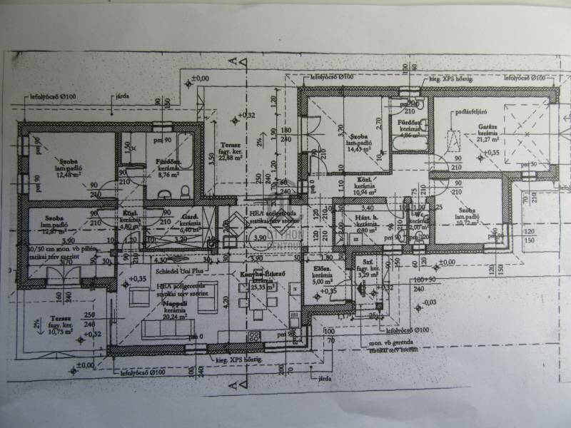 Debrecen-Alsójózsán, a Kiserdő utcai játszótér közelében, földszintes, nappali-konyha-étkezős + 4 hálós + 2 fürdő-wc-s + fürdő-háztartási helyiség + wc-s, 2025-ben átgondolt tervezéssel épült,azonnal költözhető/birtokba vehető, netto 168 nm-es (lakótér 147 nm + garázs 21 nm), önálló családi ház 731 nm-es telken eladó..A házba belépve tágas előszoba fogad minket, innen jutunk a hatalmas (46 nm) nappali-konyha-étkezőbe. A lakótérből nyíló teraszok egyike egy különleges 23 nm-es átriumos szeparált terasz. Minden szoba tágas, világos és jól bútorozható. A zárt garázson kívül lehetőség van a telken belül több autó beállására.A szobákban és a vizes blokkokban padló és radiátoros fűtés, a többi helyiségben padlófűtés van, a ház helyiségeinek hőmérsékletét külön-külön wifis termosztáttal szabályozhatjuk.Az ingatlan kivitelezése magas műszaki tartalommal, színvonalas minőségben készült, igényes hideg-meleg burkolatokkal. Minden nyílászáró elektromos, hőszigetelt aluredőnyökkel és rovarhálóval felszerelt, a redőnyök helyiségenként távvezérelhetőek.Műszaki tartalom:A Porotherm 30-as téglára 20 cm szigetelés került, a padlóba 15 cm és a födémre 35 cm.5 db hűtő-fűtő GREE klíma lett beépítve, melyek H tarifával működnek. A 2 db kondenzációs kazán lehetővé teszi a leghatékonyabb működést és az alacsony rezsiköltséget. Melegvízcirkulációs rendszer is kiépítésre került. Riasztórendszer a ház teljes belső terében kiépítésre került.A garázsban elektromos autótöltő lett beépítve, a kibővített teljesítményű 3 fázis lehetővé teszi napelemrendszer telepítését. Az ingatlan elhelyezkedéséből adódóan könnyen elérhető a buszmegálló,új bölcsőde, az óvoda, az iskola és a kisboltok,valamint a Józsa Park bevásárló központ is.A ház Energetikai Tanúsítványa: A+ |