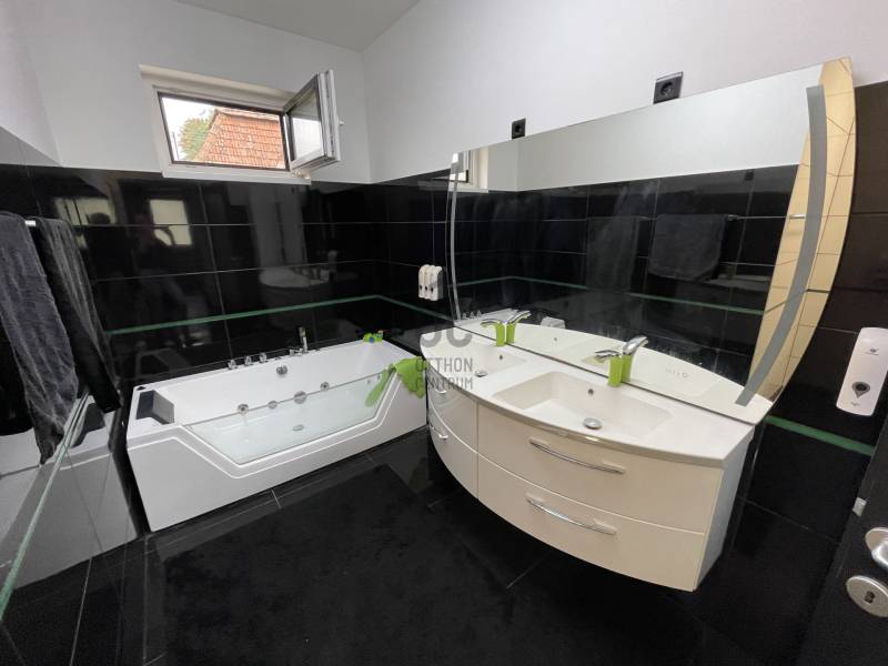 Képzeld el, hogy egy olyan otthonra találsz, ami nemcsak a családod igényeit szolgálja ki, hanem a mindennapjaidat is szebbé és kényelmesebbé teszi. Hajdúböszörmény szívében, a Belvárosban vár rád ez a világos, 2019-ben minőségi anyagokkal megépített modern családi ház, amely tökéletes választás családosok számára. Az ingatlan 143 négyzetméteren terül el, és egy 559 négyzetméteres telken fekszik, így bőséges helyet biztosít a gyermekeknek és a felnőtteknek egyaránt. A házban étkező-konyha-nappali egy légtérben+ 5 szoba található, amelyek ideálisak lehetnek hálószobának, dolgozószobának vagy akár vendégszobának is. A két fürdőszoba garantálja, hogy sosem kell várakoznod a reggeli rohanás közben. A 20 négyzetméteres terasz a családi összejövetelek, baráti grillezések vagy csak a pihenés tökéletes helyszíne lehet. A dupla garázsban és a részben térkövezett udvaron több autó számára elegendő hely biztosított. Az ingatlan hőszigetelt alumínium redőnyökkel, egyedi fa beltéri ajtókkal rendelkezik, a kellemes hőmérsékletet az év minden szakaszában Ariston kondenzációs gázkazán padlófűtéssel és Gree hűtő-fűtő klíma biztosítja. A kedvező paramétereknek és az 5 kW-os napelem rendszernek köszönhetően alacsony fenntartási költséggel bír.A környék központi elhelyezkedése lehetővé teszi a könnyű közlekedést. Emellett a környék biztonságos és csendes, ideális választás családok számára, akik értékelik a nyugalmat és a városi élet előnyeit. További kérdéssel, megtekintéssel várjuk szíves megkeresését!Irodánkban teljeskörű hitelügyintézéssel állunk ügyfeleink rendelkezésére.Ez az ingatlan a \"Felező csomag” megbízási portfólióhoz tartozik. Részletek az Otthon Centrum weboldalán.Ez az ingatlan a \"Felező csomag\" megbízási portfólióhoz tartozik. Részletek az Otthon Centrum weboldalán. |