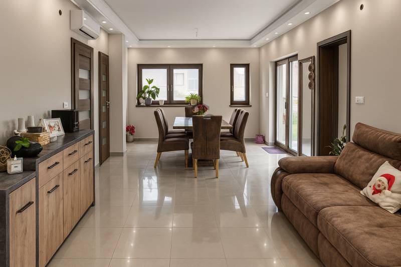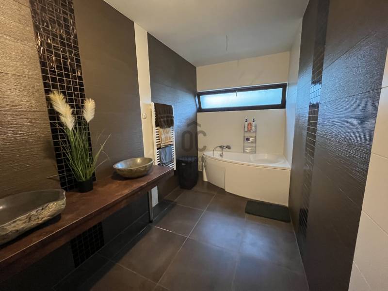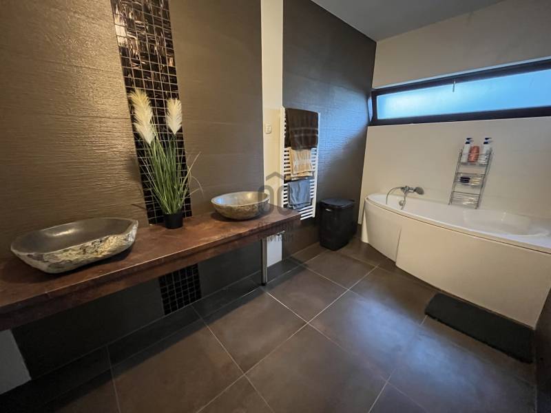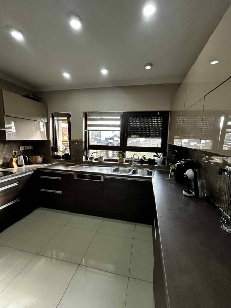 Eladásra kínálok a közkedvelt Nagybánya lakóparkban egy nettó 141 m²-es, önálló családi házat, melyhez 60 m²-es filagória, valamint garázs is tartozik. A tágas, jól átgondolt elrendezés és a kiemelkedő műszaki tartalom ideális választás lehet többgyerekes családok számára is.Elrendezés:- 4 különálló hálószoba - Szülői hálószobából nyíló privát fürdő- 33 m²-es nappali–étkező- Külön fürdőszoba és WC- 60 m²-es filagória – kiváló kinti étkezőként, pihenőként- 20 m²-es garázsTelek:- 720 m²-es, gondozott, tágas kertMűszaki jellemzők:- Cserép tetőhéjazat- 30 cm-es tégla falazat- 1 0 cm grafitos homlokzati hőszigetelés- Napelemrendszer (3Kw)- 3 rétegű, hőszigetelt műanyag nyílászárók dióbarna színben, redőnnyel és szúnyoghálóval- Kondenzációs gázkazán- Padlófűtés minden helyiségben- Klíma- Modern, energiatakarékos kialakításEz az ingatlan különleges lehetőség azoknak, akik egy modern, kiválóan szigetelt, energiahatékony, élhető és nagy kerttel rendelkező otthont keresnek egy rendezett, családbarát lakóparkban. ✅ Ügyfeleinket teljes körűen segítjük a vásárlás és eladás teljes folyamatában megbízható hiteltanácsadói és ügyvédi háttérrel.Amennyiben felkeltette az érdeklődését, hívjon bizalommal – akár hétvégén is! |