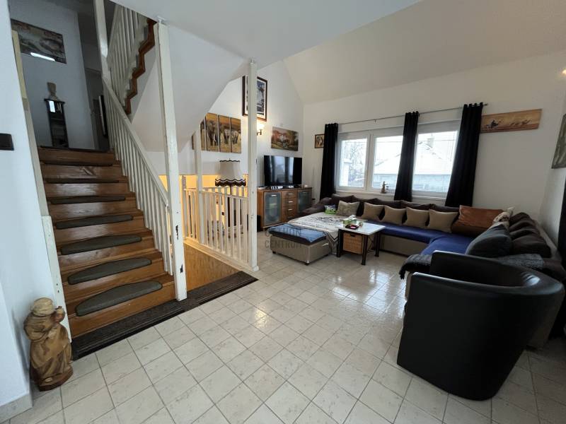 Bocskaikert központi részén, a Véndiófa Csárdához közeli utcában eladó, egy 150 m2-es, szinteltolásos, napfényes, igazán különleges otthon, ahol a család minden tagja megtalálhatja a számításait.Az épület a 90-es évek elején, B30-as téglából épült, mely 2022-ben 15 cm-es grafitos Austrotherm hőszigeteléssel, a födém 15 cm-es perlittel lett szigetelve.2021-ben műanyag nyílászárók kerültek beépítésre valamit a szobákban laminált padló lett lerakva.1044 m2-es telken helyezkedik el, így bőséges teret biztosít a szabadidős tevékenységekhez és a családi összejövetelekhez.A rendkívül jó hangulatú házban 5 szoba + tágas nappali-étkező található, amely a családi élet középpontja lehet. A két fürdőszoba különösen praktikus a nagyobb családok számára, hiszen így senkinek sem kell várakoznia a reggeli készülődés során. Pinceszinten egy 40 m2-es (nem fűtött) alagsorral is rendelkezik, ahol a gépészet és az új Hajdú kondenzációs gázkazán is található. Az egyenletes hőmérsékletet mindenhol padlófűtés biztosítja.Az udvaron lévő 70 m2-es melléképület korábban több gépjármű elhelyezésére is alkalmas volt, de a bejárat műanyag nyílászárókkal le lett zárva, így jelenleg tároló, műhely funkciót lát el, mely természetesen visszaállítható eredeti állapotba. Jelenleg parkolás az udvaron megoldható.Az kert locsolása fúrott kútról két kerticsappal (elől, hátul) biztosított.A környék csendes, biztonságos és családbarát. Pár perc sétára buszmegálló, több kisbolt, iskola, óvoda, bölcsőde, posta...... is található.Megtekintéssel és bővebb információval kapcsolatban hívjon, szívesen válaszolok. |