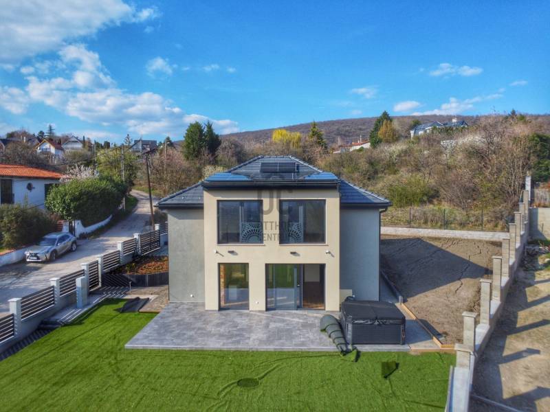 Szentendrén, a déli fekvésű Pismány hegy felső harmadában található ez az újépítésű, családi ház.Az ingatlan minőségi alapanyagok felhasználásával épült, magas műszaki tartalommal.Energetikai besorolása A+++, okosotthon, hőszivattyúról működő, mennyezet hűtés, padlófűtés, szellőztető rendszer, napelem, berendezett, gépesített konyha, beépített szekrények, vízlágyító berendezés.Olyan vásárlóknak ajánlom, akik kifejezetten csendes, elvonulós, panorámás otthont szeretnének.A ház azonnal költözhető.A vételár tartalmazza a dupla állásos garázst, melynek építése folyamatban van. |