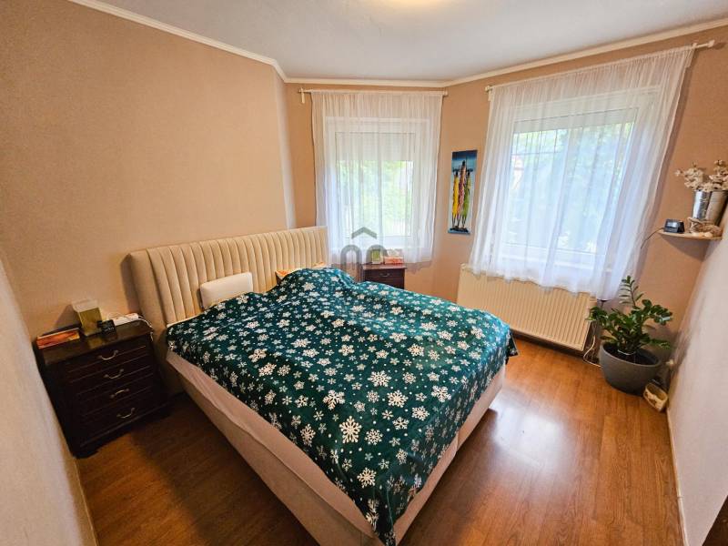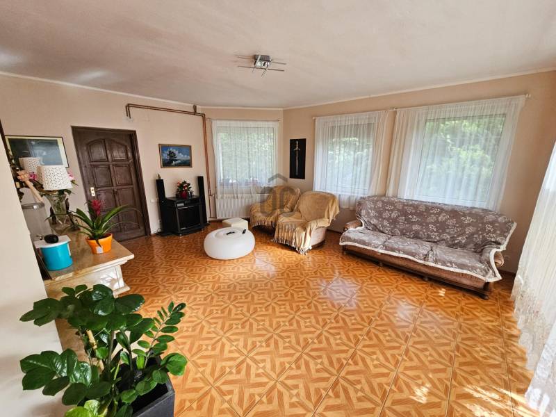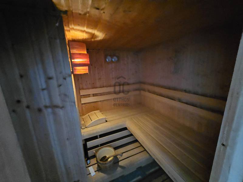 Budakalász belterület „ Amerikai negyedében” 317 n-öl telken feszik,tájolásadéli,beépítettsége 23%-os,amely további 7 %-kal bővíthető. Saroktelek, méretei:40 x 18.5 m.Szépen kialakított örökzöldel és gyümölcsfákkal beültetett terület.Új építésű ,csendes,”watch each other” kultúrált környezet,kiépített közúthálózattal.100 m-re a Omszk-tó, sportcentrummal,200 m-re az Euronics, Obi, Auchen, Yisk-áruház,Metro áruház található. 350 m-re van a felhajtó a 0-s körgyűrű északi hídjára a Megyerihídra.A 30 nm-es garázsban 2 személyautó fér el,további 2 autónak van kertbeállási lehetőség.A 2000-ben épült luxus lakóház jó,újszerű állapotban van, csodás panorámával a Pilis-hegységre.Építőanyaga 38-as porotherm tégla.belső burkolata vegyes.A stílus kialakításánál egy San Franciscói lakóház adta a mintát. Lényege,hogy a ki ésbeugró homlokzati részek megnövelik a panorámát,azaz az utcafronti rész 230 fokbanbelátható. A balusztrádos terasz,emeli a ház külső megjelenését és mind két utcafronti részenimpozáns látványt nyújt,burkolata 2 cm vastag márványlapokból áll.A ház 2 szintes.A felsőszint a terepszinttől 1 m-re kezdődik,márványlapokból készült a bejárati lépcső is, 2.1 m.széles, mindkét oldala báboskorláttal van fokonként díszítve.A bejárati ajtó több ponton záródó,biztonsági ajtó.Lakóházi riasztó berendezés ki van építve,beérkező riasztás esetén egy biztonsági szolgálat 5percen belül garantálja a helyszínre érkezést.Egy 24 Kw-os Stiebel eltron programozható gázkazán gondoskodik a helységek optimálisfűtéséről, a padlófűtés és radiátorfűtés kombinációjáról,valamint a medence vizének fűtéséről.A jelenlegi 2 lakószint 2 generációs jellegű,viszont tovább bővíthető 3.szinttel is/manzard /.A Rehau bukó-nyíló nyílászárók redőnyökkel és üvegszálas szunyogháló rolettákkal vannakkiegészítve. Márványlapokból vannak a könyöklők és a párkányokA panorámás Ny-i oldalon nagy üvegfalak biztosítják a zavartalan kilátást a hegyekre.Üvegfalak vannak a medence helységében is.A nappali éke a 34 Kw-os egyedi gyártású neo gót ,fatüzelésű márványkandalló, akovácsoltvas és mária üveges ajtóval, amely a felső lakószint teljes fűtését is képes ellátni.Egy 4.2 Kw-os klíma berendezés is van, amely a felső szint hűtését tartósan klimatizálnitudja. Ez még tovább bővíthető.Az Amerikai konyha bútora cseresznyefából készült, ami szépen alliterál a burkolattal,kialakítása praktikus, könnyű bejárni, nagy rakodótérrel rendelkezik, 6 személyesmosogatógép és elektromos sütővel kombinált gáztűzhely van beépítve,feletteelszívóberendezés viszi ki a szabadba a szagokat. A szuterén alapterülete nagyobb a fölsőlakószintnél. A 2 x 42 nm-es szobák ideálisak szabadidős tevékenység eltöltésére,pl. ping-pong-,mozi terem, edzőterem, műhely stb. Szauna és a 13 köbös fűthető úszómedence jelentiaz év minden szakában a felüdülést, ahonnan egy lépés a pihenésre és napozásra rendkívülalkalmas a széltől és a kiváncsiskodó szemektől védett pinceterasz.Itt a terepszint alatt két méterre egy sziklakert van kialakítva,örökzöldekkel, színes és illatos egynyári virágokkal és pozsgásokkal. Az alsó falat borostyánés repkény futja be,mely az őszi időszakban vörös és sárga színekben pompázik. |