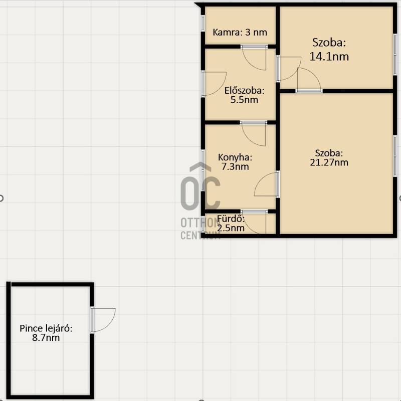 Eladásra kínálunk Érd központjához közeli, mégis nyugodt kis utcában található családi házat, amely kiváló lehetőség azoknak, akik jó elhelyezkedésű, átalakítható ingatlant keresnek.A ház alapterülete 53,67 m², jó elosztású, világos helyiségekkel rendelkezik. Az épület átlagos állapotú, egyes helyiségei – mint például a konyha és a fürdőszoba – felújításra szorulnak, azonban az ingatlan jelen formájában is használható.A telken található egy különálló, 10,8 m²-es melléképület, melyből pincelejárat nyílik egy száraz, jól használható borospincéhez. A telek összesen 466 m², trapéz alakú, gondozható, több melléképülettel és tárolóval.Főbb jellemzők:53,67 m²-es főépület10,8 m²-es különálló épület pincével466 m²-es telekVilágos helyiségek, jól kihasználható belső térÁtlagos állapot, részben felújítandóTöbb tároló, melléképület a telkenBorospince az udvari épület alattLokáció:Az ingatlan Érd egyik legkeresettebb részén található, ahol a központi elhelyezkedés és a csendes, nyugodt környezet ideális egyensúlyt kínál. Bevásárlási lehetőségek, óvoda, iskola, gyógyszertár, éttermek és egyéb szolgáltatások gyalogosan elérhetők. Autóval Budapest és az M7/M6 autópályák könnyen elérhetők, tömegközlekedéssel pedig szintén kiválóan megközelíthető az ingatlan – buszmegállók, vasútállomás a közelben találhatók.Ez az ingatlan jó alapot biztosít akár azonnali beköltözésre, akár egy tudatosan megtervezett felújításra. A helyszín adottságai miatt hosszú távon is értékálló választás.További információért vagy megtekintés egyeztetéséért kérem, vegye fel velem a kapcsolatot. |