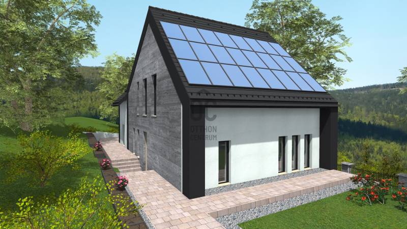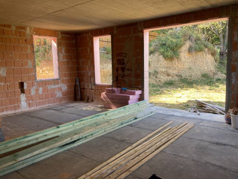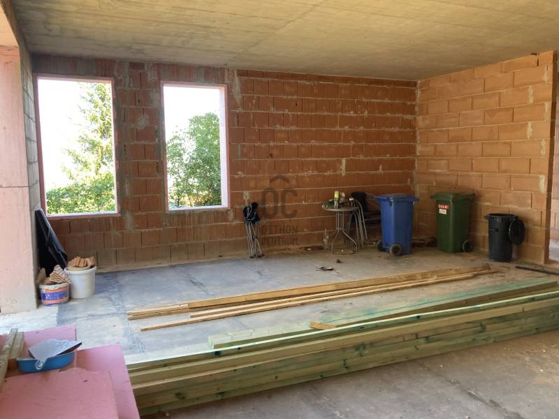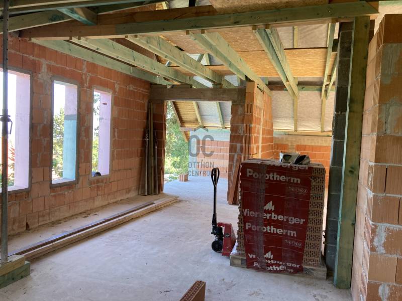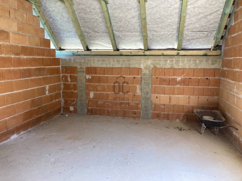 Solymár-Kerekhegyen eladó egy szerkezetkész családi ház.A ház befejezése az új tulajdonosokra vár. A telek :zsákutcában található,csendes környék.aszfaltos úton megközelíthető ,tömegközlekedés gyalogosan 5 perc1101 nm sík terület panorámásvíz, villany, csatorna telken belülgáz az utcában találhatóA családi ház: A ház szerkezetkész állapotban ( kb. 65-70% ) Családi háznak, de akár két generációs háznak is kialakítható.Tervek alapján a földszint nettó 91,49 nm ( bruttó 123,5nm ) A tetőtér hasznos alapterülete 87,92 nm ( bruttó 98,42 ) A teherhordó falak 30 cm-es POROTHERM téglából ,válaszfalak 10 cm-es POROTHERM téglából épültek.Tető : cserép fedésnapelemes fűtést is terveztek a jelenlegi tulajdonosok, ezért a tető kialakítása elbírja. kémény lett beépítve mind a két szintre.Alternatív fűtési megoldásként cserépkályhát, kandallót lehet kialakítani.Mind a két szintre 2-2 fürdőszoba lett tervezve,valamint mind a két szintre 30 nm körüli tágas nappali -konyha A víz és a csatorna kialakítása megtörtént mind a két szinten.99%-ban a víz kialakítás megtörténtTeljes körű villanyszerelési munkák az árban benne vannak. Kb. 80%-ban elkészült.Külső Nyílászárók már bent vannak . |