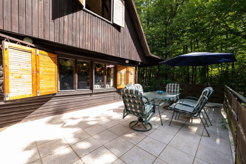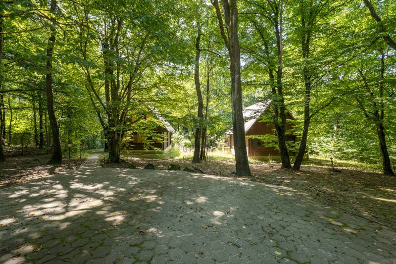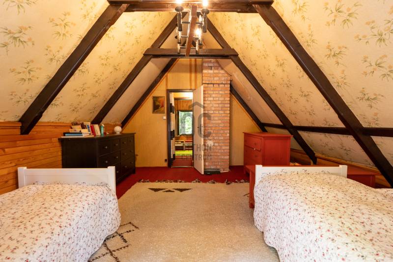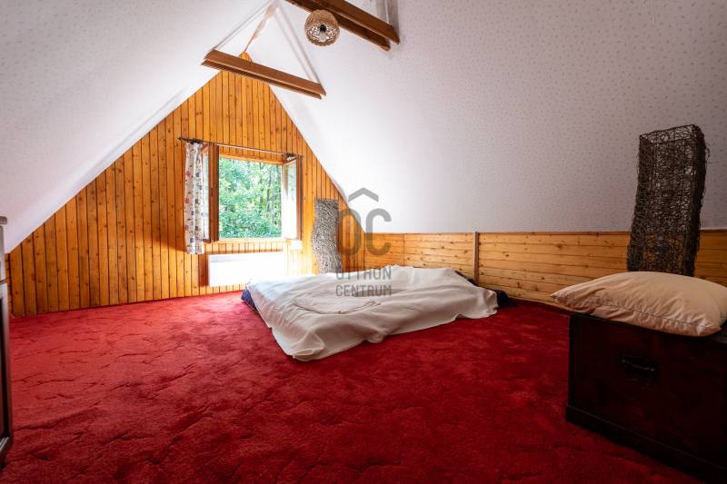 Dobogókő csendes utcájában eladó egy telken két téliesített faház.Hétvégi háznak van besorolvaBelterületi telek 15% beépíthetőségÜH-1 besorolás 4,5 m homlokzati magasság A HÉSZ szerint a ház bővíthető! A telek 2158 nmkörbe kerített3 autó beállására kialakított autóbeálló, térkővel kirakvaősfák, örökzöldekrendezett kertkerti sütögető kialakítvafa tárolásra különálló ház kialakítvavíz, villany bekötveI. ház A faház 45 nm alapterületű, emelettel együtt 70 nm A pince világos, száraz, a kert felől megközelíthetőbeton alapozástéliesített cseh faház, jó állapotúkb. 30 nm-es teraszról juthatunk a házba. Az előszoba, tágas, nappali- konyha egyben, \"L\" alakban.Világos, otthonosKonyha kiépítése, berendezése átgondolt. A nappaliban az épített cserépkályha befűti a teljes házat. Fürdőszoba, WC egyben, zuhanykabinnal ellátva.Meleg víz villanybojlerrel megoldott.Emeletre egy kényelmes lépcsőn juthatunk fel, ahol két szoba lett kialakítva.Minden helyiségben fa nyílászáró. Az ablakokon spaletta és rács.A ház bútorozva eladó.2. ház Az első ház tükörképepince világos, a kert felől megközelíthető, felújításra szorul.beton alapozástéliesített cseh faház, jó állapotúkb. 30 nm-s teraszról juthatunk a házba. Az előszoba, tágas, nappali- konyha egyben, \"L\" alakban.Világos otthonosKonyha kiépítése, berendezése átgondolt. A nappaliban, az épített kandalló befűti a teljes házat. Fürdőszoba, WC egyben, zuhanykabinnal ellátva.Meleg víz villanybojlerrel megoldott.Emeletre egy kényelmes lépcsőn juthatunk fel, ahol két szoba lett kialakítvaMinden helyiségben fa nyílászáró. Az ablakokon spaletta és rács.A ház bútorozva eladó.A két ház csak egyben eladó!Vendégháznak, befektetésnek, hétvégi háznak, több generáció együttélésére is alkalmas |