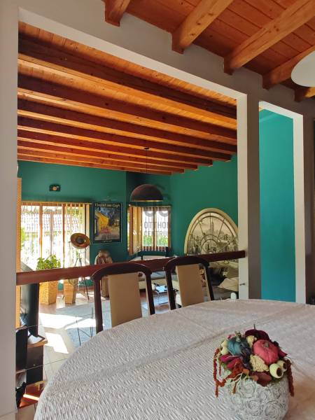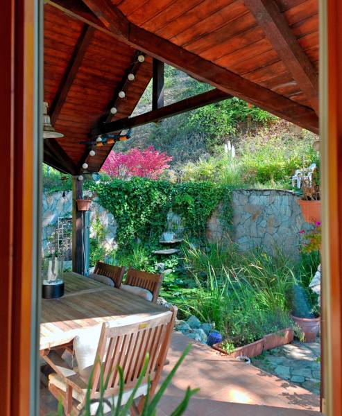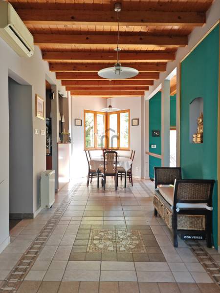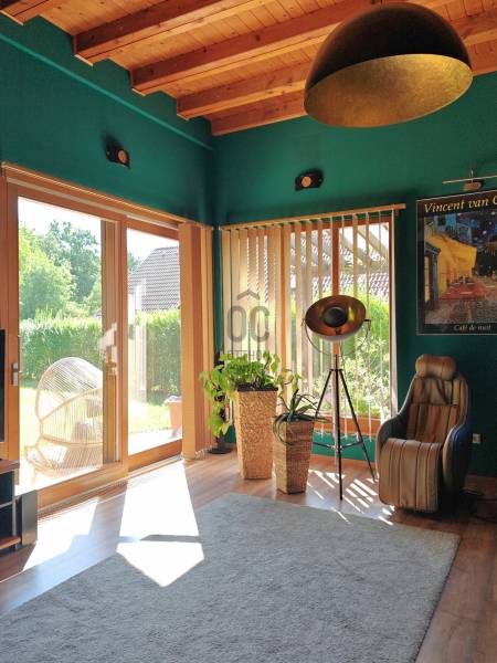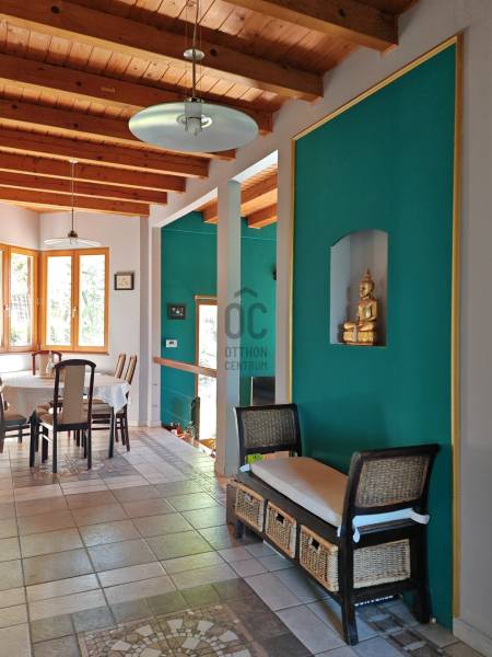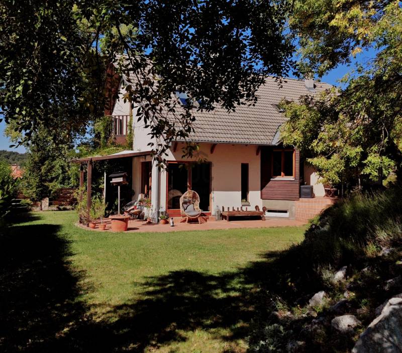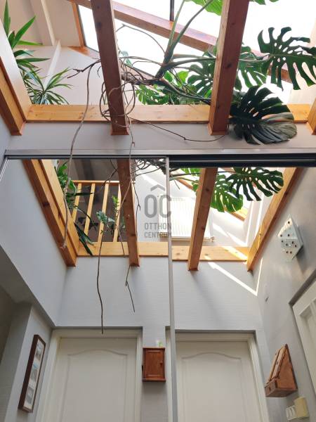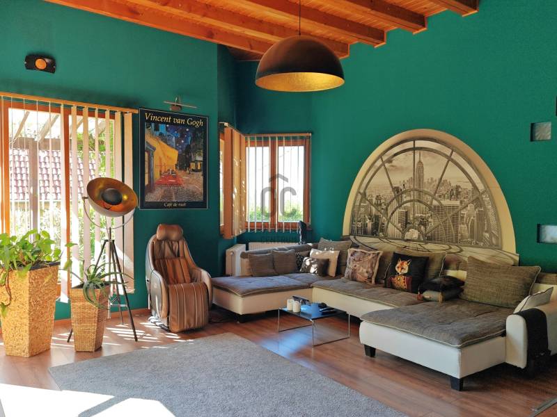 PILISJÁSZFALU településen, ERDŐ SZÉLÉN egy belső három szintes egyedi tervezésű családi ház eladó!TELEK: 619 nm- különleges hangulatú, intim - ápolt, kert- buja növényzet - panorámás- teraszos kialakítás , a terepviszonyok miatt- külön kialakított terasz az étkezésre, a napozásra, családi összejövetelekreCSALÁDI HÁZ- 2001-ben épült- egyedi tervezés alapján- könnyűszerkezetes- egész nap körbe süti a nap- nappali dél-keleti fekvésű- különleges egyedi hangulat, igazi otthon - belső három szint- szuterén részben : mozi terem, szauna, közösségi terek.- a középső utcafronti részben kapott helyet a nappali-konyha, étkező, valamint a dolgozószoba, dupla állású garázs , - felső tetőtérben a fürdőszoba, három hálószoba lett kialakítva.- két kisebb szobából kis erkélyre tudunk kimenni- fürdőszoba világos, sarokkádas, természet közeli , viszont intim a nagy ablakok miatt.- Klíma hűtő-fűtő nagy teljesítménnyel- jelenleg a fűtés gázkazánnal megoldott, de javasolt a cseréje kondenzációs kazánra.- belmagasság a házban eltérő, a felső és a szuterén részben 240és 260cm- A nappaliban 350 cm - tudatos tervezéssel, szinteltolással lett kialakítva a nappali-konyha-étkező |