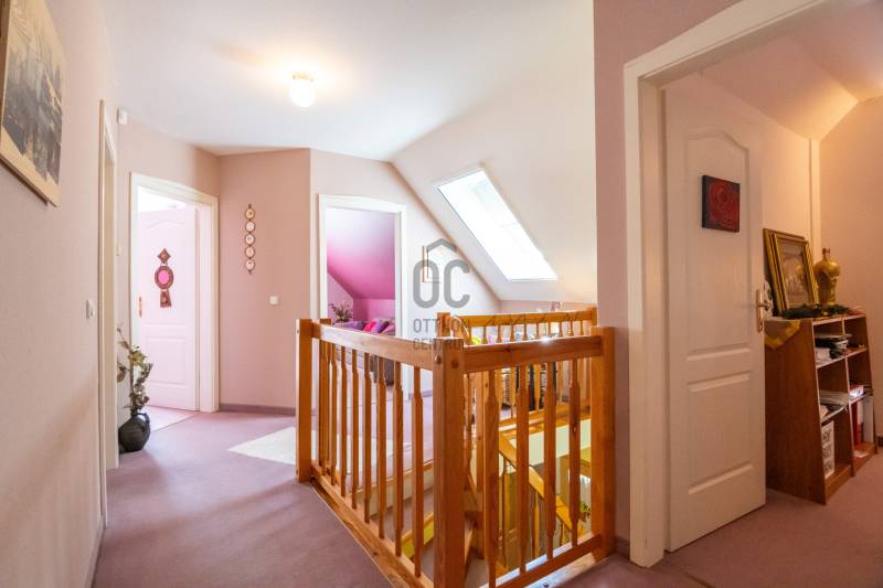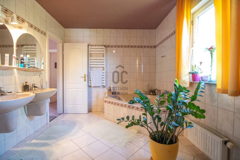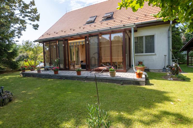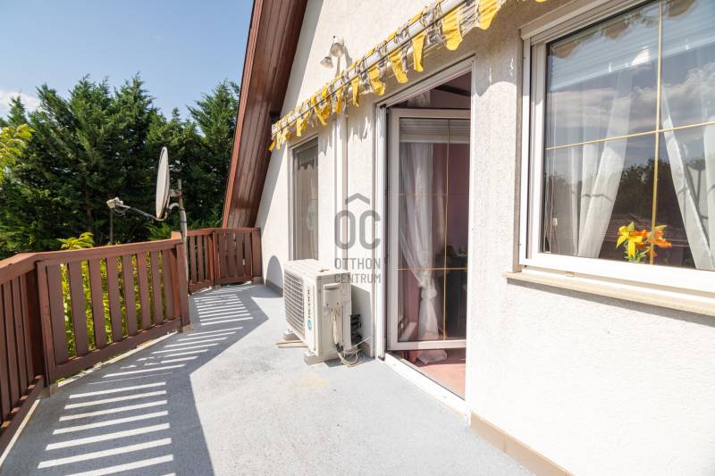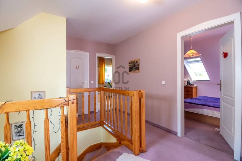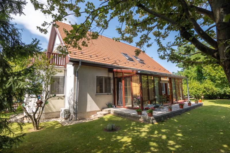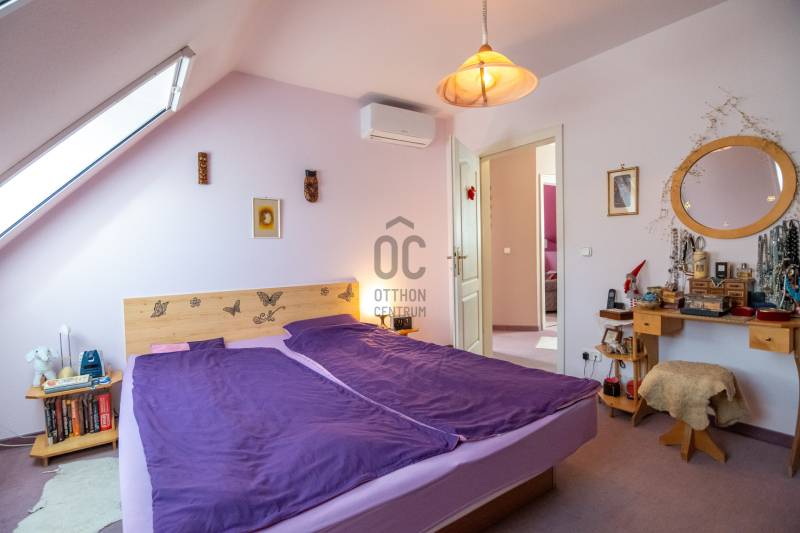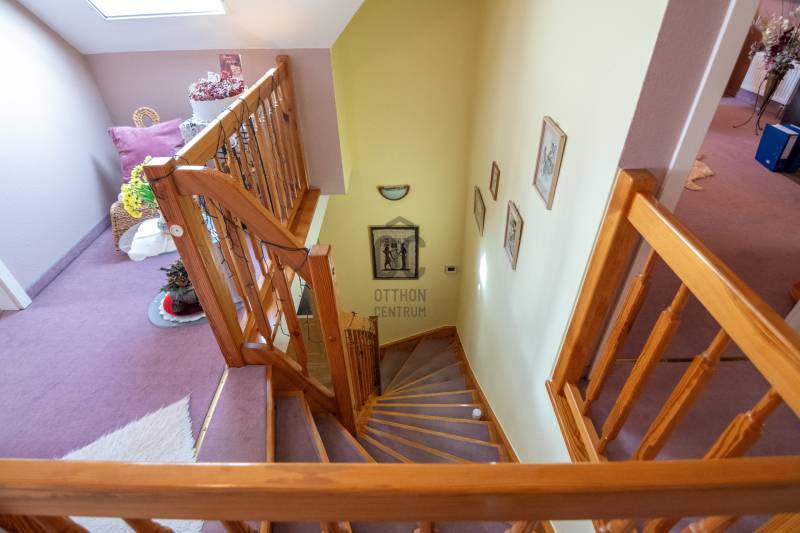 Eladásra kínálok Piliscsabán, a Csabagyöngye lakóparkban, az erdő nyugalmában egy belső kétszintes, nappali+ 5 hálószobás, 2 gardróbos, 2 fürdőszobás, külön és egybe wc-s, könnyűszerkezetes családi ház, mely sík, 900 nm-es telken helyezkedik el. A ház német technológiával épült 1997-ben, melyre 50 év garancia van! A ház alapterülete 210 nm, plusz 50 nm a garázs, amiben akár 4 személygépjármű is elfér, és egy 30 nm-es beépített terasz is tartozik hozzá. A garázs és a ház előtt is viakolor gondoskodik a könnyű parkolásról. Nappali padlófűtéses, de radiátorok is gondoskodnak a melegről. A konyha gépesített, kb. 10 éves, es mellette van egy spajz. A teljes szint körbejárható. Külön helyiségben van mosókonyha, ahol a Boch kazán 2 éves, és mely mellett vízlágyító gép is van. Egy hálószoba és fürdőszoba a földszinten van, így két generáció össze költözésére is ideális új otthon lehet ez a ház. A nyári melegben 5 db klíma gondoskodik a hűtésről.A kertben locsoló rendszer működik, a vízelvezetés a csatornából pedig drain csövekkel megy a földbe. A ház tetején villany hárító van. Riasztó és kamera rendszer is kiépítésre került. Stílus, minőség, és minden jól át lett gondolva! |