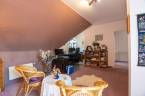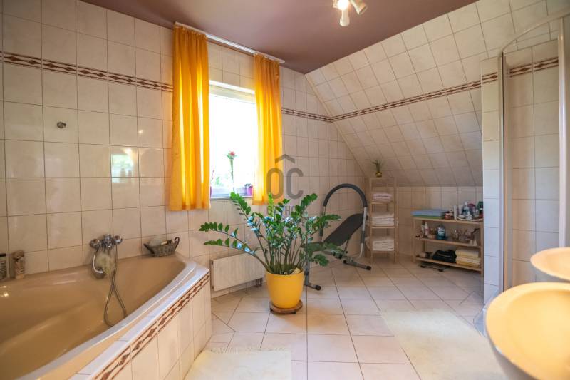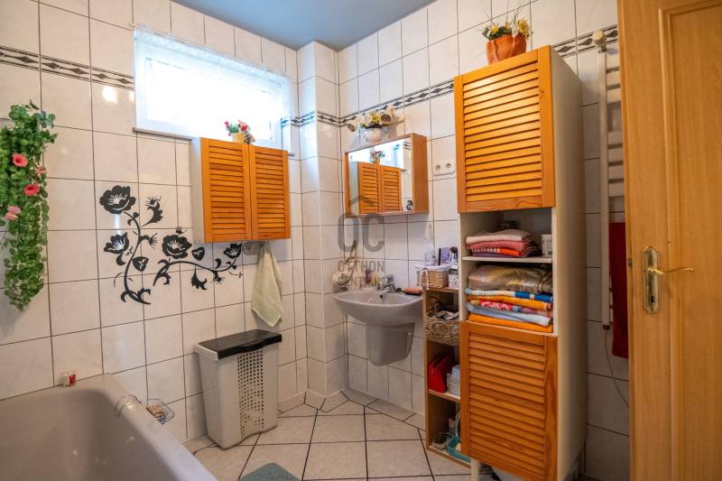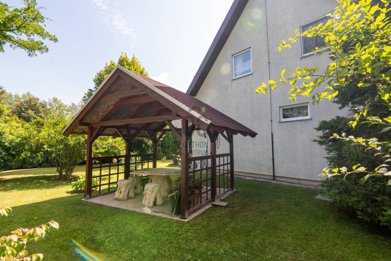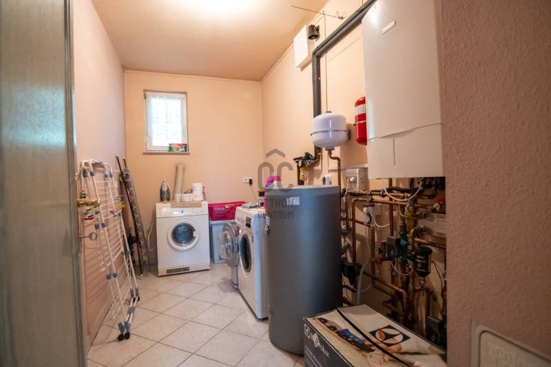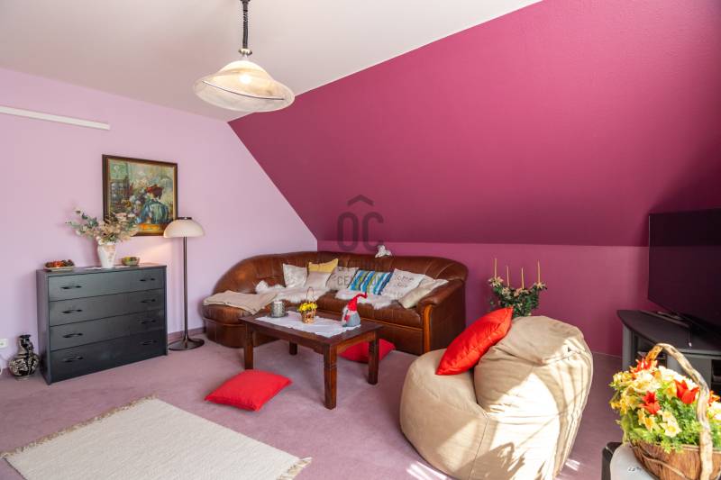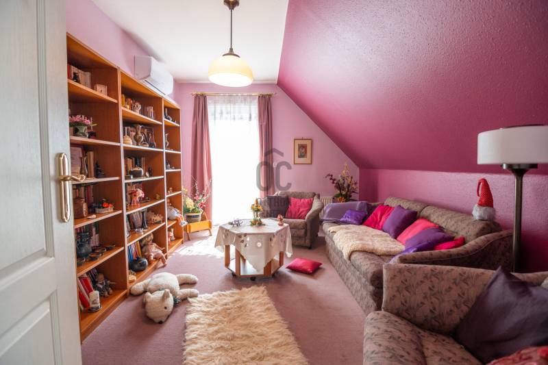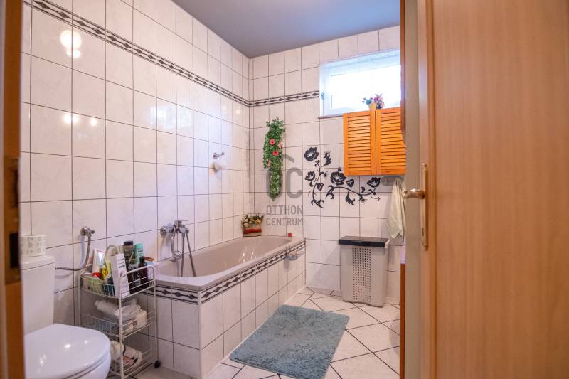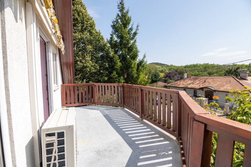 Eladásra kínálok Piliscsabán, a Csabagyöngye lakóparkban, az erdő nyugalmában egy belső kétszintes, nappali+ 5 hálószobás, 2 gardróbos, 2 fürdőszobás, külön és egybe wc-s, könnyűszerkezetes családi ház, mely sík, 900 nm-es telken helyezkedik el. A ház német technológiával épült 1997-ben, melyre 50 év garancia van! A ház alapterülete 210 nm, plusz 50 nm a garázs, amiben akár 4 személygépjármű is elfér, és egy 30 nm-es beépített terasz is tartozik hozzá. A garázs és a ház előtt is viakolor gondoskodik a könnyű parkolásról. Nappali padlófűtéses, de radiátorok is gondoskodnak a melegről. A konyha gépesített, kb. 10 éves, es mellette van egy spajz. A teljes szint körbejárható. Külön helyiségben van mosókonyha, ahol a Boch kazán 2 éves, és mely mellett vízlágyító gép is van. Egy hálószoba és fürdőszoba a földszinten van, így két generáció össze költözésére is ideális új otthon lehet ez a ház. A nyári melegben 5 db klíma gondoskodik a hűtésről.A kertben locsoló rendszer működik, a vízelvezetés a csatornából pedig drain csövekkel megy a földbe. A ház tetején villany hárító van. Riasztó és kamera rendszer is kiépítésre került. Stílus, minőség, és minden jól át lett gondolva! |
