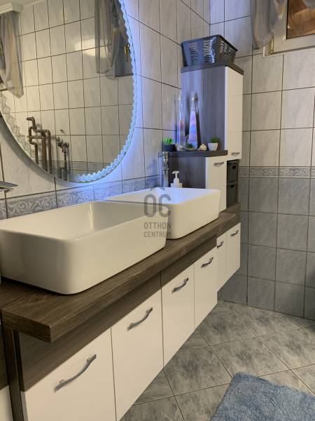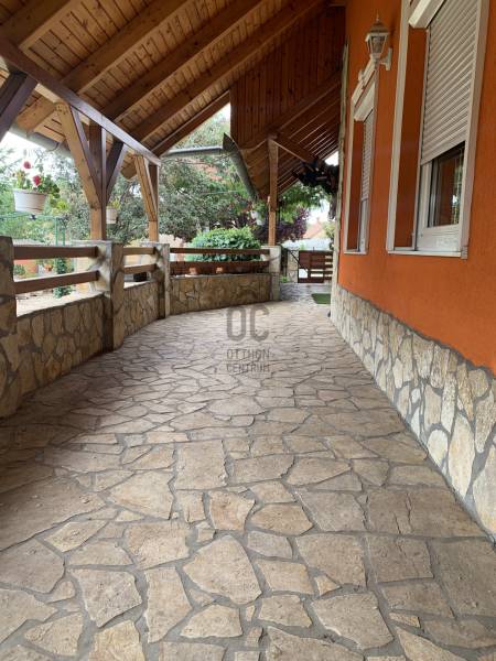 2721, Pilis Budapestről 30 percre a megújult M4-es úton.Telek mérete 1959 nm a rajta található három külön felépítmény összesen 548 nm.Lakóház: -földszint 107,88 nm -emelet 184 nm -garázs 98 nm, - melléképület 128 nm, -melléképület 30 nm Ház/telek leírás:Önálló körbejárható csalási ház 1997-ben épült 38-as porotherm téglából. A teraszt befedő tetőnek köszönhetően a szigetelés és a a hőérzet kiváló. 2007-ben a szomszédos telek megvásárlásával összeépítették a két épületet és közös tetőt kapott. 2017-ben felújításon esett át, korszerűsítették a villanyhálózatot és digitális villanyórákat szereltek fel. Napelem rendszerhez megfelelő. A ház összkomfortos ( víz, gáz, villany csatorna). Az épület fűtését és meleg víz ellátását olajkazán biztosítja jelenleg. A hidegburkolatok alatt padlófűtés van kialakítva . Földszinten: előszoba, konyha, fürdőszoba, W.C, nappali, hálószoba találhatóEmeleten: 4 szoba, fürdőszoba/W.C., tároló. A házban minden helyisége ablakos.A telek területét 2.20 cm magasan vágott zsalukerítés védi, mediterrán kőburkolattal. Zárt kamerarendszer 16 ponton. Három elektromos nagy kapu, 4 nyitott parkoló hely, 2 állásos garázs hely, teherautó beállási lehetőség .A ház teljes terjedelme körül fedett terasz, mediterrán kőburkolat, beleértve a gépkocsi beállókat is. 3 db fúrt kút, időzítős locsoló és csepegtető rendszer. A kerti tó egész évben üzemel. Gyümölcsfák, sziklakertek gondozott növények.A telek hátsó részén önálló épület, kennelek állatok számára.Városközpont 2 perc, bölcsőde, óvoda, iskola, sportközpont. Túrázási lehetőségek tájvédelmi területen pár perc sétáraM4-es út 4 percre.Budapesttől 30 percre