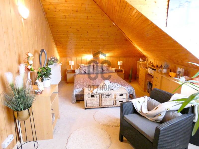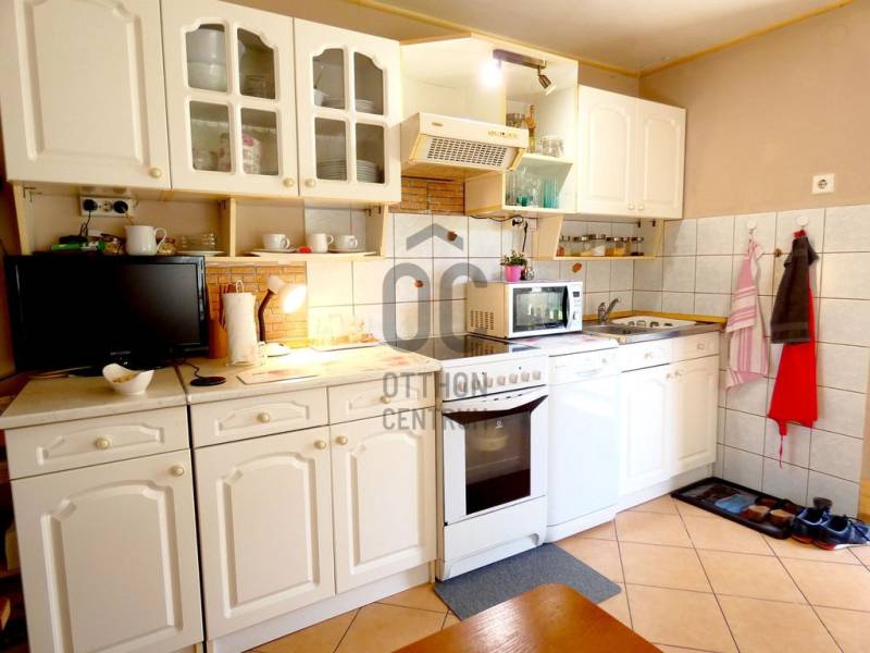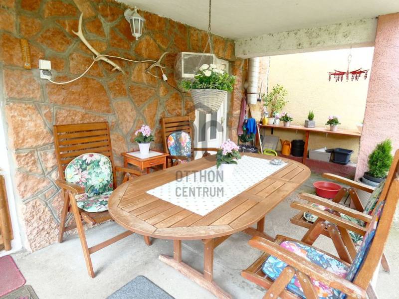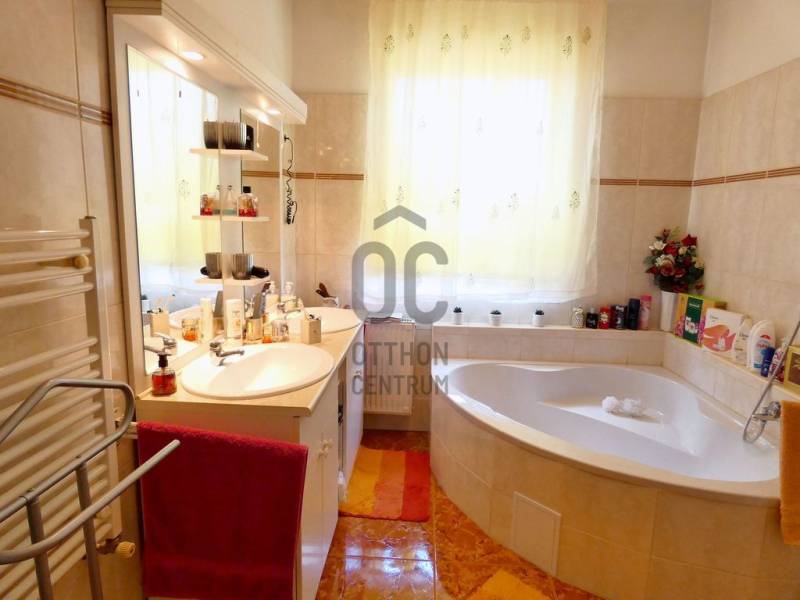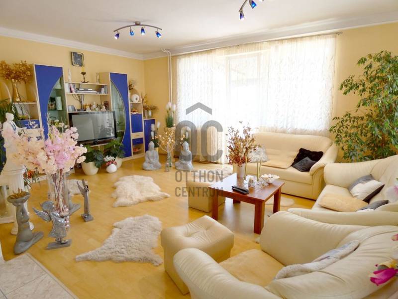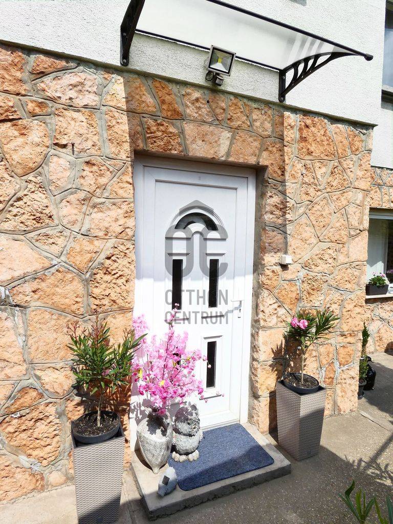 Tatán csendes utcában, szépen parkosított telken eladó 6 szobás családi ház.Az ingatlanban összesen 6 szoba, 3 fürdőszoba, 2 konyha és egy hatalmas étkező-nappali található. A méretéből adódik hogy akár két generációnak is alkalmas lehet, de ideális választás lehet pl. turisztikai befektetésre és kiadásra is.Tata nevezetessége a Kálvária domb kb. 500m-re, Tata történelmi városrésze a Kossuth térrel pedig 700m-re van csak a háztól.A ház csendes mellékutcában helyezkedik el, de megközelítése kitűnő, hiszen a Május 1 u. alig pár száz méterre, az M1 autópálya pedig 1,7Km-re, azaz autóval 1,5 percnyire található csak.Ebből adódóan ingázóknak is tökéletes lehet, hiszen az M1-en Győr, Komárom és Budapest is könnyen elérhető.A gépkocsik biztonságos parkoltatására egy utcafrontról nyíló garázs, valamint egy kapun belüli fedett beálló áll rendelkezésre.A ház nemcsak lakó, de kereskedelmi (pl. élelmiszer bolt), szolgáltató (pl. orvosi rendelő) vagy vendéglátó egységnek (pl. kávézó) is megfelelhet, akár csak ha az utcafrontról nyíló garázsra, és a mellette lévő helyiségekre gondolunk.A ház egy kellemes, jól kezelhető méretű telken fekszik.Az udvar belső része intim teret biztosíthat családi összejövetelekre, medence felállításra, vagy grillezésre.Az emeleti árnyékolóval fedett terasz erre a kellemes belső udvarra tekint le.Az ingatlan fűtése akár gázkazánnal, akár vegyes tüzelésű kazánról is megoldható. A beépített bútorok a vételár részét képezik, a többi bútor megállapodás tárgyát képezheti.Ha további kérdése van, szívesen tájékoztatom, de persze a legjobb,ha megnézzük személyesen. Ön mikor ér rá? Egyeztessünk! |