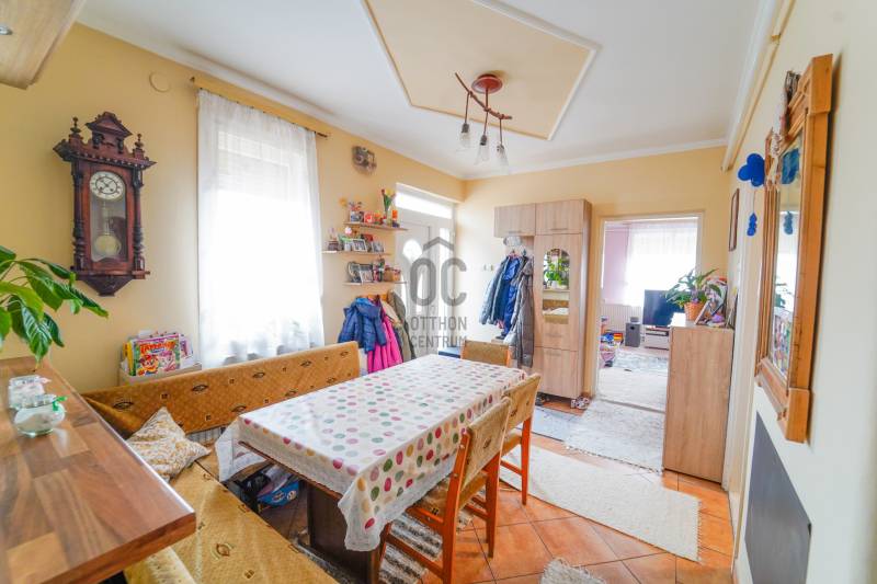 Hajdúhadház központjában lévő, Nappali konhya étkező + 3 szobás, amerikai konyha+nappalis, nettó 120nm-es családi házat kínálok eladásra!Telek méret 478 nm, élhető udvar, dupla fedett kocsibeálló, esztétikus melléképület.Az ingatlan főbb jellemzői:- beton alap, porotherm tégla falazat, cserép hájazat- fa nyílászárók, redőny, rovarháló- 25 cm tetőszigetelés + cserép alatt hő és víz szigetelés- 2 bejáratú ingatlan- kényelmes, fedett terasz, járólap borítással- bruttó 140 nm- nettó120 nm alapterületű hasznos lakótér- modern igényes konyhabútor beépített háztartási gépekkel- Nappali + 3 külön nyíló szoba (egy a földszinten, kettő az emeleten a tágas hallból)- gardrób a szülői hálóból nyílik- fűtését gáz cirkó és vegyestüzelésű kazán biztosítja radiátoros hőleadókkal-klíma- mosókonyha- dupla garázs- kiépített öntözőrenszer- motoros mozgatású kapu Statikailag kíváló ingatlan!Az ingatlanról teljes körű videó felvétel készült, a megtekintése érdekében weboldalunkon keresse a H497968 regisztrációs számon vagy keressen telefonon közvetlenül.Amennyiben fantáziát lát benne, további információért és a megtekintéssel kapcsolatban forduljon hozzám bizalommal! |