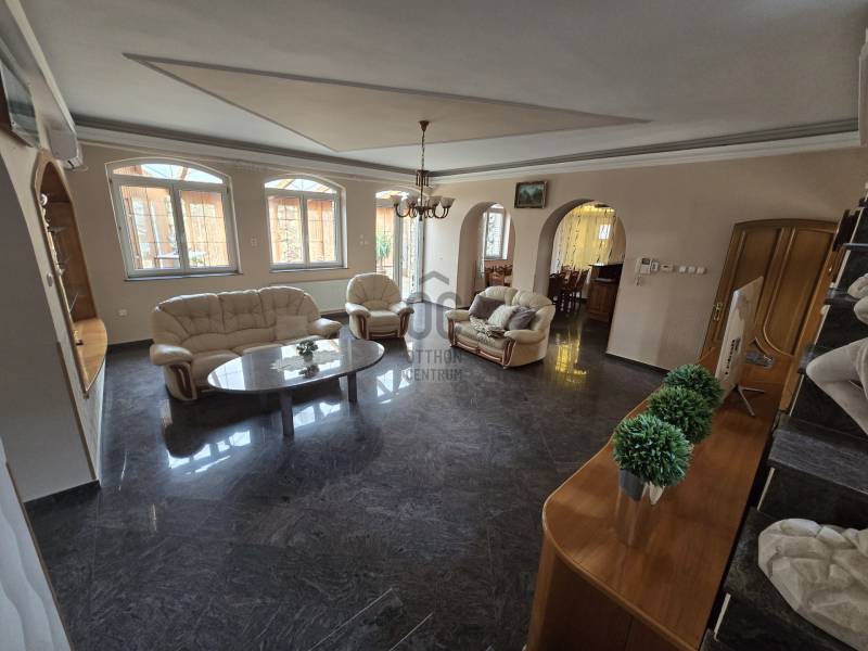 Fedezze fel ezt az egyedi adottságokkal rendelkező ingatlant Tégláson, ahol egy tágas, kétgenerációs családi otthon várja új lakóit. Ideális választás nagycsaládosok számára, akik a nyugalmat és a kényelmet keresik egy csendes környéken. Az ingatlan alapterülete 234 nm, valamint a különálló melléképület 114 nm , amelyet egy 1232 nm-es telek ölel körül.Ingatlan jellemzői:- tégla építésű, külső burkolattal- műanyag nyílászárók- gáz-cirkó fűtés padló valamint radiátoros hőleadással- vegyes tüzelésű kazán- klíma- télikert- minőségi fa konyhabútor- egyedileg asztalos által készített beltéri ajtók- gránit burkolatok- 2 nappali 5 szoba- szintenként fürdőszoba, különálló wc - pince- vadászterem különálló épületben 114 nmA házban összesen 7 szoba található, amely lehetőséget biztosít a család minden tagjának a saját tér kialakítására. A tágas nappali a középpontja a családi életnek, míg a 2 fürdőszoba praktikusan szolgálja a mindennapi kényelmet. A nappaliból közvetlen kijárat van a télikertbe, ahol fűtés is van. Az ingatlan jó állapotú és a gáz cirkó fűtés biztosítja a kellemes hőmérsékletet a hideg téli hónapokban is. Továbbá, a garázs egy autó számára biztosít helyet. A környék csendes, barátságos légkörével ideális választás a családok számára. A közeli közlekedési lehetőségek, mint a buszjáratok, könnyedén elérhetővé teszik a város többi részét, így a napi ingázás sem okoz gondot. Téglás városában számos bolt, iskola és játszótér található, amelyek mind hozzájárulnak a családi élet kényelméhez és élvezetéhez.Ez a tehermentes ingatlan egyedi tervezésével és kiváló adottságaival nemcsak egy otthont, hanem egy életstílust is kínál.A családi együttlétek, baráti összejövetelek és a nyugodt hétvégék helyszíne lehet a külön épületben kialakított vadászterem, ahol szintén kialakításra került fürdőszoba és különálló wc is. A melléképület alapterülete 114 nm. Melléképületben a fűtés kandallóval megoldott.Ne hagyja ki ezt a lehetőséget, hogy egy olyan ingatlanra tegyen szert, amely minden igényt kielégít! Amennyiben bármilyen kérdése van az ingatlannal vagy a vásárlási folyamattal kapcsolatban, bizalommal keressen!Az ingatlanról teljes körű videó felvétel készült, a megtekintése érdekében weboldalunkon keresse a H502742 regisztrációs számon vagy keressen telefonon közvetlenül.Téglás, kétgenerációs, egyedi, minőségi ingatlan |