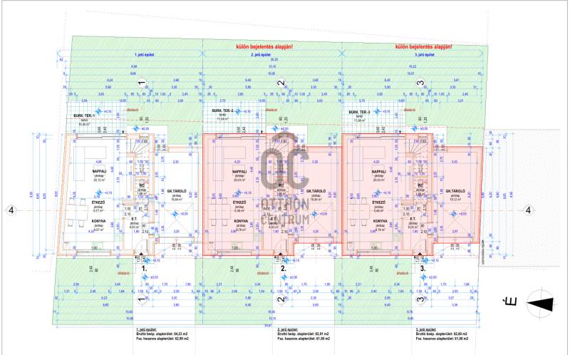 Debrecen kedvelt részén, a Hatvan utcai kert csendes, új építésű övezetében, magas műszaki tartalommal rendelkező, jó elrendezésű, kétszintes, sorházi lakások eladók. Az ingatlanok nappali + 3 szobásak, dupla komfortúak, a földszinten garázzsal, terasszal, és önálló kertkapcsolattal. Illeték mentes vásárlás, kedvező hitelkonstrukció és vásárlási feltételek.Az egyedi kialakítású, napfényes lakás nappali + 3 szobás, kétszintes és kertkapcsolatos:földszinten: nappali-konyha-étkező, előszoba, wc-kézmosóval és garázsI. emeleten: 3 db közlekedőből külön nyíló hálószoba és háztartási helyiség3-as lakásMagas műszaki tartalom akár egyedi igényekre szabva:- külső falak Porotherm 30 cm tégla, homlokzati 10 cm grafitos hőszigeteléssel, az egyes sorházak között és a két szélső tűzfalon ásványgyapot szigeteléssel- a földszint padlólemezében 12 cm lépésálló EPS szigetelés, míg az emeleten 5cm lépésálló EPS szigetelés- padlásfödém hőszigetelése szálas ásványgyapot szigetelés 30cm vastagságban- 3 rétegű üvegezésű 6 légkamrás műanyag nyílászárók- elektromos alumínium redőnyök egyedileg is vezérelhető távirányítással- mennyezethűtés- levegő-víz hőszivattyú padlófűtéssel és mennyezethűtéssel- H-tarifa 3X16A- riasztó rendszer telepítéséhez szükséges vezeték és hálózat telepítés- Távvezérelhető, hőszigetelt, szekcionált garázskapuk barna színben, 2 db távirányítóval- kertkapcsolat- várható átadás 2026 szeptemberTovábbi kérdéseire állok rendelkezésére, hívjon a hét bármelyik napján. |