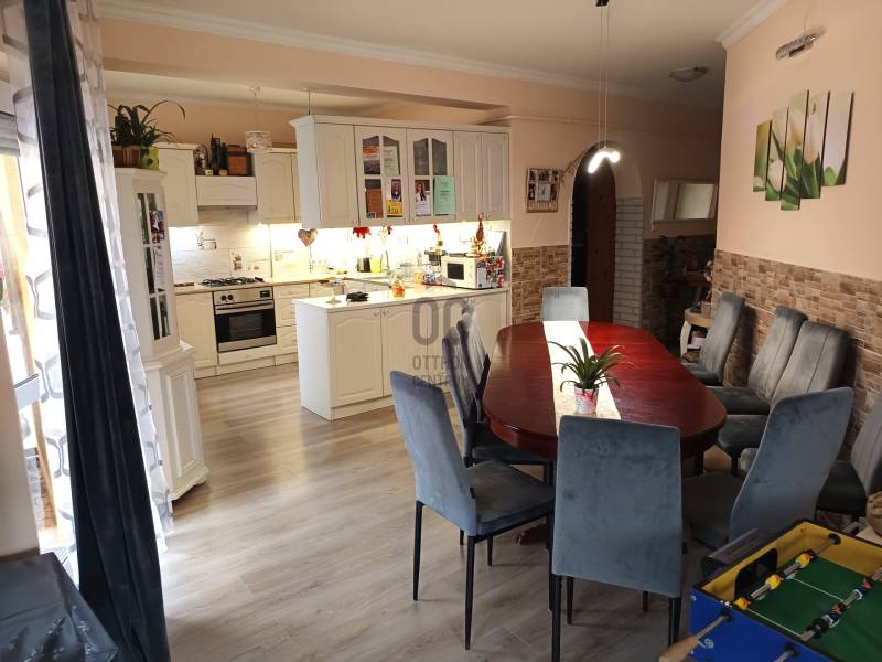 Ha olyan otthont keres, ahol a család minden tagja megtalálja a kényelmét, ahol a nyugalom és a praktikum egyszerre van jelen, akkor érdemes megismernie ezt a lehetőséget. A csendes kertvárosi környezetben, mégis a Lencztelep központjában található családi ház 2004-ben épült, bruttó 168 m²-es, nappalival, amerikai konyhával és négy külön nyíló szobával, amely tágas tereivel és átgondolt elrendezésével minden igényt kielégít. A házban két fürdőszoba, külön WC, háztartási helyiség és spájz szolgálja a mindennapi kényelmet, a fűtésről kondenzációs gázcirkó, padlófűtés, radiátorok és egy hangulatos cserépkályha gondoskodik, míg a műanyag nyílászárók, a hőszigetelt födém és a gondosan megépített falazat energiatakarékossá teszik az ingatlant. A garázsból közvetlenül a padlásfeljáró nyílik, emellett az udvarban további három autó kényelmes parkolása is biztosított.A 550 m²-es, gondosan parkosított telek igazi ékszerdoboz: a fedett teraszok, a beépített filagória, a bográcsozó és a kerti zuhanyzó tökéletes helyszínt kínálnak a családi és baráti összejövetelekhez, a saját gépészettel szerelt, fedhető 3x7 méteres medence pedig a nyári kikapcsolódás elengedhetetlen része. Az udvar műfűvel és térkővel borított, beépített tárolókkal praktikus megoldásokat nyújt, az automata öntözőrendszer pedig a virágok, évelő növények, vetemény és a termő barackfák gondozását könnyíti meg.Az elhelyezkedés szempontjából is ideális választás: mindössze néhány perc sétára található pékség, ABC, buszmegálló, iskola és játszótér, a közeli SZUSZ-park és a kerekestelepi fürdő pedig nagyszerű lehetőséget kínál a közös szabadidős programokhoz.Ez a ház azoknak a családoknak nyújt tökéletes otthont, akik a tágas, világos belső terek mellett értékelik a nyugodt környezetet, a modern kényelmet és a gondozott, élményekkel teli kert adta életérzést. Ne hagyja ki ezt a ritka lehetőséget, hiszen ez az ingatlan mindent megad, amire egy család hosszú távon vágyhat. |