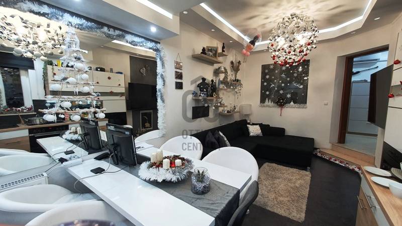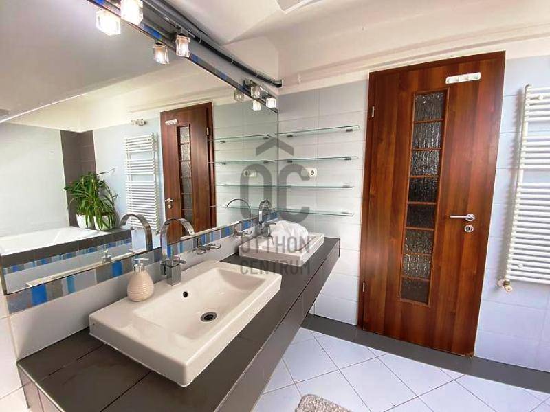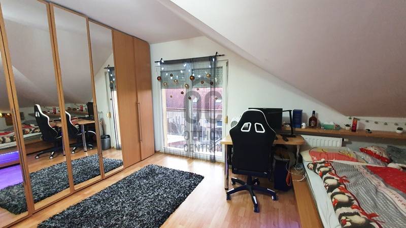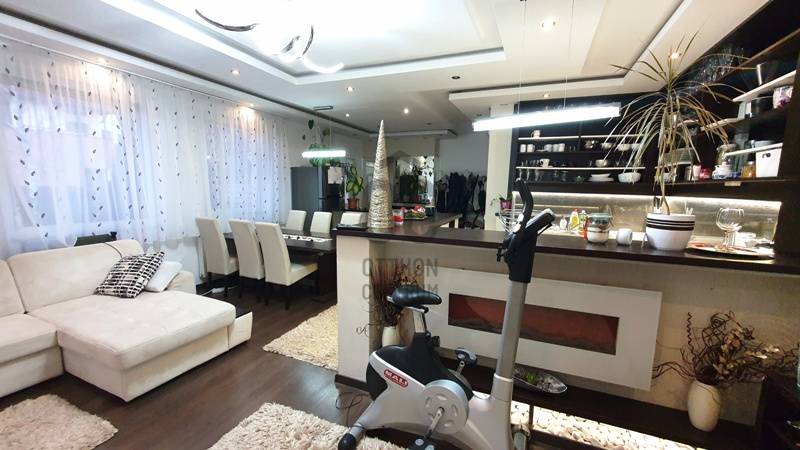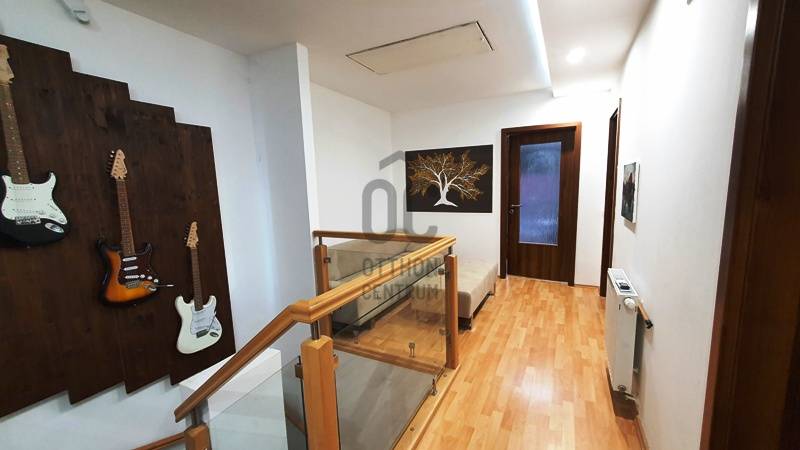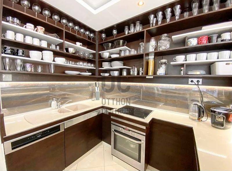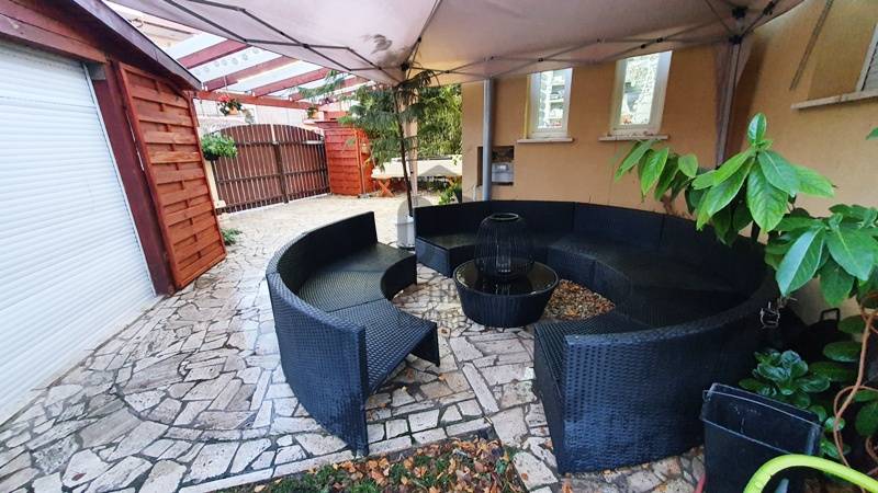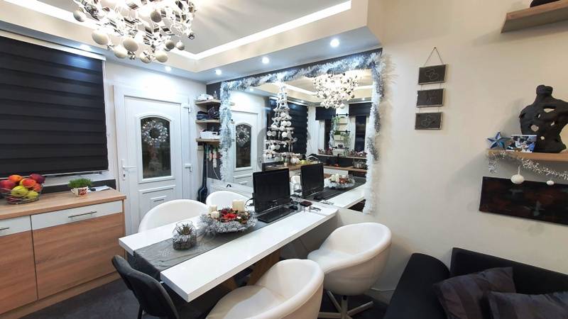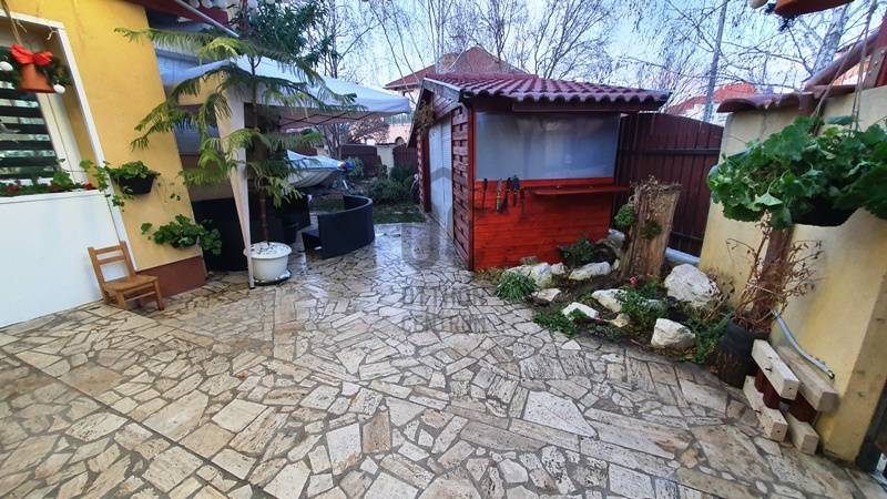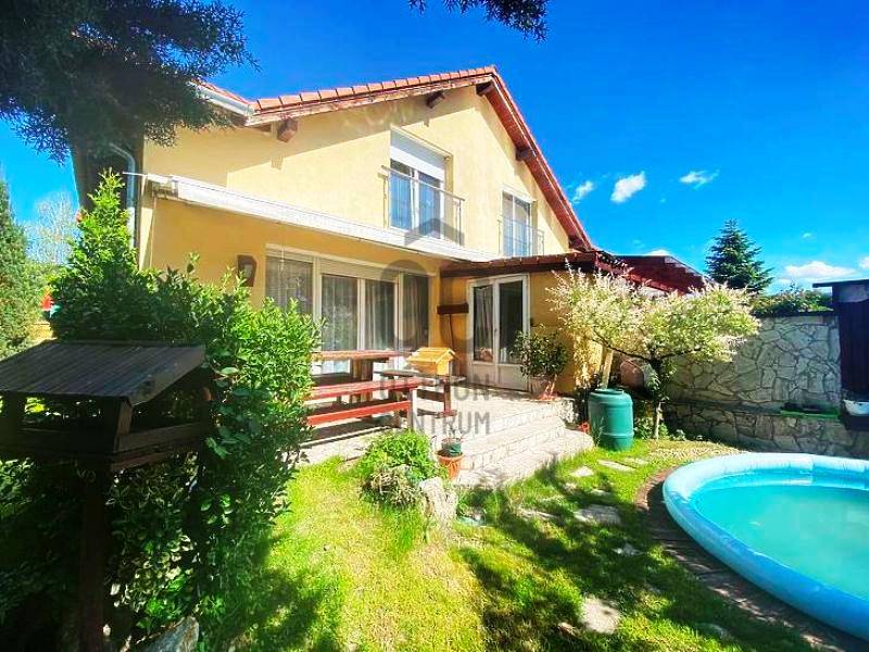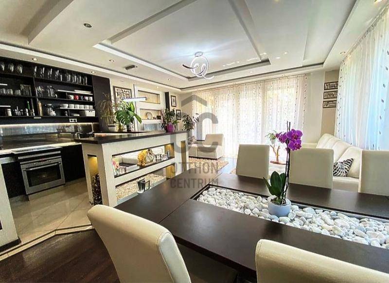 Dunakeszi Duna-parthoz és a központhoz közeli, mégis csendes, forgalomtól mentes utcájában, 2 generációs (és akár 3 generációssá alakítható!), kitűnő állapotú, modern, stílusos, sok extrával felszerelt ikerház fél eladó.A ház 380 m2-es telken áll, jelenleg 2 lakrészből áll, összesen bruttó 165 m2, 6 szobával, dupla komforttal és egy 17 m2-es fedett terasszal rendelkezik. Világos, kellemes, otthonos, élhető terei úgy kapcsolódnak, hogy akár egy harmadik generáció szeparált lakhatása is kialakítható, vagy egy egyszerű összenyitással egy nagy családi házzá (vissza)alakítható. A ház 2006-ban épült, 38-as Porotherm téglából, és 10 cm-es dryvit, szigetelést kapott, Bramac cseréppel fedett, hő és hangszigetelt nyílászárókkal, redőnyökkel és szúnyoghálóval felszerelt. Klimatizálás, riasztó és elektromos kandalló is van.A padlástérben egy 30 m2-es rész még szabadon alakítható.Téli teljes rezsiköltsége 46 000 Ft.A kert parkosított, öntözőrendszerrel ellátott. Itt kapott helyet egy medence és van továbbá egy kerti tó, és egy fúrt kút is, valamint egy 6 és egy 12 m2-es tároló.Jelenleg 2 db autóbeállási lehetőség van, egy fedett és egy fedetlen. (A 2 generációssá alakításkor a garázsból lakrész lett, amit egy egyesítés után vissza lehet állítani.Közlekedése, ellátottsága kiváló, tanintézmények, vásárlási lehetőségek és szolgáltatások, a Duna-part, buszmegálló percek alatt elérhető.Az összes beépített bútor és egyéb berendezés a vételár részét képezi, a többi bútor megegyezés tárgya lehet.Kérdéseivel keressen bizalommal akár hétvégén is! Időpont egyeztetés legalább az előző napon szükséges. |
