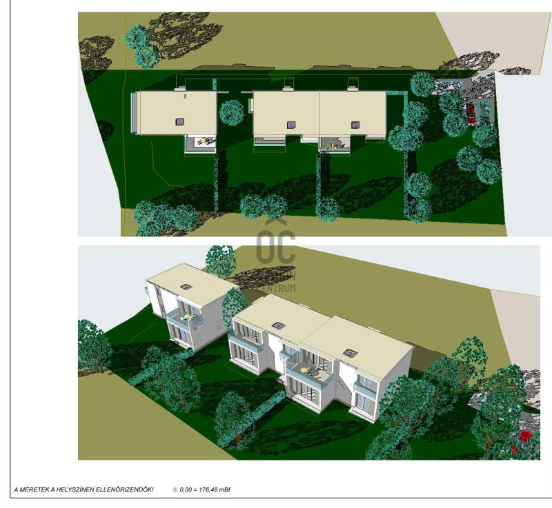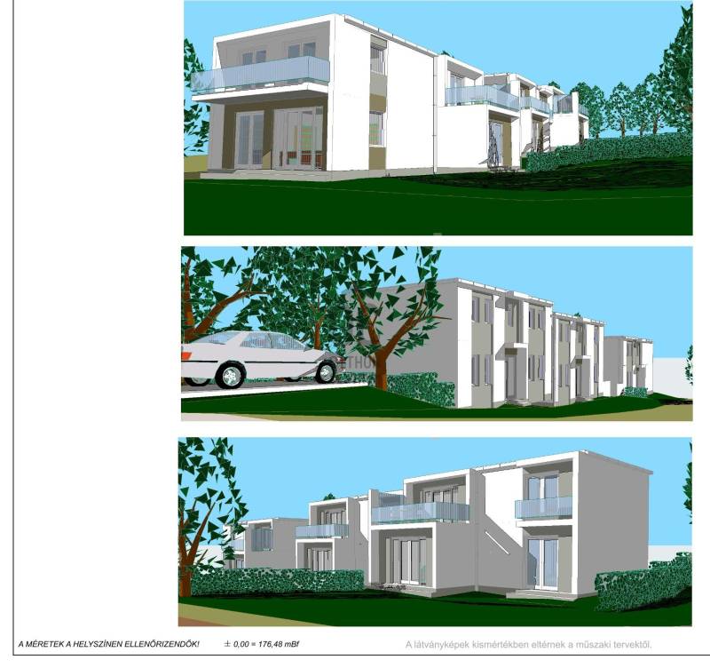 A telken két épület található, egy önálló és egy ikerház. Ez a lakás az ikerház nagyobb területű tagja.Mindegyik lakás önálló bejárattal, és kerthasználattal rendelkezik.Ingatlanonként 1-1 udvari beálló biztosított.Csendes kertvárosi övezetben, belvároshoz közel fekszik, buszjárattal is megközelíthető.Földszinti helyiségek:NappaliKonyhaSzobaFürdőWCLépcsőtérElőszobaEmeleti helyiségek:3 szobaFürdőWCLépcsőtérGépészeti helyiségTeraszMűszaki tartalom:- a homlokzat hőszigetelt, divatos szürkével tört fehér színű. A födémlemezeken 2cm-es lépéshangszigetelő van elhelyezve.- a hidegpadló ragasztott kerámia lapburkolat, egyéb helyiségekben laminált parketta. A teraszok kültéri csúszásgátló és fagyálló kerámia burkolatot kapnak. -a vizes helyiségek mennyezetig csempézettek-falazat: teherhordó falak 30cm és 25cm, válaszfalak 10 cm vastagságú Porotherm.-lapostetőn a megújuló energia kialakítása előkészítve.-egyedi hőszivattyú hűtés-fűtés, hőleadó padló-és falfűtés, kiegészítő alacsony hőmérsékletű radiátorokkal, forró víz tároló puffer.-nyílászárók fokozottan hőszigetelt 3 rétegű üvegezés.-utcai kapu távvezérlővel használható.-gépkocsi beálló, és a járdák beton térkővel kialakítottak.Kedves Érdeklődő!Ha megtekintené a lakást, vagy kérdése van, hívjon bizalommal. |
