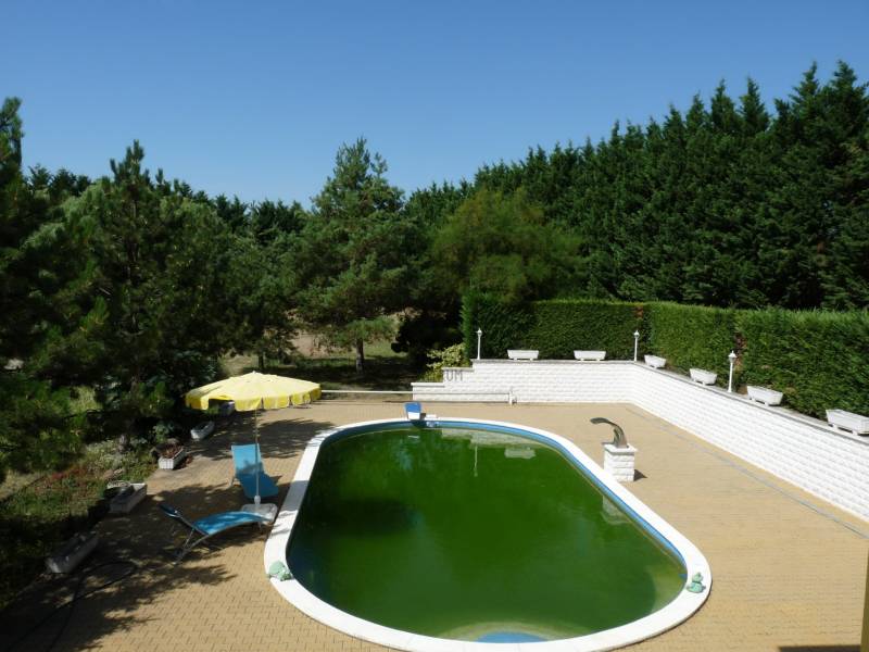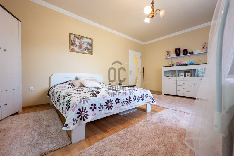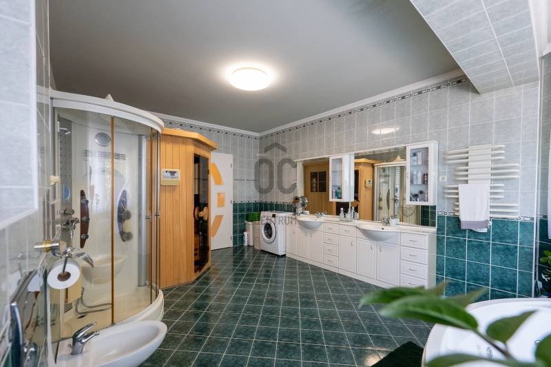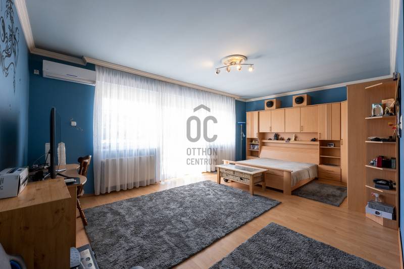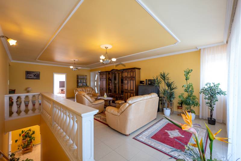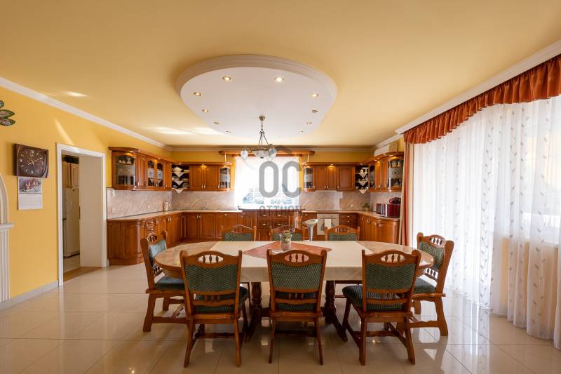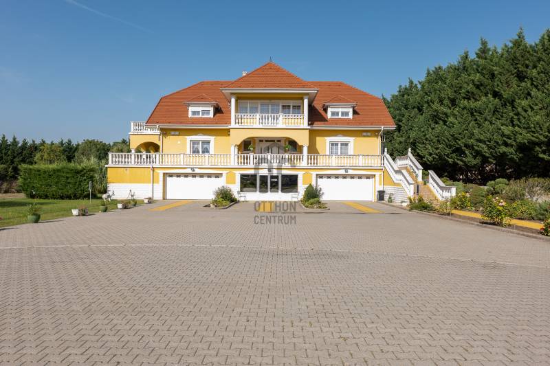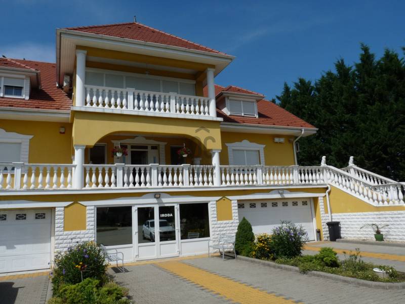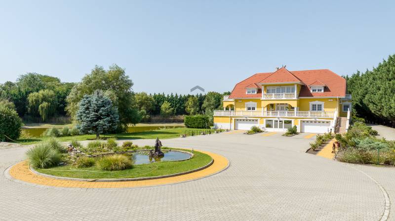 Az ingatlan 2004-ben ytong téglából épült, nettó 680 m2-es, bruttó 845 m2. A telek mérete 18441 m2 nagyságú. A ház 2 nappalival és 8 lakószobával rendelkezik, tartozik hozzá egy kb. 8000 m2-es saját halas tó, hatalmas térkövezett parkoló, és medence.Pazar teraszok és erkélyek, összesen kb. 160 m2-en!Az épület 3 szinten helyezkedik el.A pince szint 290 m2 nagyságú, 3 külön bejáratú garázs (kb. 12 gépjármű parkolása oldható meg itt) és két tároló helységekből áll.Földszinten (235 m2 nagyságú) nappali, hall, 2 nagy szoba, konyha-étkező, kamra, fürdőszoba (szaunával), közlekedő, mosdó és gardrób található valamint az emeleten (155 m2 nagyságú) nappali és hat szoba, fürdőszoba, és gardrób.Fűtése, gázkazánról, radiátorokkal és a hideg burkolatos helységekben padlófűtéssel, illetve a nappaliban elhelyezett fatüzelésű kandallóval biztosítható, hűtése 6 db klímaberendezéssel.Az udvar térkővel és murvával borított részén kb. 60 gépjármű parkolása megoldható.A családi ház funkcióján kívül, az ingatlan adottságait, belső elrendezését figyelembe véve, alkalmas lehet kis, vagy közepes ügyfél forgalommal rendelkező cégek, intézmények székházának is.Kivételes adottságú ingatlan, további információért kérem keressen! |