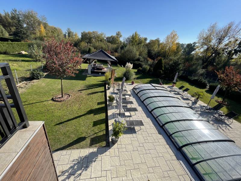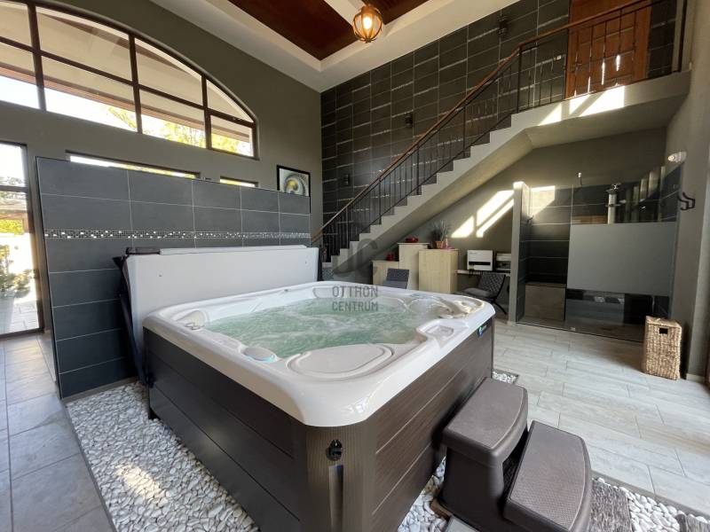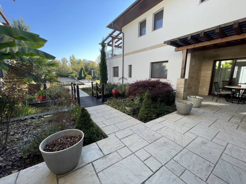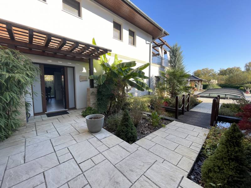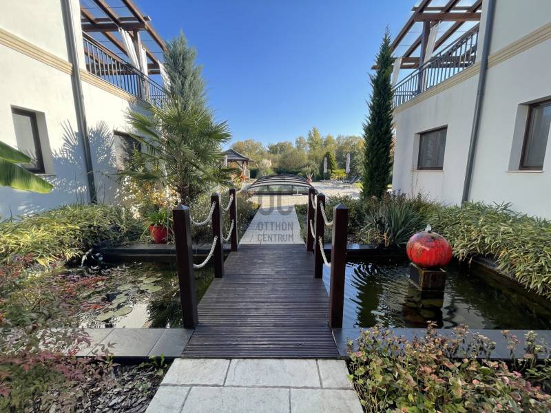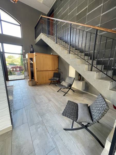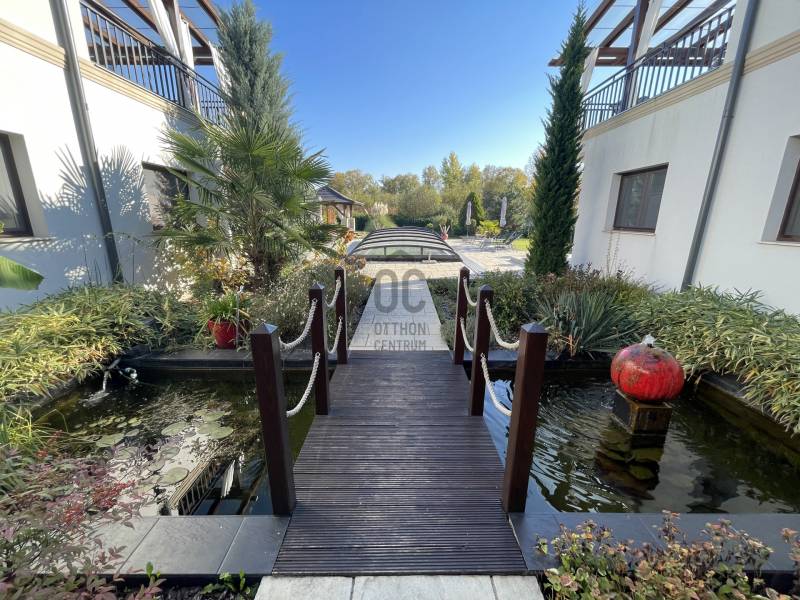 A BALATON ÉSZAKI PARTJÁN, KESZTHELY SZOMSZÉDSÁGÁBAN, GYENESDIÁS CSENDES ZSÁKUTCÁJÁNAK VÉGÉN, IGÉNYES ANYAGOKBÓL, IGÉNYES KIVITELEZÉSSEL, EXCLUSÍV, NAGYMÉRETŰ, TÖBBGENERÁCIÓS, ÚJ ÉPÍTÉSŰ CSALÁDI HÁZ, ELADÓ!A két részre tagolt épületet egy 80 nm-es wellness helyiség köti össze, ahol egy 6 személyes jakuzzi és egy szauna kapott helyet. Két oldalról lépcső köti össze a lakások bejáratával. A lépcső alatt zuhanyzó került kiépÍtésre. A két lakás alatt, két háromszobás apartman a vendégek elhelyezését biztosÍtja. Ezáltal a négy lakóegység, nÍvós szálláshelyként üzleti tevékenységre is alkalmas. Belső kertje egzotikus növényekkel, kis hÍdjával a kerti tó felett, főleg az esti kivilágÍtás alkalmával, különleges hangulatot teremt lakóinak.Kertjében medence, kerti napozóval, fedett kiülő a közös beszélgetésekhez, igazi kikapcsolódás lehetőségét rejti magában.Az épület teljes közművel rendelkezik. Fűtése hőszvattyú és napelem segÍtségével, padlófűtéssel történik. A terület a mellette lévő üres, 800nm-es területtel tovább bővÍthető és Így a két épületrész megoszthatóvá válik.KOMOLY VÉTELI SZÁNDÉK ESETÉN VÁRJA JELENTKEZÉSÉT AZ ORSZÁG LEGNAGYOBB ÉS LEGELISMERTEBB INGATLANKÖZVETÍTŐI HÁLÓZATA. |