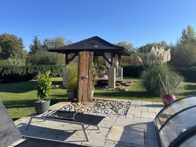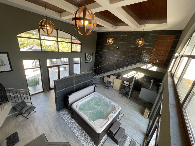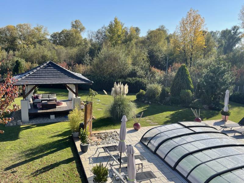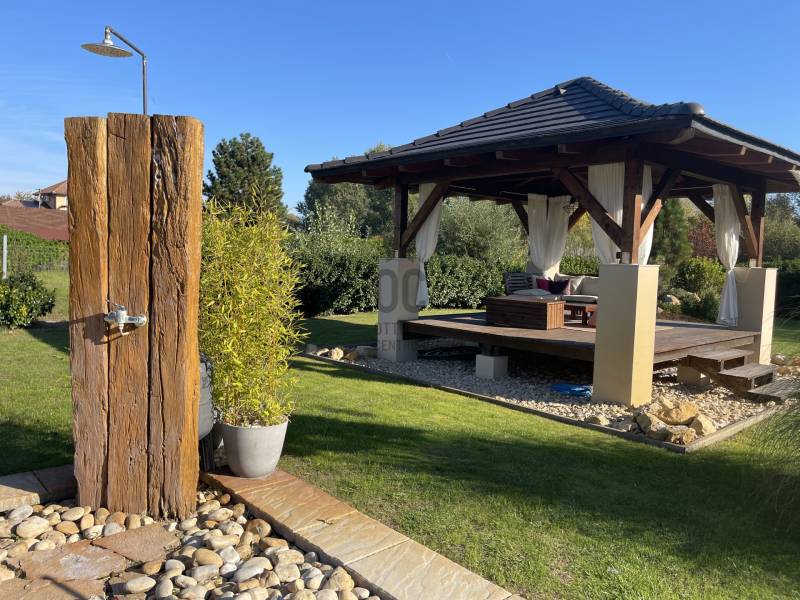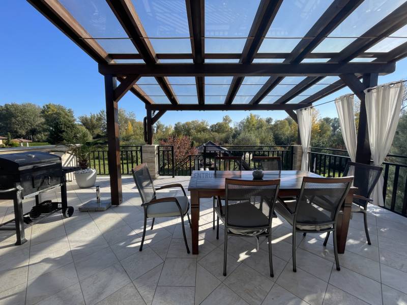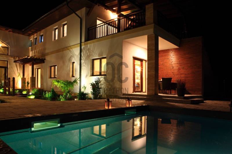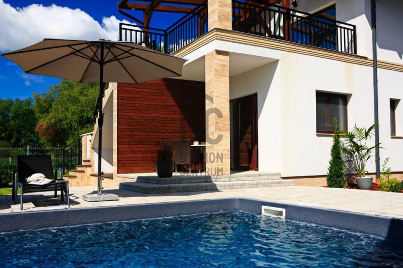 A BALATON ÉSZAKI PARTJÁN, KESZTHELY SZOMSZÉDSÁGÁBAN, GYENESDIÁS CSENDES ZSÁKUTCÁJÁNAK VÉGÉN, IGÉNYES ANYAGOKBÓL, IGÉNYES KIVITELEZÉSSEL, EXCLUSÍV, NAGYMÉRETŰ, TÖBBGENERÁCIÓS, ÚJ ÉPÍTÉSŰ CSALÁDI HÁZ, ELADÓ!A két részre tagolt épületet egy 80 nm-es wellness helyiség köti össze, ahol egy 6 személyes jakuzzi és egy szauna kapott helyet. Két oldalról lépcső köti össze a lakások bejáratával. A lépcső alatt zuhanyzó került kiépÍtésre. A két lakás alatt, két háromszobás apartman a vendégek elhelyezését biztosÍtja. Ezáltal a négy lakóegység, nÍvós szálláshelyként üzleti tevékenységre is alkalmas. Belső kertje egzotikus növényekkel, kis hÍdjával a kerti tó felett, főleg az esti kivilágÍtás alkalmával, különleges hangulatot teremt lakóinak.Kertjében medence, kerti napozóval, fedett kiülő a közös beszélgetésekhez, igazi kikapcsolódás lehetőségét rejti magában.Az épület teljes közművel rendelkezik. Fűtése hőszvattyú és napelem segÍtségével, padlófűtéssel történik. A terület a mellette lévő üres, 800nm-es területtel tovább bővÍthető és Így a két épületrész megoszthatóvá válik.KOMOLY VÉTELI SZÁNDÉK ESETÉN VÁRJA JELENTKEZÉSÉT AZ ORSZÁG LEGNAGYOBB ÉS LEGELISMERTEBB INGATLANKÖZVETÍTŐI HÁLÓZATA. |