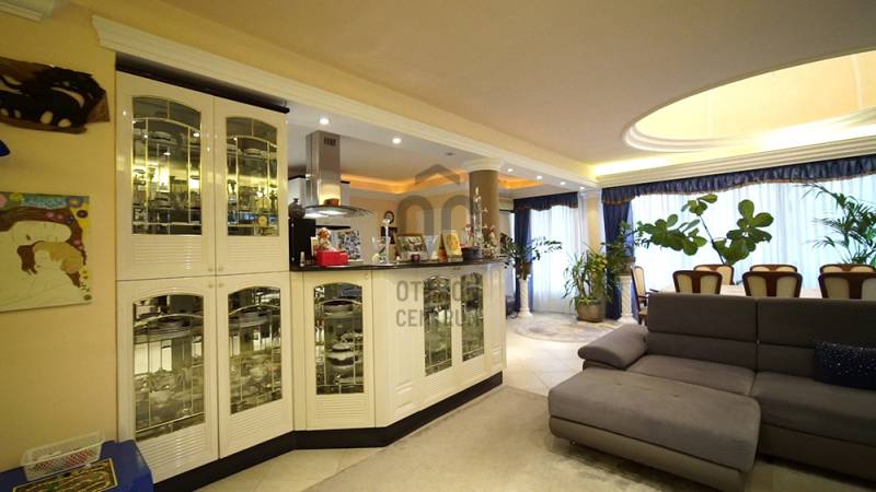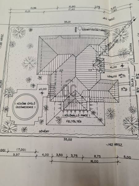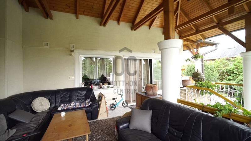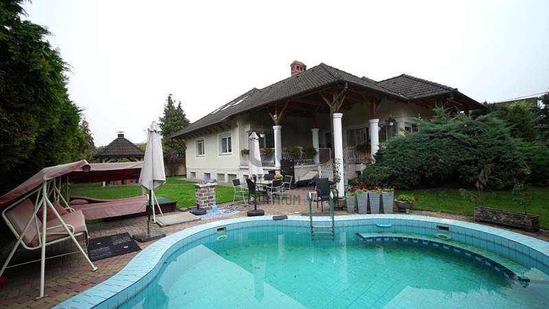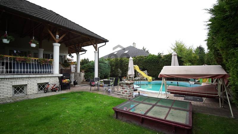 Árpádföldön az újépítésű villák és házak szomszédságában, széles betonútról megközelíthető négyzet alakú telken található ez a 20 éve megépített kiváló szigetelésű és elrendezésű, tágas terekkel büszkélkedő 3 szintes családiház. A füvesített kertben világos és fűszer ágyások illatoznak, és egy épített, csempézett medence büszkélkedik pihenővel. A parkolási lehetőség 4 autó számára biztosított (van 2 garázs és 2 kültéri beálló).A szuterén szinten raktár, iroda, hűtőkamrák, két ipari konyha és élelmiszer előkészítők lettek kialakítva, de ide került a kazánház és a szauna is zuhanyzóval + wc-vel, és, hogy a munka utáni lazulás teljesebb legyen a szuterén alatt van egy borospice is.A magasföldszinten az előtérbe lépve elénk tárul a kupolás nappali-étkező-konyha fedett teraszokkal körbe ölelve, ami nyáron plusz nappalinak minősül. A lépcsőház mellett található a vendégszoba fürdővel és wc-vel, majd innen tovább haladva eljutunk a ház privát szférájába, mely 2 halóból, gardróbszobából, fürdőszobából es egy háztartási helységből áll.Az emeleten egy különálló lakás került kialakításra hatalmas, 40 m2-es szobával, fürdőszobával, wc-vel, gardróbbal, konyha-étkezővel és egy szabadon alakítható padlástér résszel. Műszaki állapot: a jól működő gázkazán az energiatakarékosság végett korszerűsítésre szorul. A ház központi részében, a nappaliban lévő márvány kandalló azonban alkalmas a két felső helység befűtésére - a jelenlegi tulajdonos is így oldja meg a ház fűtését. A légkondicionáló hűtésre igen, de fűtésre nem alkalmas. A medence keringgető szivattyújának cseréje idén megtörtént, a fűtése pedig a kazánnal lehetséges. A ház gyönyörűen parkosított és 20 éves tuja fenyőkkel van körbe ültetve. A gondozott kert és fűszerkert fenntartására öntöző rendszer lett kiépítve.A nappalik, közlekedők, fürdőszobák, az üzleti helység és teraszok járólappal lettek burkolva, a hálószobák pedig padlószőnyeggel. A burkolatok, a konyhabútor és annak berendezése teljesen rendben van, használható.Megközelítés: autóval, busszal, hévvel (300-400 m-re van a buszmegálló, a hév 1,2 km-re). Ajánlom két generációnak, nagy családnak tini gyerekkel, vagy olyan vállalkozónak, aki a cégét is itt szeretné elhelyezni. (Önálló cég központ irodái és raktárai kialakítására is van lehetőség.)Rengeteg fantázia és lehetőség rejlik ebben a házban, melynek elrendezése teljesen megfelel a mai igényeknek. Egy kisebb esztétika felújítással boldog új tulajdonosa lehet.A tulajdonos kedves, korrekt és rugalmas. Mivel a cég áttelepítése időigényes a szuterént szívesen visszabérelné a szükséges időre. További információval kapcsolatban, és a megtekintési időpont egyeztetése céljából keressenek bizalommal! |