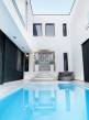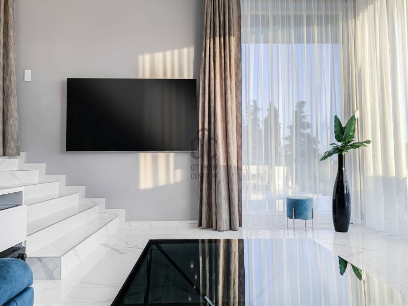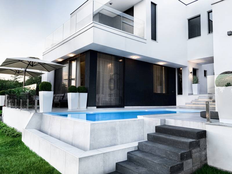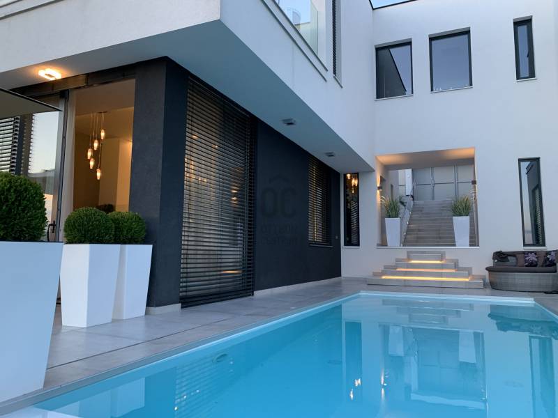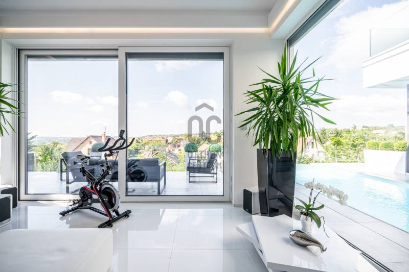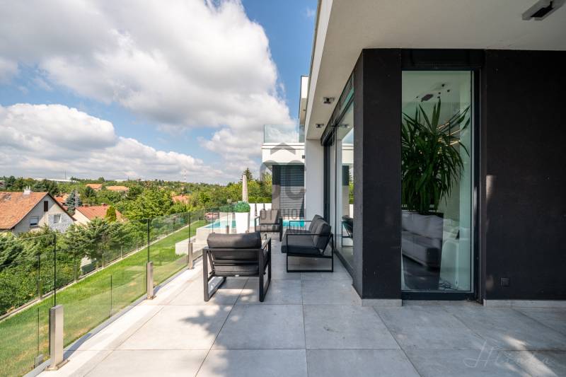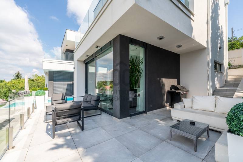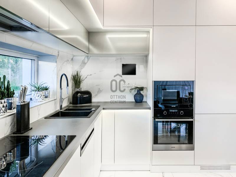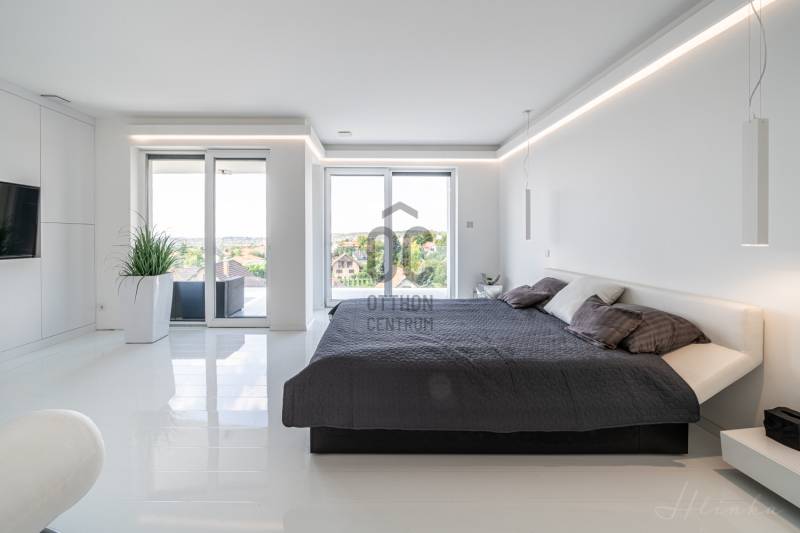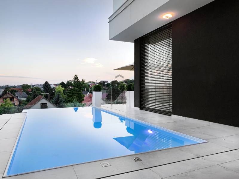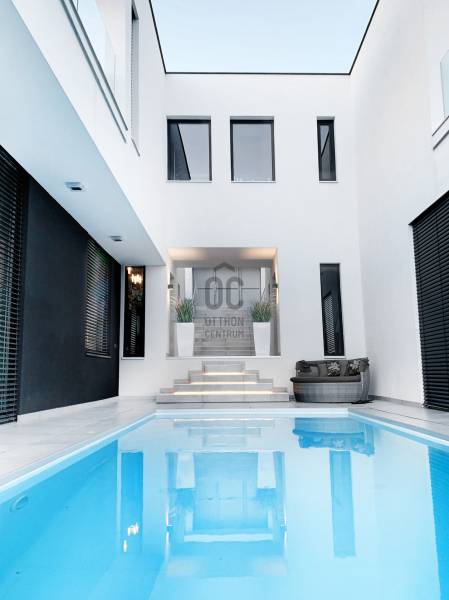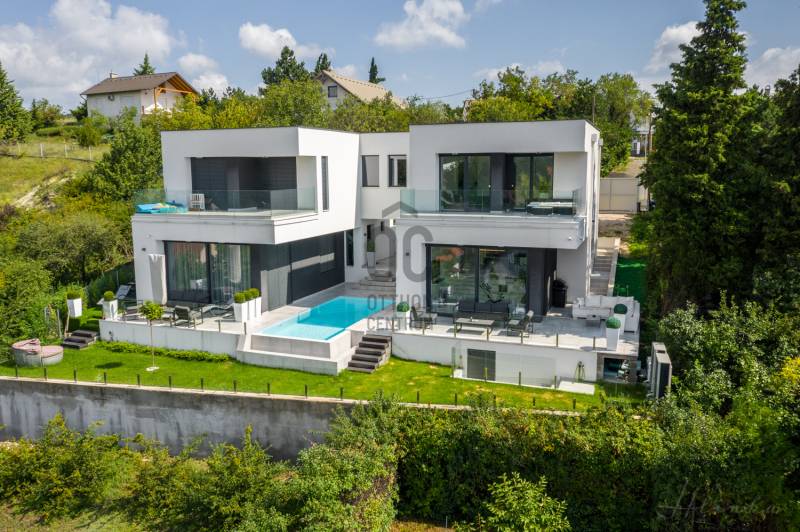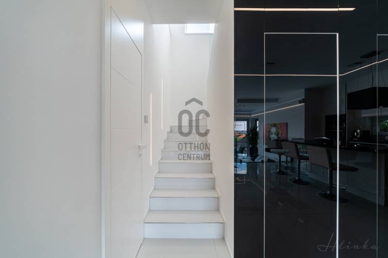 Diósd egyik legszebb ÖRÖKPANORÁMÁS részén ELADÓ: -egy teljesen újépítésű (2019) Déli fekvésű- 240m2-es -Infinity medencés, -minimál stílusú Luxus KÉTLAKÁSOS családi ház-95 m2 terasszal!!Kiváló CSENDES, NYUGODT zöldövezeti környezetben. SAJÁT LAKÁS céljára épült 2 szintes, 2 külön bejáratú, családi ház.Az ingatlan zsákutcában található, szomszéd csak 1 oldalról határolja, aszfaltos úton lehet megközelíteni.A ház 2019-ben került átadásra.- Legkorszerűbb fűtés-hűtési technológiával - legmagasabb minőségű anyagokból- saját lakás céljára készült.- 7 szoba-2 nappali-2 konyha-földszinten 4 mosdó zuhanyzóval -2 masterbedroomhoz 2 fürdőszoba található az ingatlanban. A ház déli fekvése miatt egész nap napfényesek a szobák7*3 méteres automata INFINITY medence, ÉLMÉNY elemekkel. Derékmasszírozó ,RGB ledes vízalatti világítás, inverteres, hőszivattyús fűtés technikával.- LOXONE teljes körű épületautomatika rendszer (világítás, fűtés-hűtés, árnyékolás vezérlés, riasztórendszer vezérlés, mozgásérzékelők) került telepítésre a házban, melyeket távolról is, mobiltelefonnal, vagy a házban telepített egyedi, 5 funkciós LOXONE kapcsolókkal lehet vezérelni.-Egyedi tervezésű LED világítási rendszer került telepítve az egész épületben.-Legmagasabb minőségű, szintén egyedi tervezésű beltéri ajtók és lacobel üvegfal.-Kiemelkedő minőségű-kategóriájú konyhabútor, Technistone konyhapulttal.- A lakás LUXUS kivitelezésű, a legkorszerűbb, kizárólag korszerű építési anyagok, kimagasló minőségű, modern burkolatok (hideg- meleg burkolat, csempe, járólap, parketta 20.000 Ft átlag m2 ár) kerültek felhasználásra.- A legkorszerűbb HŐLÉGSZIVATTYÚS fűtés / hűtés. Mennyezetben és padlóban egyaránt.- BWT vízlágyító rendszer az egész házban. - Helios autómata szellőztető rendszer. Friss levegőt áramoltat a házba és megszűri a beáramló port és pollent. Ennek köszönhetően ablak nyitás nélkül is mindig friss levegő van a házban.- Zsaluzia, szobánkénti vezérlés LOXONE rendszerről, illetve LOXONE kapcsolókról.- Minden szobában rejtett tv és internet kimenet a falban.- Kamerás kapunyitó rendszer.- Biztonsági törhetetlen ablakok, extra nagy, aluminium nyílászárók-Elektromos kapuval- Riasztórendszer - A++ gépeknek köszönhetően és az inverteres fűtés miatt a rezsiköltsége rendkívül alacsony a háznak.- gyepszőnyeg és dísznövényzet, automata öntözőrendszer.Budapest belvárosa 20 perc alatt elérhető autóval. |