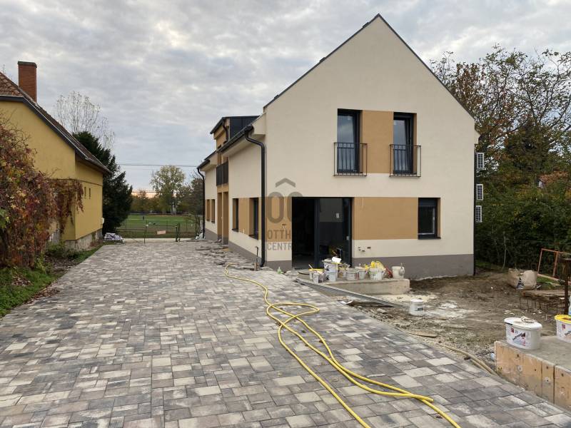 Állandó otthonnak, nyaralónak, befektetésnek egyaránt alkalmas ez a 4 lakásos társasház.A 904 nm-es telken 4db lakás (88,23-100,66nm) került kialakításra a legkorszerűbb technikával.Mindegyik saját terasszal (6nm), privát kert résszel (200nm), nyitott autóbeállóval rendelkezik.Műszaki leírás:-Az épület alapozása gyengén vasalt monolit vasbeton gerendarács sávalapokkal történt.-A külső teherhordó falszerkezetek és a belső teherhordó illetve nem teherhordó válaszfalak is Horizont vékony falú acél vázszerkezetű szerelt falak.-A vázszerkezet bordái között 14cm szálas hőszigetelés kerül elhelyezésre, erre 8 cm vastag Dryvit hőszigetelő lemez került.-A padlószerkezetben 15cm expandált polisztirolhab, a tetőszerkezetben 25 cm szálas ásványgyapot réteg biztosítja a megfelelő hőszigetelést.-A lábazati részen 8 cm szigetelés készült.-Az alapvető közművek (víz, villany, csatorna) ellátása az utcai hálózatról történik, a közművek biztosítottak.-Az épület fűtési energiaellátását elektromos üzemű levegős hőszivattyúval biztosítjuk szekunder oldalon padlófűtési körök kialakításával.Az épület beosztása:Földszinten található egy előszoba, nappali-étkező, konyha, fürdőszoba, kamra.Tetőtérben 3 db hálószoba, fürdőszoba, közlekedő helyiség került kialakításra.Ajándék konyhabútor a 2025. június 30-ig megkötött adásvételi szerződés esetén!A feltüntetett ár 5% ÁFÁ-t tartalmaz!CSOK igényelhető! |