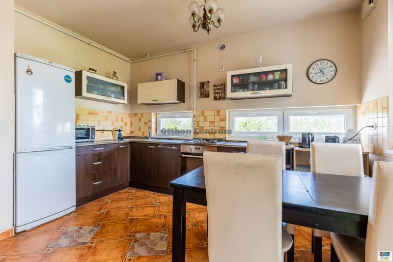 DUNAKESZI A VÁROS, ahol JÓ LAKNI, JÓ FELNŐNI....--------------Nappali + 3 hálószoba + 2 fürdőszoba, KERTKAPCSOLATTAL-----------------------Dunakeszi-Alsó egy családias, összetartó része Dunakeszinek. Amint átjövünk a Dunakeszit Káposztás-megyerrel összekötő alagúton, olyan érzésünk van, mintha egy másik világba csöppentünk volna bele. A betonrengeteget hirtelen felváltja a természet. Egészen magával ragadja az embert ahogy a fák zöld koronája köszönti a városba érkezőket és ha pár száz métert haladunk előre a Bánya tó nyugalmat sugárzó látványát is sikerül megpillantanunk.Alsón, ( a helyiek csak így nevezik...) nagyon bensőséges légkör uralkodik. Minden évben megrendezésre kerül az ALCSÓ fesztivál, lecsó főző verseny, hogy más is értse, ahol az alsón élők apraja nagyja egy családként vesz részt nagy boldogan. Mindenki ismeri egymást, a facebook csoportban aktívan osztják meg a tapasztalataikat a családok, a kertészkedésről, a gyereknevelésről, mit, hol érdemes vásárolni, és sok más hasznos információról. A város ezen a részén vált eladóvá, egy nettó 82 nm.-es 4 szoba kialakítású belső kétszintes sorház jellegű társasház lakás, saját önálló kert kapcsolattal.Az otthon főbb jellemzői:- 2008-ban épült 4 lakásos sorház szélső lakása- 30-as Leier téglából épült falazat, 7 cm. dryvit vakolattal szigetelt- Fűtése gáz cirkó fűtés, radiátoros hőleadással- Az alsó szinten amerikai konyha-nappali kialakítás, zuhanyzós fürdőszobával és kamrával, - A tetőtérben 3 db. hálószoba és egy sarokkádas fürdőszoba kapott helyet.- Minden szoba erkélykapcsolattal rendelkezik.- A nappaliból jutunk ki a 63 nm.-es kertbe és egy 8 nm.-es tágas teraszra.-Mivel a ház magasabban helyezkedik el az utcafrontnál, így semmilyen belátás nincs a kertre. -A fotókon jól látszik, hogy rengeteg ablak van, sőt a nappaliban a szokásostól eltérő francia ablakokon árad a fény, így kellő képen benapozott világos, minden napszakban, az ingatlan. +1 BÓNUSZ: Az ingatlanhoz tartozik, egy külön helyrajzi számon lévő 16 nm.-es önálló garázs. Ezt nem kötelező megvásárolni az ingatlanhoz, de a Tulajdonos fenntartja a lehetőséget annak, akié lesz az ingatlan, hogy megvásárolja a lakáshoz. A garázs értéke: 5.000.000 Ft. mely a vételáron felül értendő. Az ingatlan állapota JÓ állapotú, ami azt jelenti, hogy műszakilag tökéletesen rendben van, azonban igény szerint, esztétikailag elbír egy kis csinosítást. Véleményem szerint ez egy jól élhető, remek elosztású lakás, Dunakeszi egyik legkeresettebb helyén, melyben egy család kényelmesen, kompromisszummentesen és nyugalomban tud élni. Ha ilyet keres, akkor megtalálta!Az ingatlan hitelezhető, jogtiszta, tehermentes.Vannak még kérdései? Hívjon bizalommal!Várom megtisztelő hívását a hét minden napján! |