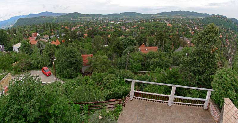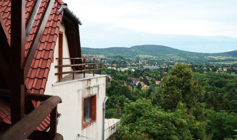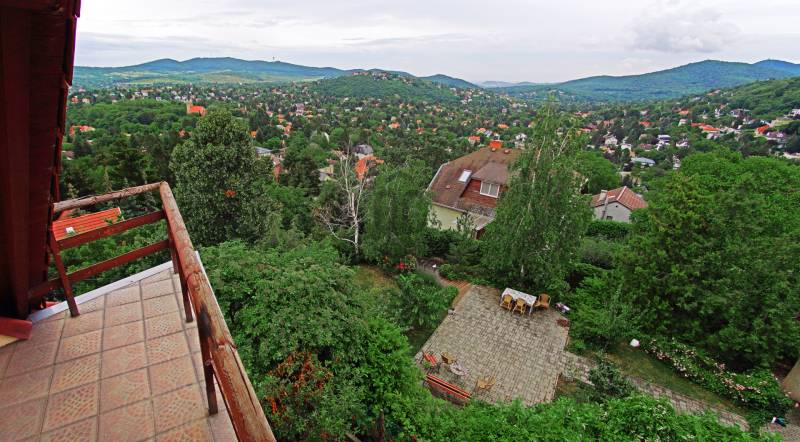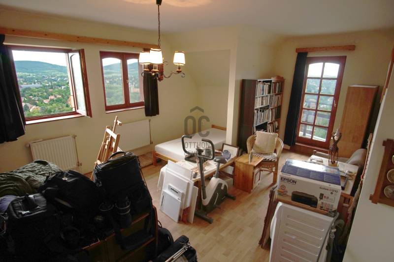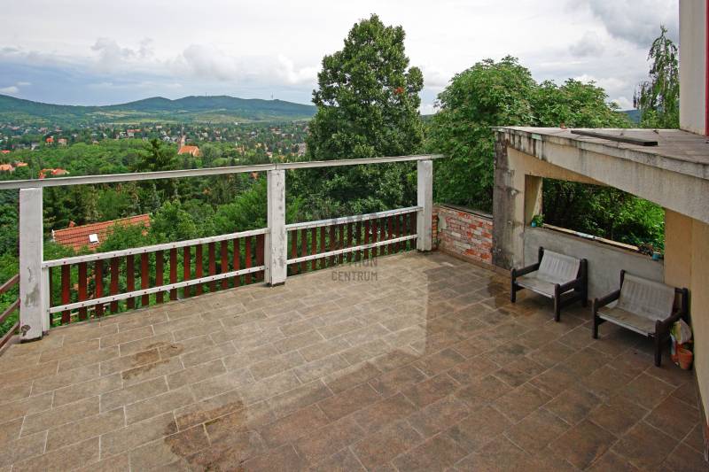 Örökpanorámás, négyszintes, kétlakásos családi ház a budai hegyekbenBudaliget forgalommentes, erdőbe vezető utcájában 392 m²-es (+ 43 m²-es garázs) családi ház eladó.A telek 804 m²-es.A napfényes ingatlan ablakaiból, teraszairól (3 db) és erkélyeiről (4 db) páratlan körpanoráma nyílik a Pilisre, Máriaremetére a templommal, délre a budai hegyeken át egészen a Várig és a Szabadság-szoborig, nyugat felé pedig Remete-szurdokra és a Budai Tájvédelmi Körzetre.A ház leírása:Az ingatlan 1998-ban épült 38 cm-es porotherm téglából, külső szigeteléssel. Minden közművel rendelkezik, fűtése gázkazánokkal történik. A két lakáshoz külön villany- és gázmérőóra van. A fűtés csőrendszere és a réz villanyvezetékek jó állapotúak.A garázs melletti kapun belépve lépcsőn mehetünk fel a kertbe, ahonnan a 88 m²-es pince/szuterén nyílik (félig a talajszint fölött, félig a föld alatt, ahogyan a hegy emelkedik).A következő szinten 2 vendégszobát találunk, előttük a 46 m²-es terasz. Ezen a szinten van még egy fürdőszoba, külön WC és egy gardrób/raktár.A következő szint az 1. lakás: nagy nappali, két dolgozószoba (az egyik a Remete-szurdokra néző terasszal, a másik a Pilisre néző erkéllyel), panorámás hálószoba, tágas kamra, panorámás konyha terasszal, fürdőszoba WC-vel, + egy külön WC. Belső lépcsőház visz fel a következő szintre, a tetőtéri második lakásba, mely 98 m²-es, összkomfortos, kétszobás. Itt található a panorámás, erkélyes hálószoba, valamint a panorámás, két erkélyes nappali, egy tágas kamra, konyha, fürdőszoba és WC. 1998 óta felújítás nem történt. Az 1. lakás belmagassága 2,95 méter, a 2. lakásé (tetőtér) 2,74 m.A környék infrastruktúrája az elmúlt években sokat fejlődött. 1 km-re található a Gyarmati Dezső Uszoda, mellette pedig egy teniszpályákkal, műfüves futballpályákkal, valamint kültéri kondiparkkal rendelkező sportközpont. Autóval 5–8 percre található Hűvösvölgy, ahol több bevásárlóközpont épült (Hüvi Szolgáltatóház, Stop Shop Bevásároló központ). A környéken több iskola is működik, közöttük a Gustave Eiffel francia nemzetközi iskola. Szintén a közelben található orvosi rendelő és számos további vásárlási lehetőség (pl. Széphalom Bevásárlóközpont, Lidl, Tesco).Az ingatlan tömegközlekedéssel (három busszal: 157/57/257-es) könnyen megközelíthető. A megállók kb. 6–12 perces sétára találhatók. Ezek a Hűvösvölgybe visznek, ahonnan pl. a Széll Kálmán tér vagy a Móricz Zsigmond körtér átszállás nélkül, gyorsan elérhető.Várom hívását hétvégén is! Amennyiben nem venném fel, ígérem, amint lehetőségem adódik visszahívom. |