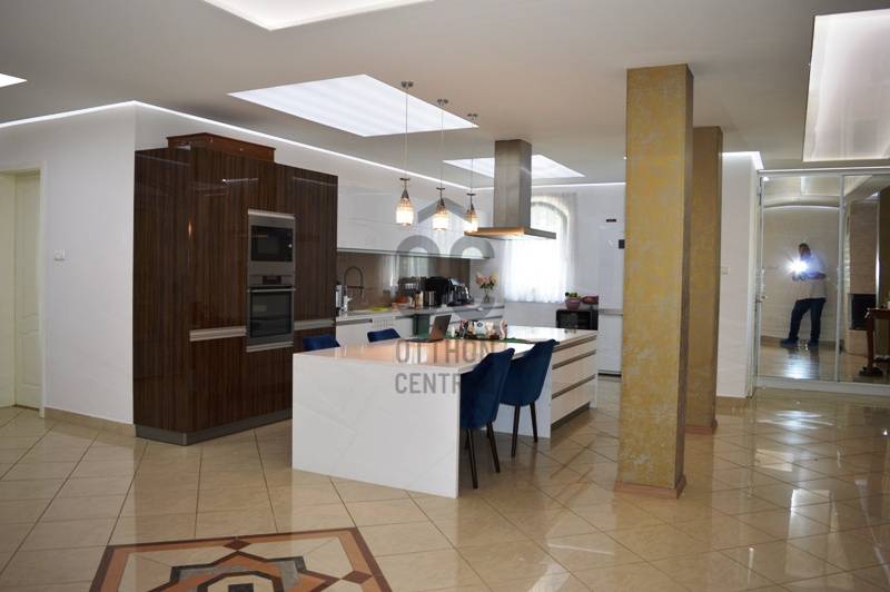 Alsó-Göd legszebb részén, szép villák ölelésében, a Dunától 2 percre eladó egy minden luxussal felszerelt családi ház.A teljesség igénye nélkül szemezgetve a listából:- nappali + 6 szoba (minden szobához saját fürdőszoba!)- 100 m2 medencetér (feszített víztükör) külön jakuzzival, szaunával, a galérián bárpulttal, biliárd asztallal- fűtött grillkonyha a nagy teraszhoz nagy, eltolható üvegajtóval kapcsolódva- borospince / buliszoba- télikert- a hőszivattyún túl gázcirkó, napkollektor + vegyes tüzelésű kazán, valamint kandalló a nappaliban- kút automata öntözőrendszerrel- két állásos garázs, automata garázskapu- modern konyhabútor gépészettel- egyedi fénytechnika és csillárok, világítótestek az egész házban.A ház 1995-ös építésű, 2014-ben teljes körű felújítás történt, majd a grillkonyha és a teljes kertfelújítás készült el 2018-ban, 2023-ban pedig napelemek kerültek a tetőre (amit szintén felújítottak előtte), a fűtésrendszer pedig kiegészült a hószivattyúval.A ház egy külföldi cég magyarországi rezidenciája, évente csak néhány alkalommal használják, tényleg nagyon megkímélt.További információk személyesen. |