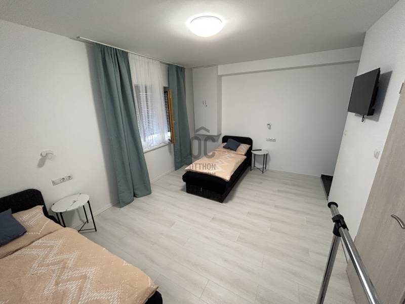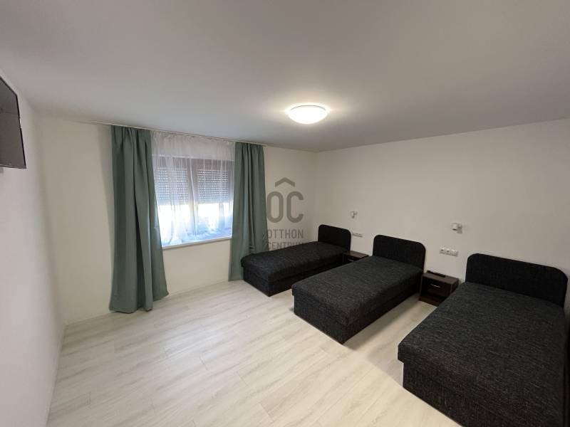 Abdai családi ház panzióval eladó!Tökéletes befektetési lehetőség több szempontból is! Amennyiben beköltözik a családi ház részébe, úgy a panzió folyamatos kiadásával passzív jövedelmet generálhat magának/családjának. Vagy, ha csak befektetési lehetőséget keres, akkor a jelenlegi családi ház részét is ki lehet adni az ingatlannak. Abda Győrtől mindössze 5 km-re található, akár esküvők utáni szállásnak is tökéletes a panzió része.Jelenleg a panziót egy hónapban 2-3 millió Ft hasznot is generál, számlával igazoltan!Paraméterek: 180 nm-es családi ház, 120 nm-es panzió. Telek mérete: 1218 nmTégla építésű, teljesen felújított ingatlan, külső szigetelése 15 cm vastag. A látható felújításokon kívül a víz és villanyvezetékek cseréje is megtörtént.Műanyag nyílászárók szúnyoghálóval és redőnnnyel felszereltek.A családi ház elosztása: nappali+konyha 3 különálló szobával, további 2 szoba kialakítására van lehetőség a tetőtérben. 2 fürdőszoba wc-vel, háztartási helyiség, előszoba.Panzió elosztása: 1 közös konyha, 4 szoba külön 4db fürdőszoba+wcvel. Összesen 9 ágyas, tehát 9 fő/nap.Mind a családi ház lakórésze, mind a panzió kiváló minőségi burkolatokkal lett felújítva, illetve a panzió minőségi ágyakkal lett felszerelve!Megtekintésért keressen bizalommal!Hitelre van szüksége??Az Otthon Centrum az ország egyik legnagyobb és legmegbízhatóbb hitelközvetítőjeként, teljes körű és díjmentes hitelügyintézéssel, biztosításkötéssel áll rendelkezésére!Kérje személyre szabott ajánlatunkat Kollégáinktól! |