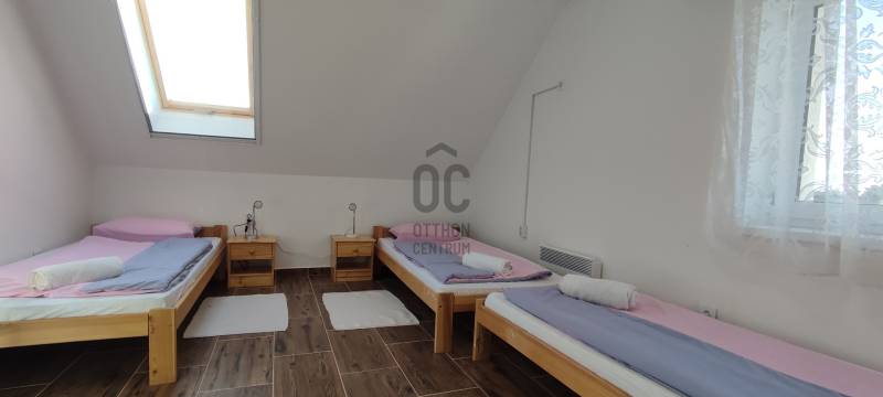 A ház tökéletes elhelyezkedése és minőségi kialakítása teszi figyelemreméltóvá a jelenlegi ingatlanpiacon. Nagy társaságok fogadására alkalmas, 3 szint áll rendelkezésre. A földszinten 2 nagy szoba + fürdőszoba, nagy konyhával és étkezővel. Az emeleten 3 szoba fürdőszobákkal. A legnagyobb közösségi teret pedig az egész ház alatti szuterén pincerész szolgáltatja, gyakorlatilag akár kispályás focitornát is lehet tartani :), annyira hatalmas a pince.Minden közmű bekötve, a gáz a telken belül, mivel a fűtést és a hűtést elektromos fűtőpanelek és klímák látják el. Az udvaron déli fekvésű 10 kW-os napelemrendszer került telepítésre. Ezzel azt érték el , hogy egy igazi \"passzív\" jellegű apartmanházat lehet üzemeltetni, természetesen éves szaldós elszámolással. Ennek a rendszernek a minimális éves termelése kb.: 13.000 kW.Ha valaki tovább szeretné építeni az álmát és a vendégek befogadószámát, jelzem közvetlen a szomszédban konyhával, jacuzzival és szaunával rendelkező 7 szobás, 17 személy elszállásolására alkalmas panzió is piacra került.Ha felkeltettem érdeklődését, vagy kérdése lenne az ingatlannal kapcsolatban, forduljon hozzánk bizalommal!Díjmentes jogi szolgáltatásokkal és ingyenes bank független hitelközvetítéssel állunk vevőink rendelkezésére!Hétvégén értékesítési ügyeletet tartunk! |