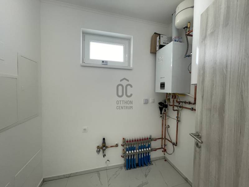 Kedves Érdeklődő !Ajánlom szíves figyelmébe ezt az új építésű, emberléptékű, minőségi családi házat.Modern forma, precíz kivitelezés, szép környezet,mindez Cserszegtomaj kedvelt utcájában található.Az utolsó burkolásokat és festést követően birtokba vehető.A kiváló ár- érték arányú otthon 3 hálószobából, nappali- étkező- konyhából, 2 fürdőszobából , háztartási helyiségből áll.Terasza déli tájolású, 20 m2 alapterületű.A hálószobák közül a szeparáltabb, nagyobbhoz saját fürdőszoba kapcsolódik. Ez olasz kerámia csempével burkolt.A nyílászárók 3 rétegűek, műanyagok, szúnyoghálóval és beépített redőnnyel felszereltek.Téli meleget a gáz kondenzációs kazán szolgáltatja. A nappaliban Leier kéményre kandalló csatlakozhat.Klíma hűt- fűt.Lábazat Leier rendszerű, vasalva, betonból készült.Külső falai 30 cm plusz 10 cm hőszigetelő rendszerrel. Födémre 30 cm kőzetgyapot , aljzatba 10 cm hőszigetelő került.Monolit vasbeton koszorú, Terrán Zenit grafit színű tetőcseréppel fedett.A kert 730 m2, ideális méretű.Minden további információért, helyszíni megtekintésért várom megkeresését. |