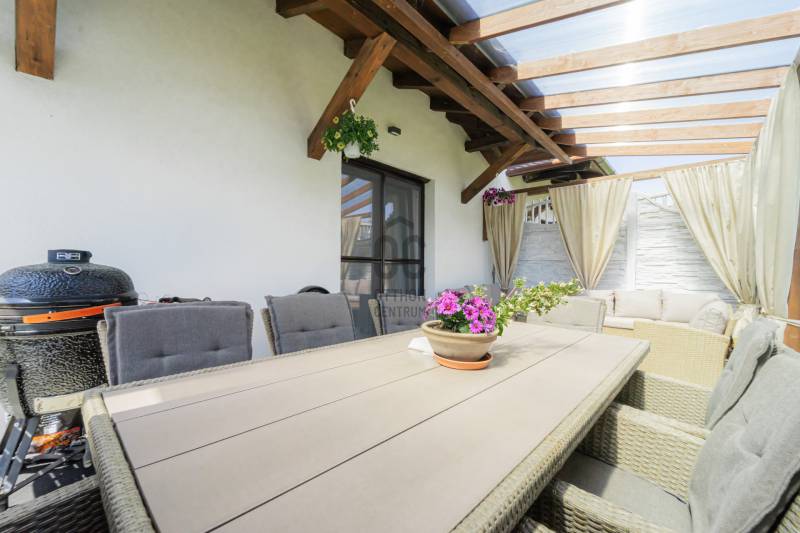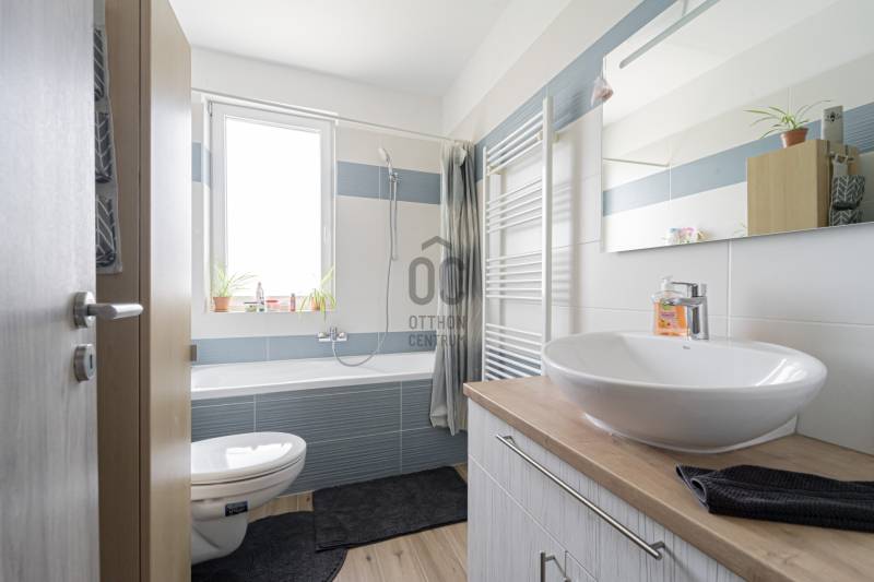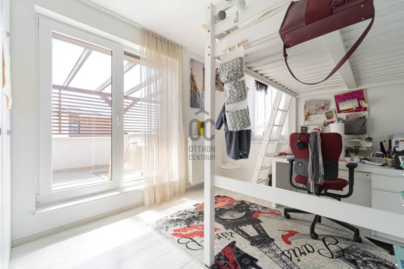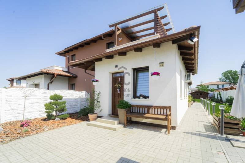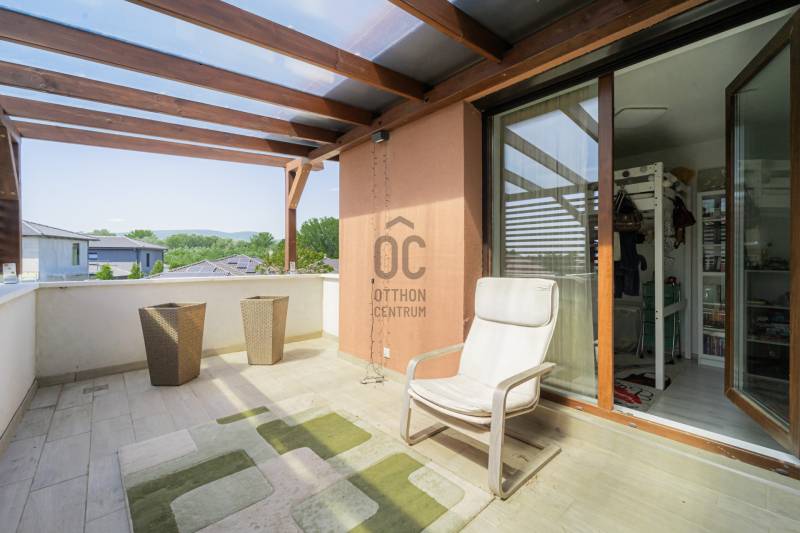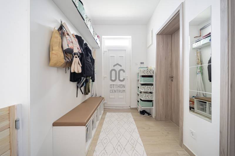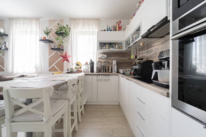 Különleges lehetőség várja Önt Göd és Sződliget között, a Dunához közel, egy 2022-ben épült, három gyermekes család igényeit tökéletesen kielégítő ikerház formájában. Ez a családias otthon 533 nm-es telken áll, és minden kényelmet megad, amit egy család csak kívánhat.A ház bruttó alapterülete 154 m2, melyben a nappali mellett négy hálószoba, két fürdőszoba, egy kamra, egy háztartási helyiség és egy üzlethelyiség található, ami könnyedén átalakítható akár egy további hálószobává is. A fedett terasz kiváló lehetőséget kínál a kikapcsolódásra, míg a szintén fedett emeleti teraszról a csodálatos kilátás nyílik a budai hegyekre.A gyepszőnyegezett kert közvetlen kapcsolatban áll az amerikai konyhás nappalival és a terasszal, ideális helyszínt teremtve családi összejövetelekhez és baráti grillezésekhez. A gondosan karbantartott kert saját fúrt kútból nyert vízzel működő automata öntöző és csepegtető rendszerrel rendelkezik, így mindig zöld és virágzó marad. A ház és a telek déli tájolású, így egész nap éri a nap.A kertben található egy 16 nm-es faház/tároló a kerti eszközök és felszerelések számára, valamint egy kisebb fa játszótér is, hogy a gyerekek teljes szabadságot élvezhessenek a játékban és a szórakozásban. Emellett a fedett kuka- és biciklitároló segítségével könnyedén rendezett marad az udvar és biztonságban tarthatók a kerékpárok.A földszinten padlófűtés, míg az emeleten radiátorok biztosítják a megfelelő hőmérsékletet, melyeket egy Bosch gázkazán táplál. Ezek két körön futnak, így a hőmérséklet külön szabályozható a földszinten és az emeleten. A légkondicionálás gondoskodik a kellemes hőmérsékletről, míg az automata alumínium redőnyök és szúnyoghálók az ablakokon és teraszajtón garantálják a nyugodt alvást és a zavartalan pihenést.A ház 30-as porotherm téglából épült 15 cm-es szigeteléssel, illetve a padláson extra üveggyapot lett fújva 25cm vastagon.Földszint:Amerikai konyhás nappali: 26 nmHálószoba: 11,4 nmÜzlethelység/vendégszoba: 13,7 nmFürdőszoba: 4,4 nmHáztartási helység: 4,8 nmKamra: 4,4 nmElőtér: 6,3 nmTerasz: 20,4 nmEmelet:Hálószoba: 12,8 nmHálószoba: 12,5 nmHálószoba: 9,4 nmFürdőszoba: 5 nmTerasz: 13,4 nm |
