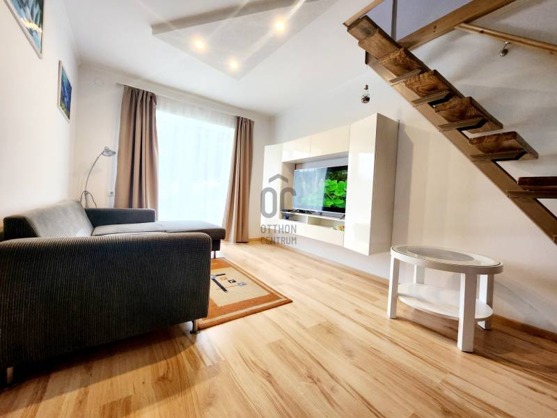 Eladó ingatlan Kőröshegyen, amely mint lakóház, állandó lakhatásra lett megtervezve, és jelenlegi állapotában megvalósítva.A ház alsó szintje 66m2 alapterületű, melyhez tartozik egy 10.90 m2- es hangulatos galéria rész.A lakótérben alul nappali-konyha , 1 hálószoba, fürdőszoba,wc, valamint felül egy emeleti galéria található.A házhoz tartozik egy 14 m2 alapterületű terasz, külön, saját használatú kert bejárati kapuval, valamint autóbejáróval.Az ingatlan hűtése-fűtése klímával megoldott, illetve télen nagy teljesítményű fatüzelésű kályha biztosítja a meleget.Kőröshegy, Somogy megyében, a Siófoki járásban található az M7-es autópálya, és annak viaduktja mellett. A Balaton déli partjától 3 kilométerre, Szántódtól 1 kilométerre, Siófok városától 18 kilométerre, egy völgyben fekszik, és mára összeépült Balatonföldvárral.A ház megvásárlása esetén Falusi CSOK, egyéb családtámogatás igénybe vehető. |