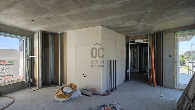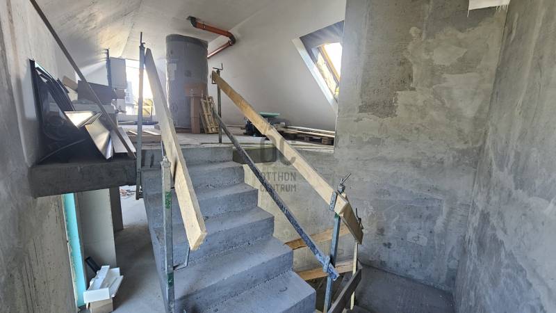 Alakalmas székháznak, irodaháznak vagy lakás célú befektetésre.Eladásra kínálunk egy igényesen, a legmodernebb technológiával épülő, hőszivattyús fűtés/hűtés rendszerrel ellátott, padlófűtéses, klimatizált, 5 szintes (tetőtérrel) társasház, mely irodásvá is átalakítható. Az épület földszintjén teremgarázs található, melyből közvetlenül elérhetők a külső parkolók is. A legfelső emeleten egy penthouse lakás kapott helyet.Az épület főbb jellemzői:Nyílászárók: Antracit színű, 3 rétegű hő- és hangszigetelő üvegezéssel ellátott ablakok és dupla elektromos garázskapu.Hőszigetelés: 15 cm-es hőszigetelő rétegFűtés: Padlófűtés.Lakások elosztása:Földszint: Teremgarázs és külső parkolók1. emelet:1.1 lakás: 43 m² + 3,2 m² erkély1.2 lakás: 52 m² + 5,6 m² erkély2. emelet:2.1 lakás: 49 m² + 4,6 m² erkély + 3,2 m² erkély2.2 lakás: 52 m² + 5,6 m² erkély + 2,8 m² erkély3. emelet:Penthouse lakás: 77,2 m² + 39 m² terasz + 4,8 m² erkély, 3 hálószobával és hatalmas keleti tájolású terasszal.Tetőtér:Gépészeti helyiség és tárolók kialakítása.Várható elkészülés: 2024 nyara, ezt követően a műszaki átadás és a használatbavételi engedély megszerzése történik.Az ár befejezett állapotra vonatkozik, belső módosítás, átalakítás még kérhető.További információkért és részletekért kérjük, vegye fel velünk a kapcsolatot! |