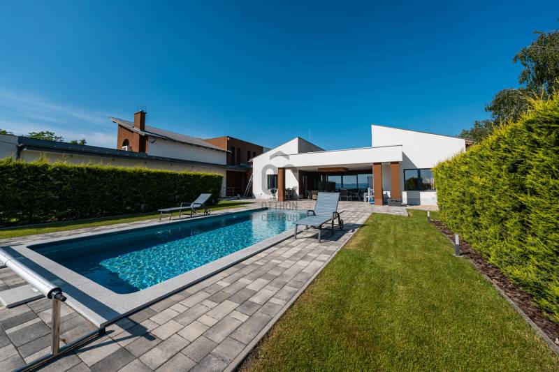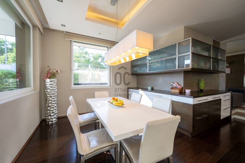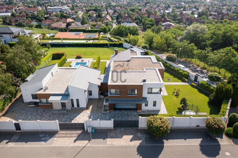 Egy exkluzív, prémium kivitelezésű, világos és modern családi házat kínálunk eladásra Fóton. Az ingatlan 645,35 nm alapterületű, egy 2743 nm-es területen helyezkedik el, és 10 szobával, 5 fürdőszobával és 2 garázs férőhellyel rendelkezik. Az ingatlan városi panorámája páratlan a területen. Környéke csendes és biztonságos, tökéletes hely a pihenésre és a családi életre.Az eredeti ingatlan 2010-ben épült. A \"B\" épületet 2017-ben építették, szintén prémium anyagokból. Az ingatlan összesen 3 telken helyezkedik el.Továbbá két medence található, egy kültéri és egy beltéri. Emelett szauna, jakuzzi és borospince is található benne. Gyönyörűen parkosított kert veszi körbe a házat. Alapterületek:\"A\" épületrész- pinceszint 59,73 nm- földszint 205,90 nm- emelet 80,18 nm- garázs 36 nm- teraszok 77,52 nm\"B\" épületrész - pinceszint 138,73 nm- földszint 124, 81 nm- teraszok 43,69 nmAz ingatlanban lévő bútorok külön megegyezés alapján maradhatnak. |