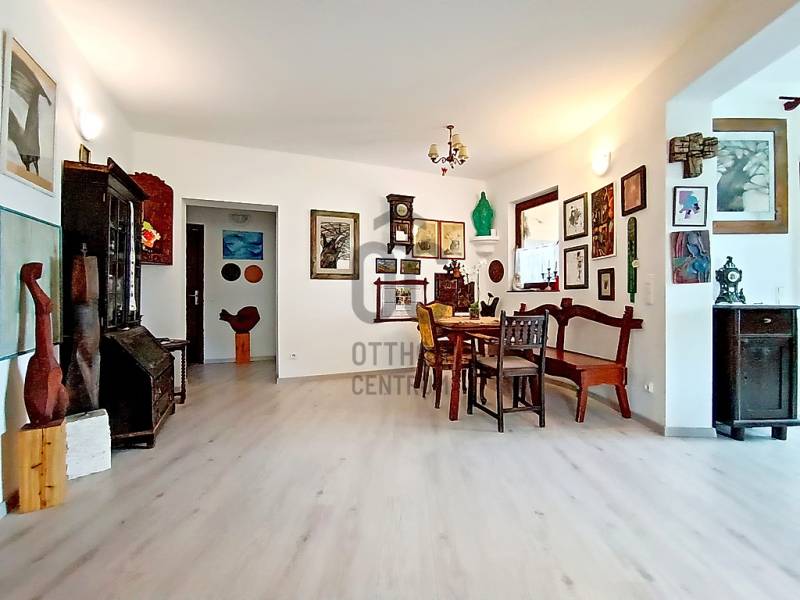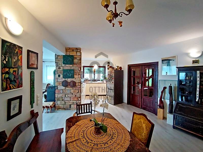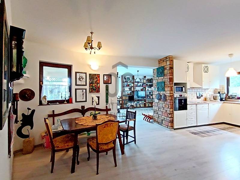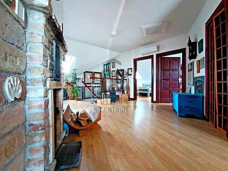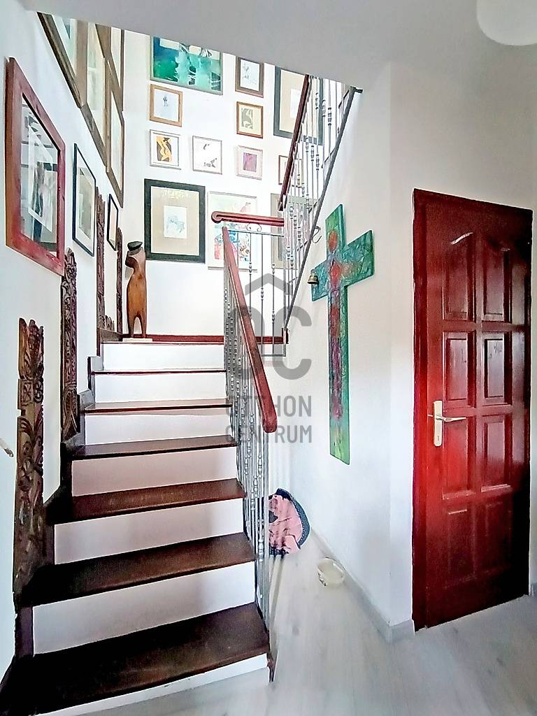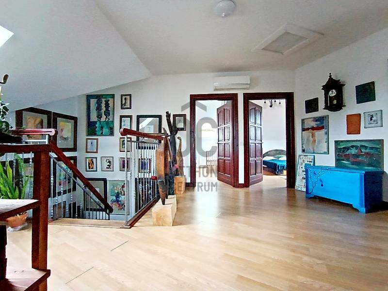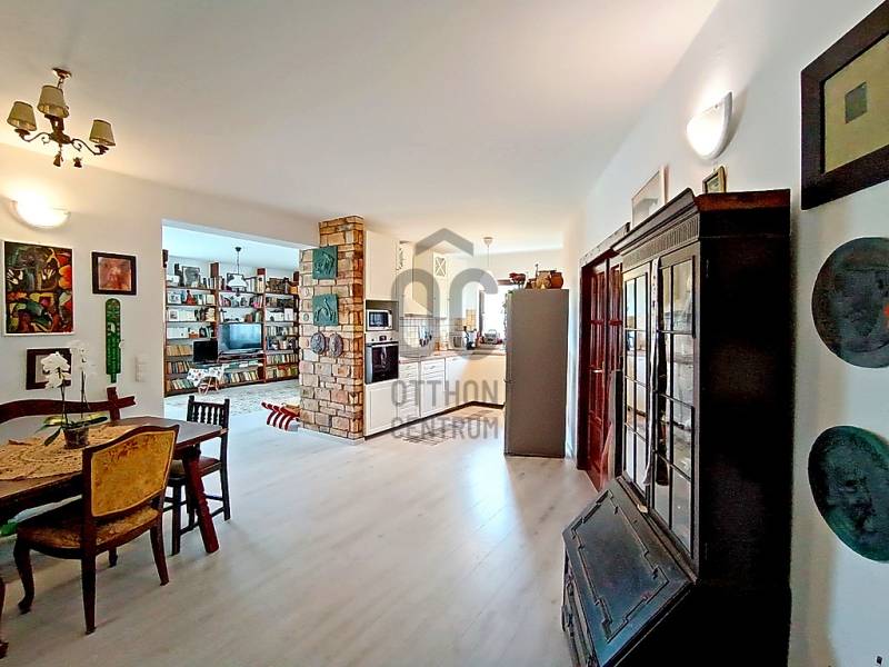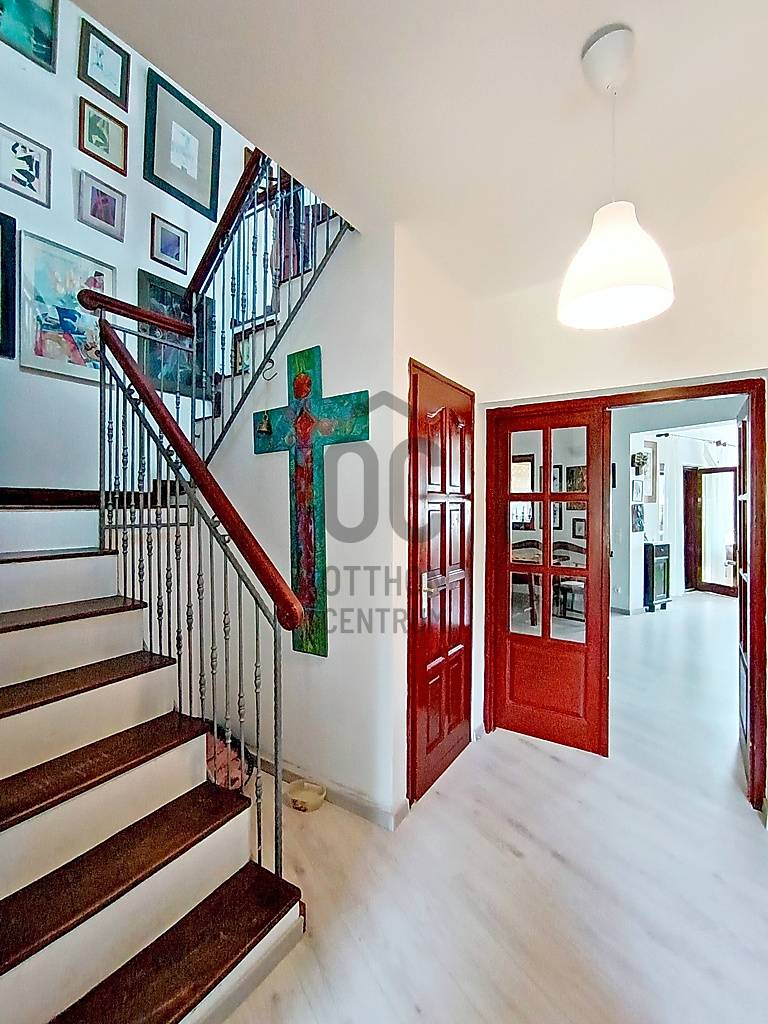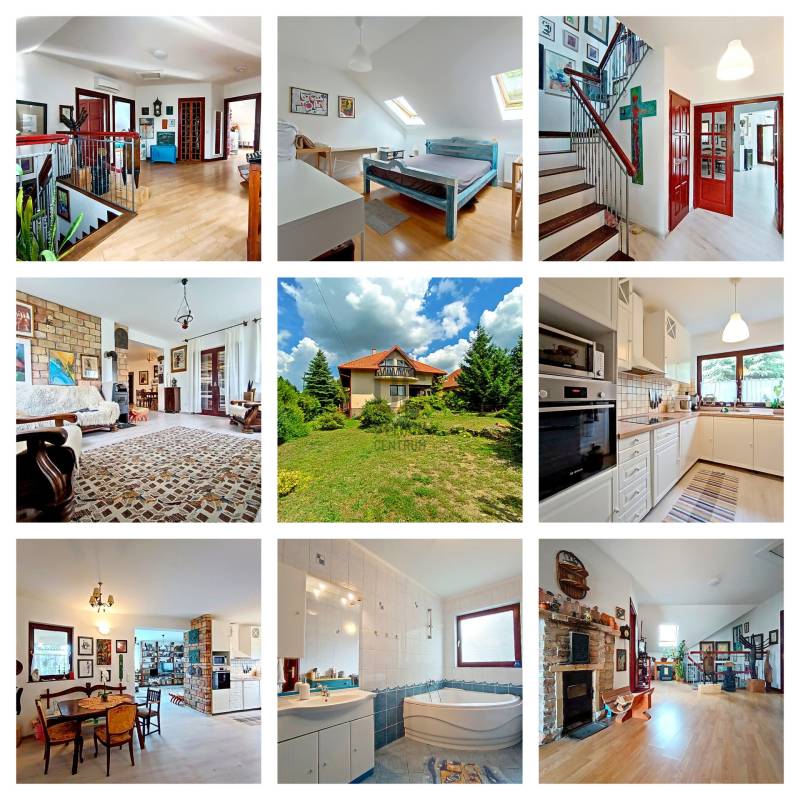 HA SZERETNÉ “A MINDENNAPOK KÖTELEZŐ KÖREINEK (LEGYEN AZ AKÁR MUNKA / TANULÁS / ÜGYINTÉZÉS VAGY VÁSÁRLÁS) MEGTÉTELE UTÁN” KÉNYELMESEN ELÉRHETŐ TÁVOLSÁGRA MAGA MÖGÖTT HAGYNI A FŐVÁROS ÁLLANDÓ PÖRGÉSÉT ÉS ZAJÁT, AHOL A CSEND, A NYUGALOM, A ZÖLD KÖRNYEZET ÉS AZ ÉLHETŐSÉG „HÁZA ÉS OTTHONA” VÁRJA MAJD NAP MINT NAP ÖNT ÉS A KEDVES CSALÁDJÁT IS HAZA, AKKOR MOST JÓL FIGYELJEN……Mert eladásra kínálok Veresegyház - Hegyek városrészében - mind a városközponttól, mind pedig „már az Erdőkerteshez tartozó” vasúti megállóhelytől is mindösszesen csak pár percnyi (séta)távolságra lévő, csendes, nyugodt, rendezett családi házakkal és zöld környezettel körbevett utcában, egy önálló helyrajzi számon nyilvántartott, belterületi, 1039 m2-es(!), összközműves, örökzöldekkel / bokrokkal / virágokkal gazdagon parkosított és kerti sütögetővel is kiépített saroktelken elhelyezkedő, részben (csak a terasz alatt) alápincézett nagyon masszív betonalapra, statikailag hihetetlenül stabil épületszerkezettel, praktikusan megtervezett és minőségi anyagokkal kivitelezett, teljesen körbejárható - betonfödémes megoldással / belső lépcsőházzal / eredetileg is 2 lakószintesre, összesen nettó 216,56 m2-es (bruttó 275,89 m2-es) alapterülettel - teljes egészében téglából, 2002-ben(!) megépített, a kedvező tájolásának köszönhetően egész nap közvetlenül napsütötte, nagyon hangulatos és világos, akár több generáció együttélését is kényelmesen biztosítani tudó családi házat !!! Az alsó lakószintet egy közvetlen terasz-, és kertkapcsolattal rendelkező nagy méretű nappali + 1 teljesen beépített és gépesített - külön kamrahelyiséges - nagy ablakos konyha és a vele egy légtérben lévő hatalmas étkezőhelyiség, továbbá egy kényelmes méretű hálószoba, egy tekintélyes méretű sarokkádas fürdőszoba, egy külön háztartási helyiség / mosókonyha, egy külön kézmosós WC helység és az ezeket összekötő közlekedő, egy - a lépcsőház alatti gardróbhelyiséggel is büszkélkedő - tágas előszoba és a külső bejáratnál az idők során egy további plusz hozzáépített (szélfogó) előtér, valamint a házból közvetlen átjárható - 29,4 m2-es területével akár egy nagyobb méretű személyautó-, vagy esetleg egy kistehergépjármű (furgon) befogadására is bőven alkalmas - (a felette közvetlen jelenleg műhelynek használt, de szükség esetén nagyon könnyedén lakószobává is átalakítható) padlástérbe lépcsőfeljáróval kiegészített, zárt és fűtött garázs alkotja. A családi ház felső lakószintje - az alsó lakószint előszobájának szerves részét képző, kovácsoltvas korláttal díszített, kényelmes / tágas belső lépcsőházban felmenvén tárul a szemünk elé, ahol is - az összes lakóhelyiséget egyben összekötő, hatalmas méretű (20 m2), szinte egy „második nappalinak” is beillő - világos és nagyon hangulatos, úgynevezett „lakóelőtérbe” érkezünk, ahonnan a 4 darab, egymástól teljesen külön nyíló, kényelmes méretű hálószoba (amelyből 2 darab, gyönyörű panorámával büszkélkedő, közös erkélykapcsolattal is rendelkezik), egy nagyon praktikus, különálló gardróbhelyiség és egy kellemes méretű, zuhanyzós + WC-s fürdőszoba nyílik.Csak a teljesség igénye nélkül…A családi ház külső-, és belső-, valamint műszaki (épületgépészeti) és esztétikai állapotát tekintve, folyamatosan karbantartott / megkímélt (egy tisztasági festés után azonnal beköltözhető) állapotban van! Az ingatlan egy részében található padlófűtést és a további fali radiátoros fűtést, valamint az egész ház meleg víz ellátását is a 2022-ben beüzemelt, minimális energiafelhasználással és maximális hatékonysággal működő kondenzációs gázcirkó kazán biztosítja! Ezen kívül az alsó lakószint nappalijában valamint a felső szint „lakóelőterében” az őszi-, és a téli estékre meghittséget és különleges hangulatot varázsoló, de akár még alternatív fűtésként is kényelmesen használható fatüzelésű kandallók kerültek beépítésre! A közös erkélykapcsolattal rendelkező fenti hálószobáknak a több légkamrás, hőszigetelt műanyag nyílászáróin kívül az egész háznak a további nyílászárói (ablakai) fából készültek, hőszigeteléssel és thermo üvegezéssel ellátottak, valamint nagyon megkímélt / újszerű állapotúak! A ház egészére jellemző magas minőséggel és kopásállósággal rendelkező hideg / meleg, fali-, és padlóburkolatok is mind-mind jó / megkímélt állapotban vannak, ahogy a fürdőszobákban és a kézmosós WC helyiségben lévő szaniterek is és még sorolhatnám……De inkább éljen a lehetőséggel, jöjjön el és nézze meg személyesen, győződjön meg mindenről a saját szemével, kérdezzen bátran, beszélgessünk róla, tudjon meg mindent és szeressen bele !!! ;) Veresegyház mint a pesti agglomeráció egyik legkedveltebb városa, Budapesttől északkeleti irányban, Fót-, Csomád településen keresztül nagyjából 18 km-re, az M3-as autópályáról történő leágazással Szada felől megközelítve 22 km-re, a Gödöllői-dombságban, a Cserhát vonulatainak délnyugati végének közelében, a Sződ–Rákos-patak völgyében terül el. A várost déli irányból a mogyoródi Gyertyános és a Fóti-Somlyó, nyugatról a csomádi Magas-hegy, keletről a 345 méter magas Margita, valamint az Bódis-hegy határolja. Északnyugatra az őrbottyáni Őrhegy, majd a váchartyáni Várhegy látható. Hideg vizű tavait a Mogyoród és Gödöllő között fakadó Püspök-forrásból eredő Sződ–Rákos-patak táplálja. A térség két fontos útvonala, a Budapesttől Fóton át egészen Galgamácsáig húzódó 210