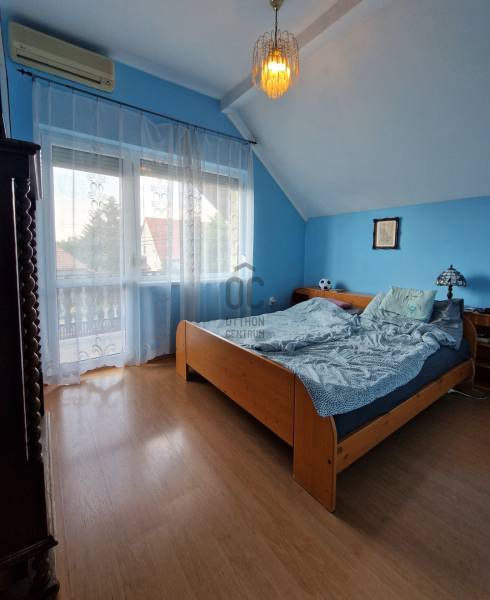 Eladó a 18.kerületben, Erdőskert városrészben egy kétgenerációs, jó állapotú családi ház. A ház eredetileg 2000-ben épült, 2018-ban felújításra került, jelenleg egy engedéyezési eljárás alapján, egy zárt lépcsőház megépítésével 2 lakásos lakóépületté alakul, külön bejáratokkal, külön gépkocsi beállókkal, külön mérőórákkal, kizárólagos használattal, melyet igény esetén ügyvédi használati megállapodás biztosít. A földszinti, pár éve felújított \"A\" lakás 97 nm-es lakószintje nappalival, étkező-konyhával, előszobával, fürdővel és 2 hálószobával rendelkezik, valamint egy 41 nm-es terasszal. A pinceszinten a tervek alapján ezen lakáshoz rendelve egy 43 nm-es garázs, háztartási helyiség, és egy 37 nm-es klubszoba is található. Az emeleti, felújításra kerülő \"B\" lakás 98 nm-es lakószintje nappalival, étkező-konyhával, előszobával, fürdővel, két külön szobával és háztartási helyiséggel rendelkezik, valamint két 9 nm-es loggiával. A pinceszinten a tervek alapján ezen lakáshoz egy 37 nm-es tároló, a kertben pegig fedett gépkocsibeálló is hozzárendelésre kerül. Az épület szigetelt, a nyílászárók műanyagok, a fűtést lakásonként gáz cirkó biztosítja, és mindkét lakás klímával felszerelt. A közel 900 nm-es rendezett, telek lehetőséget biztosít a két lakás kiszolgálására akár megosztva is. Ha két generációs házat keres, ne hagyja ki, szép környezet, szép lakások, terasz, loggia, fedett beálló, garázs és alakíthatóság... Igen, alakíthatóság, mert az emeleti lakás átalakításához/felújításához a burkolatok, a konyha, a szaniterek és egyéb hozzávalók a vevő igényeinek megfelelően kerülnek kivitelezésre. A vételár ezen lakás esetén a konyhabútort nem tartalmazza. Az átalakítás befejezése, az emeleti lakás felújítása és a közművek szétválasztása miatt, birtokba adása várhatóan 2026-07. hótól lehetséges.Ha felkeltettem érdeklődését, várom hívását! |