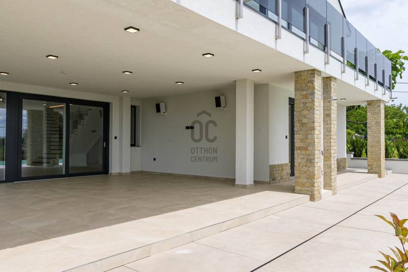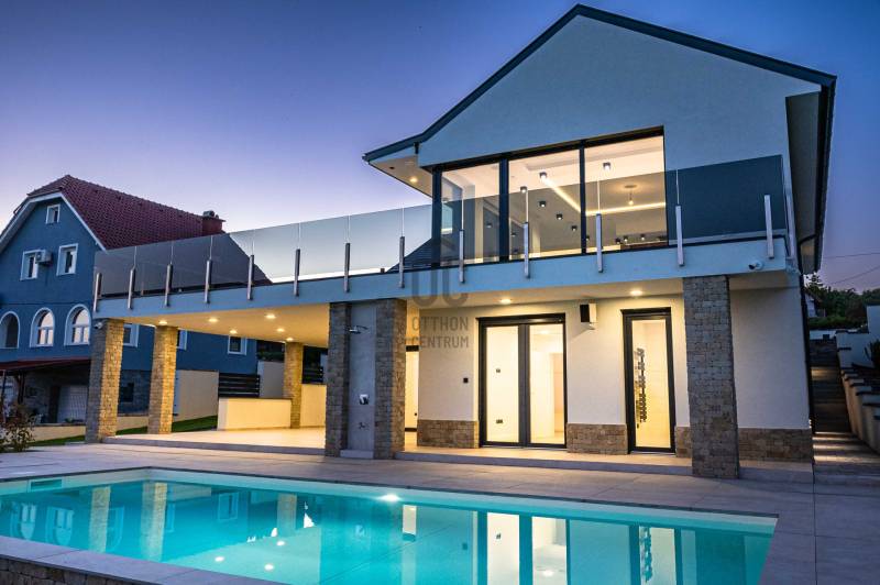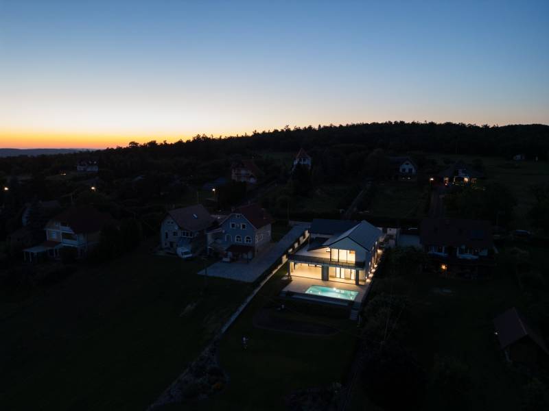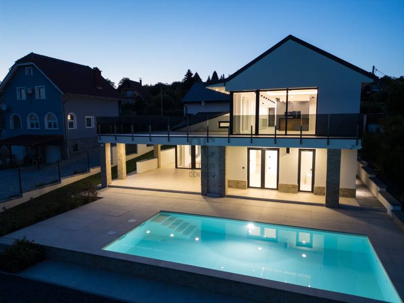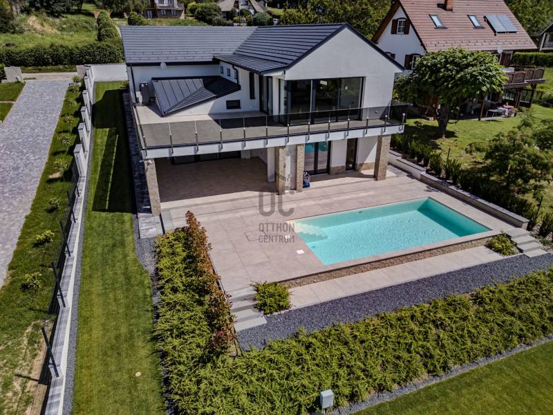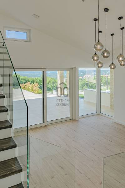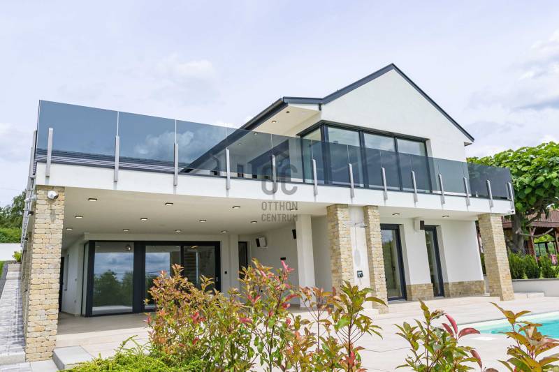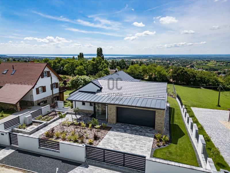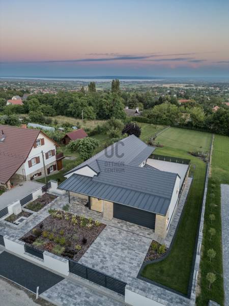 KIEMELET AJÁNAT , CSAK AZ OTTHON CENTRUM KÍNÁLATÁBAN!Eladásra kínálok Cserszegtomaj impozáns , festői szépségű környezetében egy igazán egyedi adottságú, dupla teraszos , 316 m²-es, exkluzív okos otthont , magával ragadó pazar panorámával a Balatonra és Hévízre ! A Balatonnak van valami különleges elbűvölő, vonzereje, amitől megbékél az ember lelke. S ahol a legpörgősebb urbanista is képes lelassulni kiülve egy panorámás teraszra, belefeledkezve a látványba, illatokba. Mindezen lehengerlő környezethez párosul a legmodernebb technikákkal épült , minden igényt kielégítő ,kivételes adottságú családi ház. Ez a ház tökéletes választás mindazoknak, akik értékelik a kényelmet és a luxust. Az ingatlan Loxon rendszerrel van felszerelve, ami optimalizálja magát a házat ,mellyel kényelmi funkciója révén családja igényeire szabva vezérelheti , teheti komfortossá okos otthonát.A LUXUS INGATLAN FŐBB JELLEMZŐI:- **Méret**: 316 m2- **Telek méret**: 2026 m2- **Építés éve**:2023-**Falazat/Szigetelés/ Fődém**: alapzat terasz felől vasalt síklemez, B30 téglafalak, első födém vasbeton, második fafödém.Az aljzatok 12 cm lépésálló szigeteléssel ellátva, fafödémnél gipszkartonos kialakítás van, 50 cm légréssel és ezt 30 cm üveggyapot-szigetelés követi. A külső falak 15 cm grafit szigetelésűek, a föld alatt lévő falak vízszigetelve lettek 2 rétegben és 10 cm XPS-szigetelve. A tető héjazata beton cserép és részben korcolt bádog - **Loxon okosházrendszer**: Minden helyiség hűtési-fűtési igényét figyeli, egyedi hőfokszabályzást biztosítva.- **Fűtés /hűtés**: Hot Jet levegő hőszivattyú (14-19,6 kW), padlófűtés mindenhol (kivéve a kamrát). Hűtés Fan-Coil rendszerrel: konyha-étkező mennyezetbe épített, nappali falba épített, hálószoba mennyezetbe épített, többi hálószoba parapetes.- **Okos érintős kapcsolók**: Világítás, redőnyvezérlés, hőmérséklet- és páratartalom mérés, hangosítás, internetrádió, riasztó élesítés, különböző érintésekre többfajta parancs.- **Jelenlétérzékelők**: Automatikus lámpakapcsolás este, riasztó érzékelő funkció, mozgásnaplózás (kikapcsolható).- **Nyílászárók**: Kömmerling 76 háromrétegű üvegezés, nyitásérzékelő, aluminium redőnyök Somfy motorral, Loxon rendszer vezérléssel- **Helios légkezelő**: Friss levegő ellátás, légelszívás fürdőszobákból és WC-ből, légbeömlés a lakótérbe. Intenzív, otthoni vagy távozó módozat.- **Központi porszívó**: Csatlakozási pontok a vendégszobában, konyha-étkezőben, nappaliban, hálószobában, gyerekszobákban.- **Konyha**: Átgondolt kialakítás, kamra kapcsolatos. AEG márkájú gépek (mosogatógép, sütő, mikró, tűzhely, melegen tartó fiók), Liebherr beépített hűtő, Cata páraelszívó távirányítóval.- **Hangosítás**: Konyha-étkező, alsó kinti fedett terasz, medence felöli oldal, szauna. Internetrádió, Spotify, könyvtár, lejátszási lista, hangosbemondó funkció.- **Fűtött tükrök**: Alsó hálószoba fürdő, szauna fürdő, párakialakulás ellen.- **Szauna**: 6 személyes finn szauna fényterápiás kialakítással.- **Gépészeti helyiség**: Vízlágyító, központi porszívó főegység, légkezelő egység, IT szekrény, 500 l használati melegvíz puffertartály, 500 l hűtés-fűtés puffertartály, Hot Jet hőszivattyú beltéri egysége (távoli hozzáférés, hibaelhárítás).- **Biztonság**: Loxon rendszer, kamerarendszer.- **Medence**: 4 x 8 méteres fóliázott medence.- **Extrák:**A házhoz tartozik egy kényelmes, kétállásos garázs elektromos autótöltő előkészítéssel. A gépészeti előszobából közvetlenül elérhető a fedett terasz, mely padlófűtéssel van előkészítve, így télikertként is használható. A medence részhez tartozik egy napozóterasz és egy kültéri zuhanyzó, melyek tökéletesek a nyári pihenéshez és kikapcsolódáshoz. Az alsó részt kintről mindkét irányból meg lehet közelíteni, így biztosítva a kényelmes hozzáférést.-**További kényelem:**A ház teljesen parkosított kerttel rendelkezik, automata öntözőrendszerrel, valamint egy Husqvarna AM430x Nera robotfűnyíróval, mely a gyep tökéletes állapotát biztosítja. Az ingatlan bútorozott helységei között megtalálható a konyha, kamra, gardróbok, fürdőszobák és a mosókonyha is.AMENNYIBEN FELKELTETTE ÉRDEKLŐDÉSÉT EZ AZ IGAZÁN EGYEDÜLÁLLÓ ÉKSZERDOBOZ AZ ELADÓSORBAN LÉVŐ INGATLANOK PIACÁN, VÁROM HÍVÁSÁT AZ ORSZÁG LEGNAGYOBB ÉS LEGELISMERTEBB INGATLANKÖZVETÍTŐ HÁLÓZATA NEVÉBEN! |