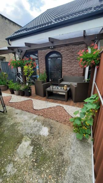 Eladóvá vált Pápán az Erzsébet városrészben 62 nm-es sorház.Az ingatlan csendes, átmenő forgalomtól mentes utcában épült.A közelben buszmegálló, élelmiszer bolt, orvosi rendelő, gyógyszertár is megtalálható.A közlekedési lehetőségek kiválóak, de pár perc gyaloglással a vasút állomás és a húsipar is elérhető.Az ingatlanba egy közös használatú bejáraton keresztül jutunk be.A lakás, az elmúlt években folyamatos felújításon esett át.Műanyag nyílászárók kerültek beépítésre, megújult a tetőszerkezet új fólia, és cserép fedést kapott.Megtörtént a villanyvezeték, vízvezeték, a burkolatok, és az ajtók cseréje is.Kialakításra került a zárt udvaron, az előszobához csatlakozva, egy hangulatos fedett terasz, mely jó helyszín a családi, baráti beszélgetéseknek, kikapcsolódásnak.A 62 nm-es hasznos területen, egy előszoba, konyha, egy fél szoba, két egész szoba, nappali, és a fürdőszoba WC-vel került kialakításra.Az otthon melegéről villany lapradiátorok gondoskodnak.A meleg víz elállítása villanybojlerről történik.A saját használatú telek összesen 103 nm, mely körbekerített, biztosítva ezzel a magánszférát.Gépkocsival történő parkolás a ház elött, vagy a közös használatú udvarban lehetséges.A hirdetés, ha felkeltette érdeklődését ne habozzon, lépjen velünk kapcsolatba. |