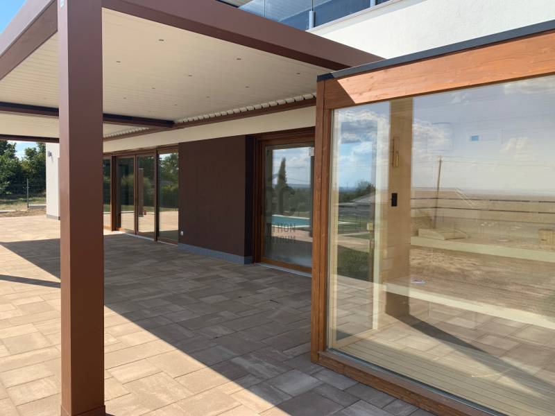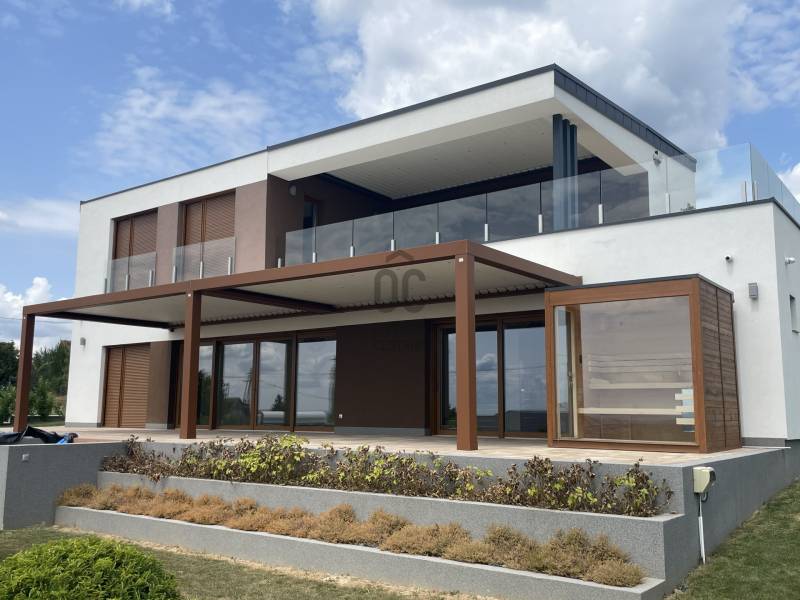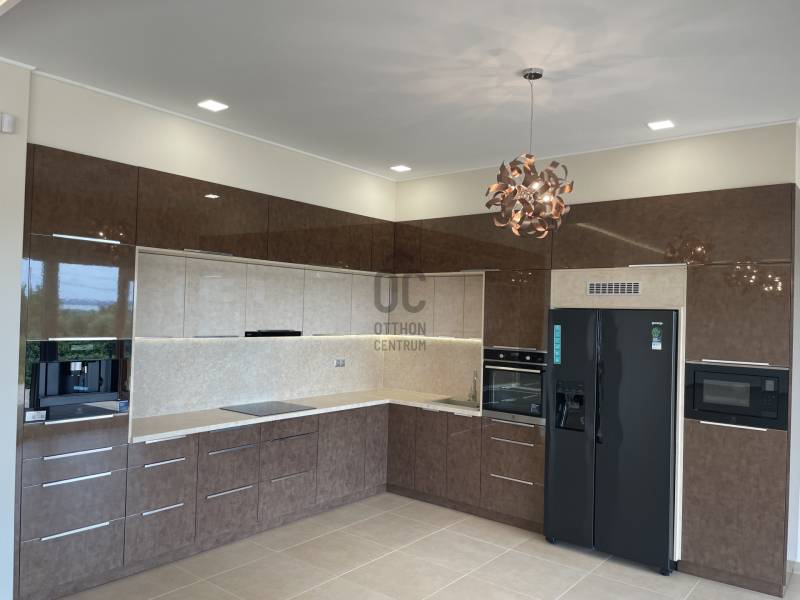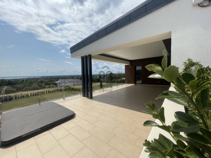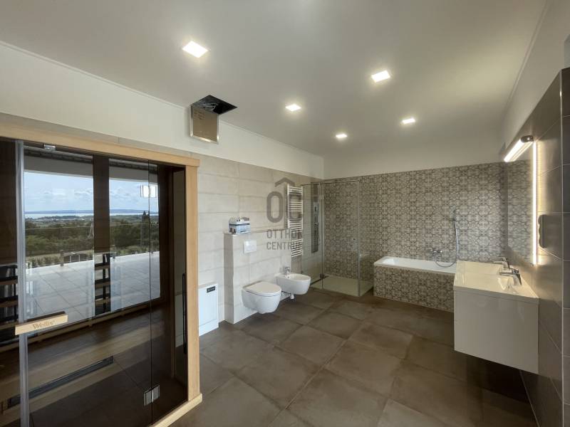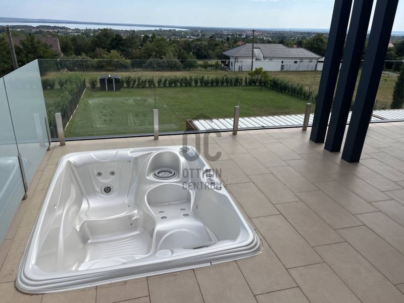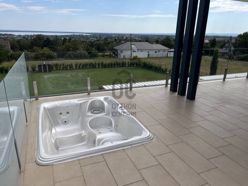 Cserszegtomajon BALATONI örökpanorámás ENERGIATAKARÉKOS valódi LUXUS álomotthont kínálunk eladásra!Az ingatlan kiváló, magas minőségű anyagokból épült, a legújabb technológiáival felszerelt, modern minimalista stílusú. A nagy nyitott tereknek, kényelmes helyiségeknek és üvegfelületeknek köszönhetően csodálatos kilátás tárul a Balatonra és az őt körülölelő tájra a ház minden pontjából!A 338 nm alapterületű két szintes ház egy 1656 nm-es telken helyezkedik el. A földszint 170 nm ahol egy hatalmas egylégteres nappali-konyha-étkező, galériás előszoba, főháló gardróbszobával saját fürdő és wc-vel, háztartási helyiség, vendég wc, gépház, 2 beállásos garázs és az 50 nm-es pergolával fedett terasz találhatók. A teraszon található 3,5x6m-es MEDENCE és panorámás üveg falú FINN SZAUNA fokozza a valódi luxus érzést, ami a ház minden apró részletében megmutatkozik. Az emelet 78 nm ahol 2 hálószoba, fürdő+wc+INFRA SZAUNA, dolgozószoba és pergolával árnyékolt 40 nm-es terasz található, ahol egy 3 személyes süllyesztett JAKUZZIBÓL élvezhetik a csodás tóra néző panorámát. Műszaki adatok :- áram , erős áram , vezetékes víz , szennyvízcsatorna- központi antenna , internet- az épület riasztóval , nyitás érzékelőkkel és kamera rendszerrel felszerelt- 3 rétegű műanyag nyílászárók elektromos alumínium redőnyökkel és szúnyoghálóval- a villamos energia ellátást 15 KW- os NAPELEM rendszer segíti , így az épület energia ellátása szinte teljesen önellátó , energia besorolása A+++- az ingatlan FŰTÉSE és HŰTÉSE automata HŐSZIVATTYÚVAL, padlófűtéssel és mennyezet hűtéssel van megoldva. A helyiségek hőmérséklete külön is szabályozható.- vízlágyító- Hörmann garázskapu, ELEKTROMOS AUTÓ TÖLTÉSI lehetőséggel - Umbroll típusú elektromos lamellás pergola- Beépített konyha felszereltsége: Electrolux márkájú mikrohullámú sütő, indukciós főzőlap, sűtő és automata kávéfőző és Goranje Side by Side hűtőszekrény, valamint Cata páraelszívó.- 20 m3-es esővíz gyűjtő öntözőrendszerrel- padlóburkolatok : kerámia , laminált parketta- az ingatlan kerítéssel , részben sövénnyel körbekerített és elektromos nyílókapuval ellátottA központi lehetőségek gyorsan és könnyen elérhetőek a közelben található iskola, óvoda, orvosi rendelő és bevásárlási lehetőségek. A Balaton csupán 5 km, Keszthely 2 km, Hévíz 3 km távolságra van. |