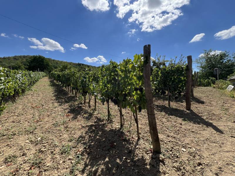 A \"szőlő és gazdasági épület\"-ként nyilvántartott terület 4332 m2, kifüggesztést igényel. Könnyen megközelíthető, beton és murva burkolatú úton. A telken a 16 sor szőlő és gyümölcsfák mellett egy 73 m2 alapterületű, vegyes falazatú épület is található. Villannyal, fúrt kúttal ellátott, a vezetékes víz és gáz az utcában elérhető. A tanyába belépve egy 27 m2-es feldolgozó helyiségben találjuk magunkat, ahonnan a 25 m hosszú, téglázott falú pince nyílik. Jelenleg az ingatlan a hagyományos tanya funkciót látja el, de könnyen lakhatóvá alakítható.Ha Ön is lát benne fantáziát, hívjon!Regisztrációs szám: H489519 |