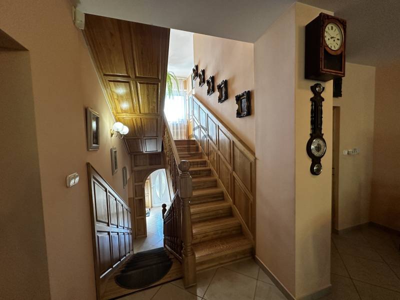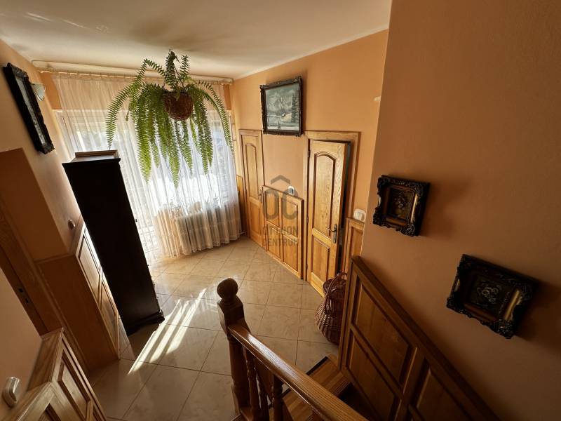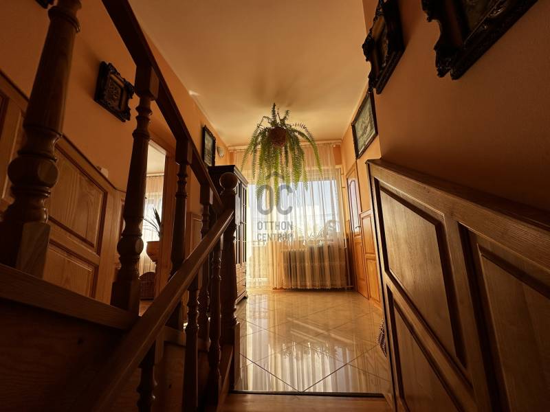 Képzeld el, hogy minden reggel a gyönyörű hegyek panorámájával ébredsz, miközben a családi házad kényelmét élvezed. A Győrújbarát hegyoldalán található ingatlanunk pontosan ezt kínálja. Az épület 1984-ben épült, B30-as téglából, 2006-2007-ben átfogó felújításon esett át, amely során korszerű szigetelést kapott. Az épület 7 cm vastag hungarocellszigeteléssel rendelkezik.A ház tetőszerkezete betonfödémes, béléstestes kialakítású, A felújítás során új cserepek kerültek felhelyezésre, és a lécezés, valamint a szarufák egy része is cserélve lett, továbbá a padlástér üveggyapottal lett szigetelve.Az ingatlan 4 hálószobával és egy tágas nappalival rendelkezik. A terek világosak és tágasak, köszönhetően a nagy üvegfelületeknek, amelyek a hegyekre és a zöldövezetre nyíló páratlan kilátást kínálnak. A szinteltolásos kialakítás lehetővé teszi a különböző funkciók elkülönítését és az életterek maximális kihasználását. Az I. szinten található a 16,5 nm-es garázs. A II. szinten a fedett terasz, bejárati terasz, étkező és konyha, előszoba, beépített szekrények, közlekedő, tárolóhelyiség, kazánház, valamint egy WC és zuhanyzó kapott helyet. A III. szinten nappali, szoba, spejz és lépcsőforduló található. A IV. szinten 1 szoba, lépcsőforduló, fürdőszoba, WC és erkély található, míg az V. szinten közlekedő, beépített szekrény és két szoba, valamint a padlásfeljáró került kialakításra.A telek mérete 2 160 nm. A kert a természet szépségét és a funkcionalitást egyedien ötvözi. A gondosan parkosított területen kemence és bográcsos sütőtér várja a családi összejöveteleket és szabadidős tevékenységeket. A kerti tó, melyet szökőkút és színes halak emelnek látvánnyá, idilli hangulatot teremt. Az árnyékot adó fenyveserdő mellett a kert gazdag veteményessel, virágoskerttel, dísznövényekkel és gyümölcsössel rendelkezik, ahol dió, kajszibarack, alma, cseresznye, meggy, szilva, körte, málna, szőlő, datolyaszilva stb. terem. Ez a változatos kertészeti környezet ideális helyszínt biztosít a pihenésre és a szabadidős tevékenységekre.Ez az ingatlan nem csupán egy ház, hanem egy életstílus. Tehermentes állapotának és a birtokba adás maximum 4 hónapon belül megvalósítható. Ha prémium minőségű otthont keresel, amely minden szempontból megfelel a legmagasabb elvárásoknak, ne habozz kapcsolatba lépni velem!Nézd meg az ingatlanról készült bemutatóvideót az Otthon Centrum honlapján!Hitelre van szükséged?Az Otthon Centrum az ország egyik legnagyobb és legmegbízhatóbb hitelközvetítőjeként, teljeskörű és díjmentes hitelügyintézéssel, biztosításkötéssel áll rendelkezésedre! Kérd személyre szabott ajánlatunkat! |
