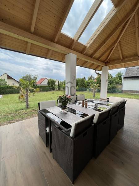 Exkluzív, 5 szobás prémium családi ház Vonyarcvashegyen – csendes környezet, Balaton-közeli elhelyezkedés!Vonyarcvashegy egyik nyugodt, jól megközelíthető részén kínálok eladásra egy 2019-ben épült, 142 m²-es, modern, 5 szobás prémium családi házat, amely kivételes kényelmet és magas műszaki tartalmat biztosít új tulajdonosának.A 1500 m²-es, gondozott telek automata öntözőrendszerrel felszerelt, így a kert gondozása könnyed és egyszerű. A házhoz tartozik egy 66 m²-es, tágas terasz, amely tökéletes helyszín lehet családi rendezvényekhez vagy baráti összejövetelekhez.Főbb jellemzők:Modern amerikai konyha konyhaszigettel és beépített, minőségi gépekkel4 különálló szoba + tágas, világos nappali2 igényesen kialakított fürdőszobaHáztartási helyiségGáz cirkó fűtés3 rétegű hőszigetelt nyílászárókLED hangulatvilágításBiztonsági kamerarendszerKerti tárolóTeljes bútorzat és gépesítés – az ár a berendezést is tartalmazzaAzonnal költözhető állapotEz az ingatlan ideális választás azok számára, akik modern, igényes, csendes környezetben található otthont keresnek a Balaton közelében. A prémium kivitelezés, a gondosan megtervezett elrendezés és a teljesen berendezett állapot biztosítja, hogy a leendő tulajdonosnak valóban csak a személyes tárgyait kell hoznia.Ha egy értékálló, exkluzív ingatlant keres Vonyarcvashegyen, ez a ház kiváló lehetőség!Irodánk teljes körű díjmentes szolgáltatást nyújt kereső ügyfeleinknek.Szakszerű tanácsadással, ingyenes hitel és CSOK ügyintézéssel, energetikai tanúsítvány elkészítésével és kedvező díjszabású ügyvéddel nyújtunk segítséget! |