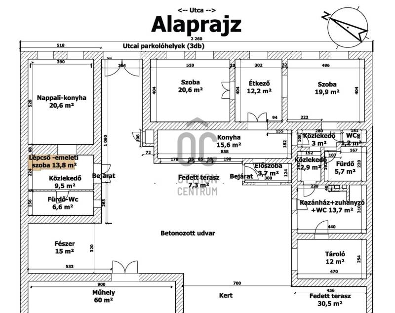 Egerben a Maklári utcában, 150 nm-es, 5 szoba + 2 fürdőszobás, több generációs családi ház eladó.Kizárólag az Otthon Centrum kínálatában!Az ingatlanról készült egy bemutató videó, amit megtekinthet az Otthon Centrum weboldalán!Kérem, hívjon ha személyesen is látni szeretné, csak előre egyeztetett időpontban tekinthető meg!A telek 458 nm, nagyrészt betonozott udvara van, ~23m-es utcafronttal.A ház előtti utcafronton akár 3 autó is kényelmesen elfér, a telek hátsó részén kis, intim füves kert és egy 30nm-es fedett terasz taláható a ~60nm-es műhely mellett.A ház eredeti részei tufatéglából épültek az \'50-60-as években, a hozzáépített részek tégla falazatúak. A háztető héjazata cserép, körbe van ereszcsatornázva.Minden közmű (víz, szennyvíz, villany, gáz) be van vezetve.A főépület fűtéséről és a meleg vízről egy kombi gázkazán gondoskodik, míg a kisebb lakrész fűtése elektromos radiátorokkal és hűtő-fűtő klímával van megoldva, itt egy Ariston okosbojler adja a melegvizet.Nyílászárói jó állapotú fa nyílászárók.A helyiségek elrendezése az alaprajzon és a 3D-alaprajzon látható, ezek cm-re pontosak, méretarányosak, a komoly érdeklődők rendelkezésére bocsátom a megtekintés után, hasznos lesz a tervezés és a berendezés során.A ház alkalmas több generáció kényelmes együttélésére, vagy akár több lakrészes vendégháznak is kialakítható.Tehermentes, 2-3 hónapon belül birtokba vehető.Ha a hirdetés felkeltette az érdeklődését, vagy kérdése van, kérem hívjon a megadott telefonszámomon.Ingatlanirodánk teljeskörűen segíti az ingatlanok adásvételét, ügyvéd, bankfüggetlen hitelügyintéző, energetikus és a lelkes ingatlanközvetítő is rendelkezésére áll akár hétvégén, vagy ünnepnapokon is ;-) |