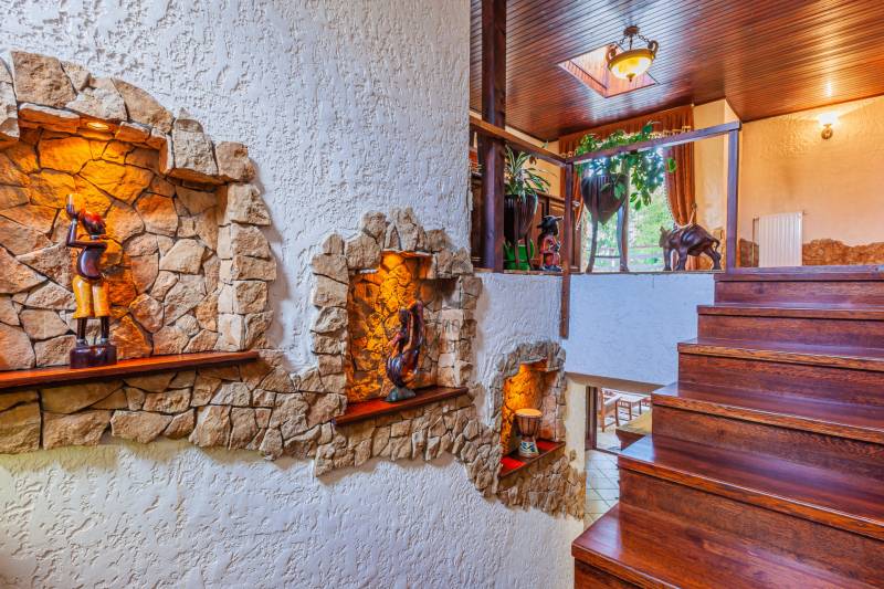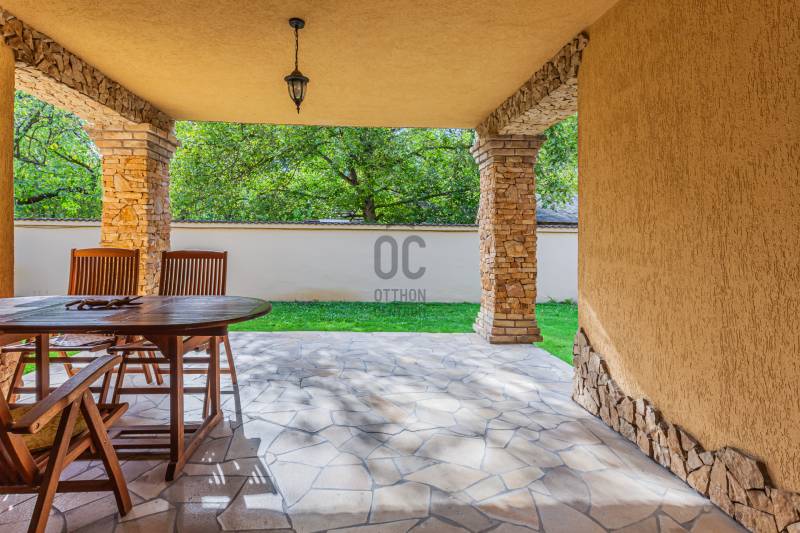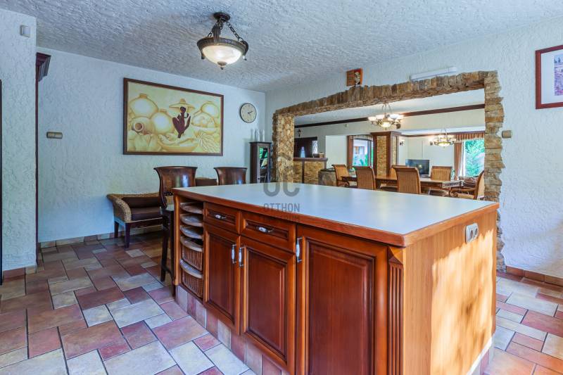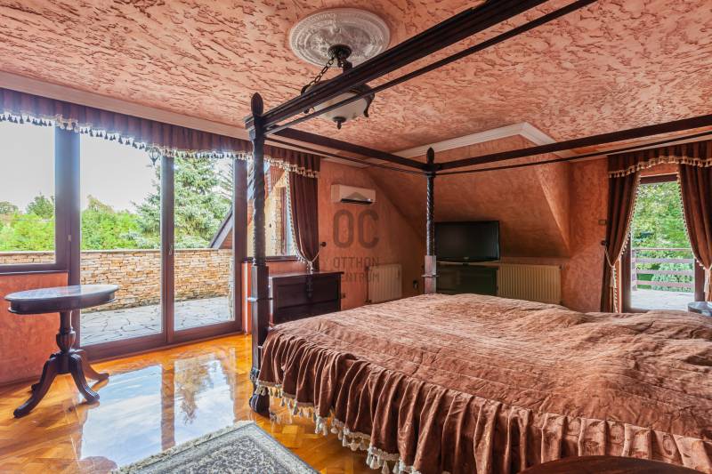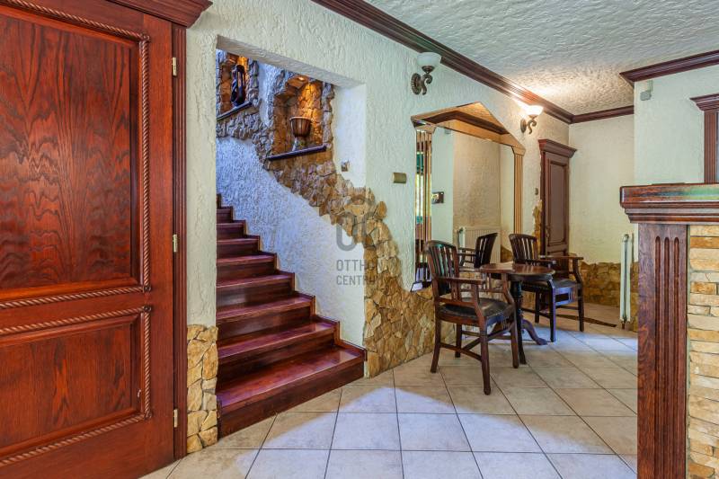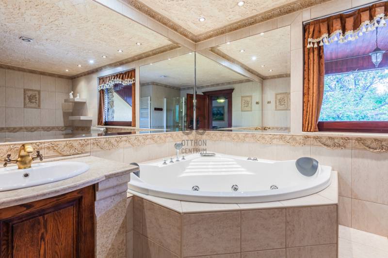 Mediterrán ÁlomOtthon a Dunától 2percreGöd az északi agglomeráció ékköve, egy dinamikusan fejlődő természetközeli kertváros a Duna szomszédságában, Budapesttől mindössze 20km-es távolságra.Híres jó nevű iskoláiról, Nagymarosig húzódó bicikliútjáról, szabadstrandjáról, egyedülálló Homokszigetéről és csodálatos Duna-partjáról.Itt került eladósorba, egy kiváló állapotú, nagy alapterületű, exkluzív MEDITERRÁN ÁLOMOTTHONA ház abszolút presztízs környéken, a Duna-parttól mindössze 2 utcára található, szebbnél szebb házak lakta csendes, családi házas utcában.Intim kertje KURIÓZUM MÉRETŰ (1080m2!), gyönyörűen gondozott, buja dísznövényzettel ültetett, helyet kapott benne sziklakert, halastó, japánkert és rózsalugas is, melyek öntözése kútról biztosított telepített, automata öntözőrendszerrel.A belső elrendezést tágas, sűrűn napozott egybenyíló terek jellemzik, Tulajdonosai egyedi hangulatvilágot teremtve álmodták meg.A konyha teljes gépesítéssel rendelkezik, konyhaszigettel felszerelt, hatalmas alapterületen együtt helyezkedik el az étkezővel és a mindössze szinteltolással szeparált nappalival. A nappalit 3 irányból hatalmas ablakok ölelik körbe, így abszolút a kertre körpanorámás. Éke a párkányos kandalló és a rusztikus kút, mely az épületen belül, kovácsoltvas koronát kapva emeli a ház varázslatos hangulatát.Földszinten található még a wellness részleg, melyben a jakuzzin felül szauna, és gőzkabin is található, és alapterületének köszönhetően rendkívül alkalmas hálószoba kialakítására!Emeleti szinten 2 fürdőszoba és 3 hálószoba alkotják a helyiséglistát, minden szoba teraszkapcsolatos, gondozott zöld környezetre néz! A szülői hálószoba külön gardróbhelyiséggel és fürdőszobakapcsolattal rendelkezik.A hálószobák antik tölgyfa parkettásak, a beltéri ajtók szintén tömörfa nyílászárók. A teakfa bútorzat megegyezés tárgyát képezi!Fűtést korszerű cirkókazán biztosítja, alsó szinten padlófűtéssel, emeleti szobákban radiátoros hőleadókkal.Gépjárművek parkoltatására 4 állásos garázs áll rendelkezésere, a térburkolt autóbeállón további 4 autó kényelmesen elfér.Jöjjön el, tekintse meg, amennyiben olyan Otthont keres, ami EGYEDI,ahol az utolsó szögig megmutatkozik a minőség, ami presztízs helyen, Dunához közel, a Fővárostól egy szemplillantásra van!Lokáció: Duna-part 2perc, Duna Csárda szintén, Bicikliút 5perc, Bp-re rendszeresített távolsági buszmegálló 10perc (Bp Városkapu 30perc).Autópálya 10p amin keresztül a Főváros 25perc alatt elérhető. |