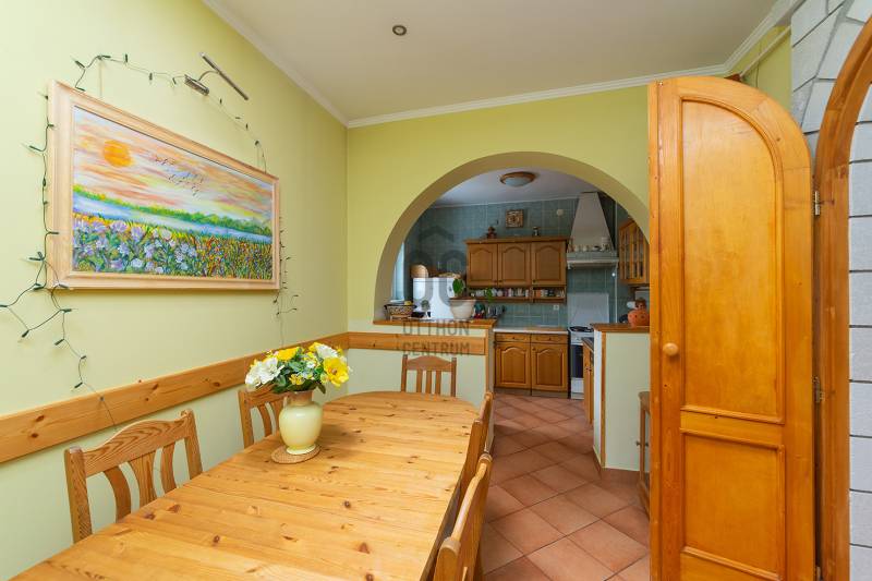XVII. kerületben Rákoscsaba- Újtelep egyik csendes, aszfaltos mellékutcájában, de kiváló közlekedés mellett kínálunk megvásárlásra egy családi házat, mely akár három generáció számára nyújt kényelmes lakhatást. Ez az ingatlan együttes rengeteg lehetőséget rejt: jelenleg áll egy belső kétszintes, nappali+3 szobás, 2 fürdőszobás, tágas konyha-étkezős kiváló állapotú lakóházból, mely alatt található egy 68 nm-es lakhatásra és vállalkozásra egyaránt alkalmas szuterén, akár kiadásra is remek lehetőség, hiszen az utcáról önálló bejáraton át megközelíthető. A nagy ház mögött, ahhoz hozzáépítve helyet kapott még egy földszintes kialakítású, két szoba-konyha-fürdőszoba helyiségekből álló lakás. Idősebb generációnak, vagy önállósodni vágyó fiatal családtagnak egyaránt alkalmas, egy telken belül, de mégis elszeparáltan élhet több generáció egymás mellett. A telek 542 nm, mely szépen parkosított, egy fedett beálló is kialakításra került, de még egy autóval parkolhatunk telken belül. A nagyobb ház a 80-as évek közepén épült, a homlokzat hőszigetelt, a tetőt zsindely fedi (6 éve lett cserélve). A nyílászárók az utóbbi években cserélve lettek, egy része gyönyörű, hőszigetelt üvegezésű fa ablakokra, a többi pedig korszerű, műanyag nyílászáró. Redőny, szúnyogháló van. A nagy házban a fűtést gázkazán, a melegvizet gázbojler biztosítja. A kisebb házban gázcirkó fűt, a melegvizet szintén gázbojler állítja elő, itt önálló mérőórák vannak (gáz és villany főmérő). A szuterén tavaly lett felújítva, itt is külön mérhető a fogyasztás. A biztonságról riasztó gondoskodik. A környék csendes, kertes házakkal beépített. A közlekedés kiváló, a buszmegálló 2 perc séta (98, 176/E, éjszakai járat), innen közvetlen járat az Örs Vezér térre és Kőbánya-Kispestre, a vonatállomás 3 buszmegálló vagy egy kiadósabb séta, Keleti pályaudvar 20 perc. Iskola, óvoda, bevásárlási lehetőség, gyógyszertár, orvosi rendelő szintén a közelben található. |